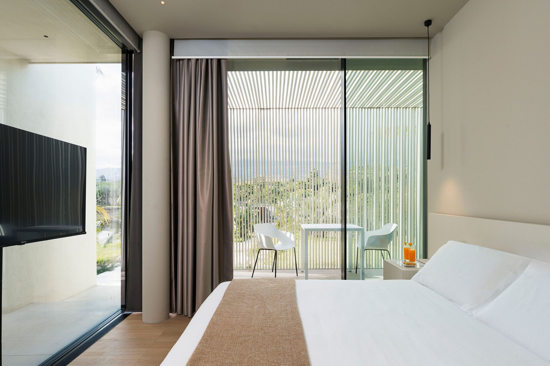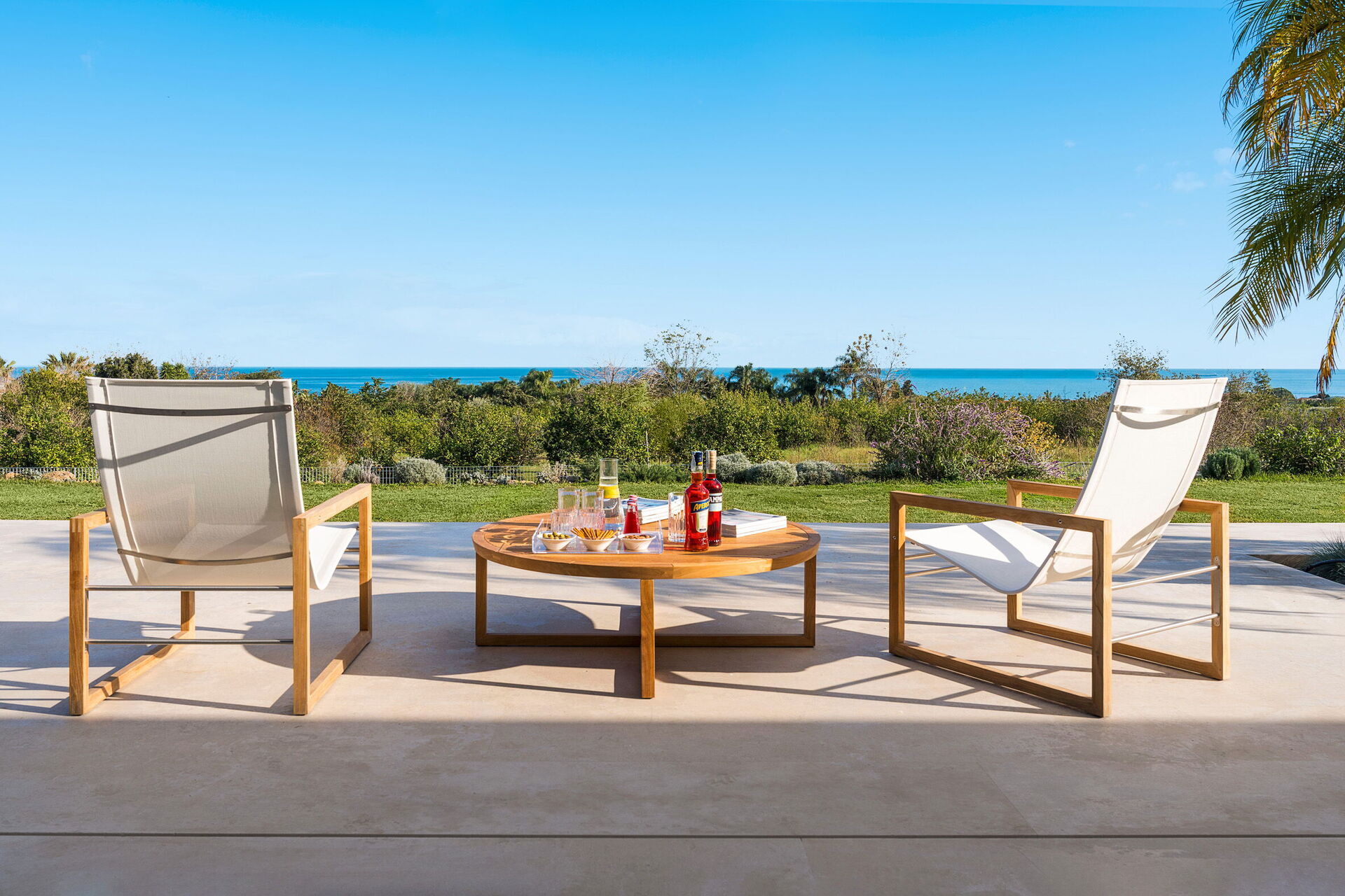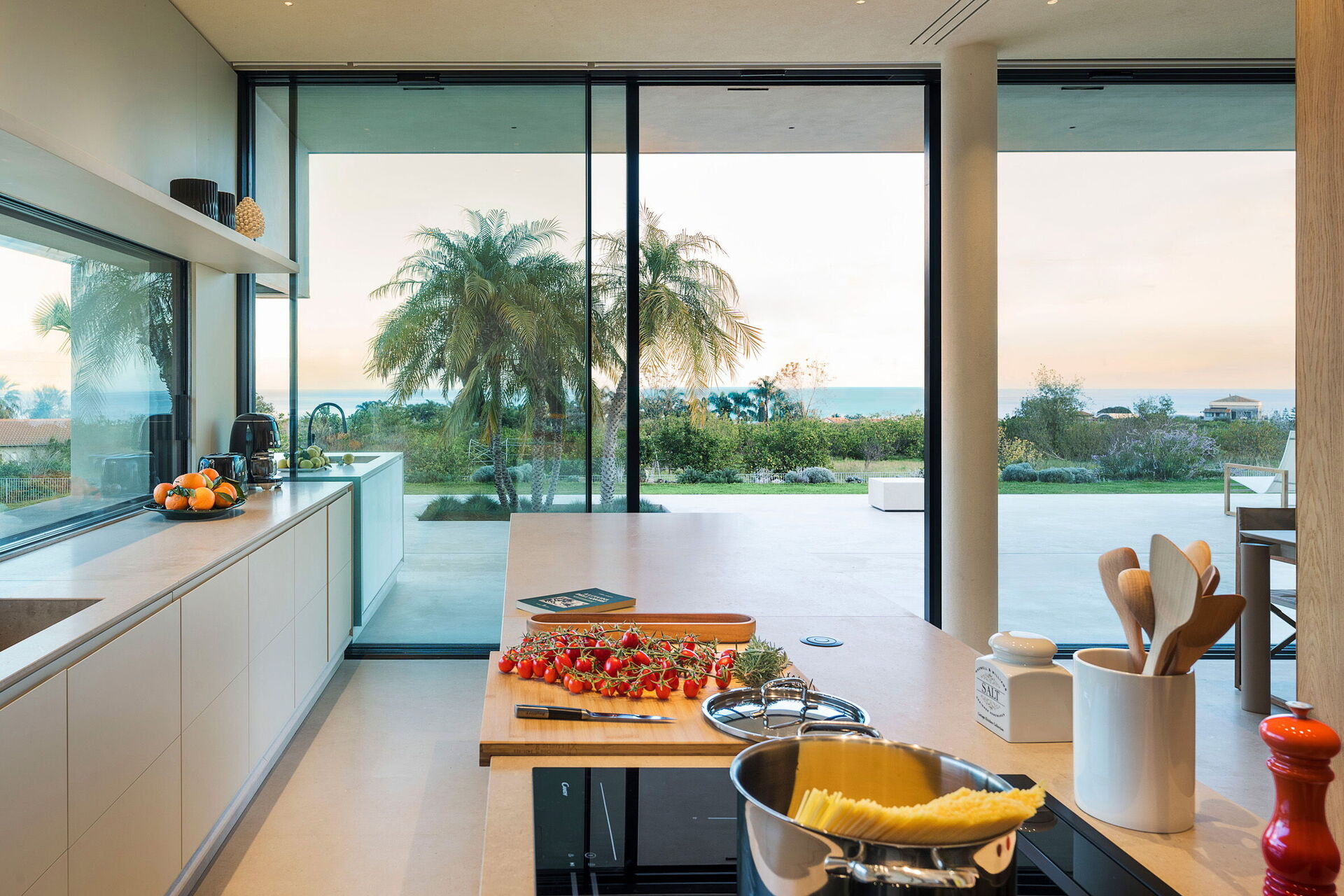 Die Panorama-Außenbereiche bieten zahlreiche Bereiche, die es den Gästen ermöglichen, einen angenehmen Aufenthalt mit Familie oder Freunden zu verbringen: Die Gäste können im Freien essen, am auf Schwimmbad (mit Hydromassagebereich und Salzreinigungssystem) entspannen oder auf der Sonnenterrasse, die sich ideal für unvergessliche Momente unter der sizilianischen Sonne eignet, ausruhen.