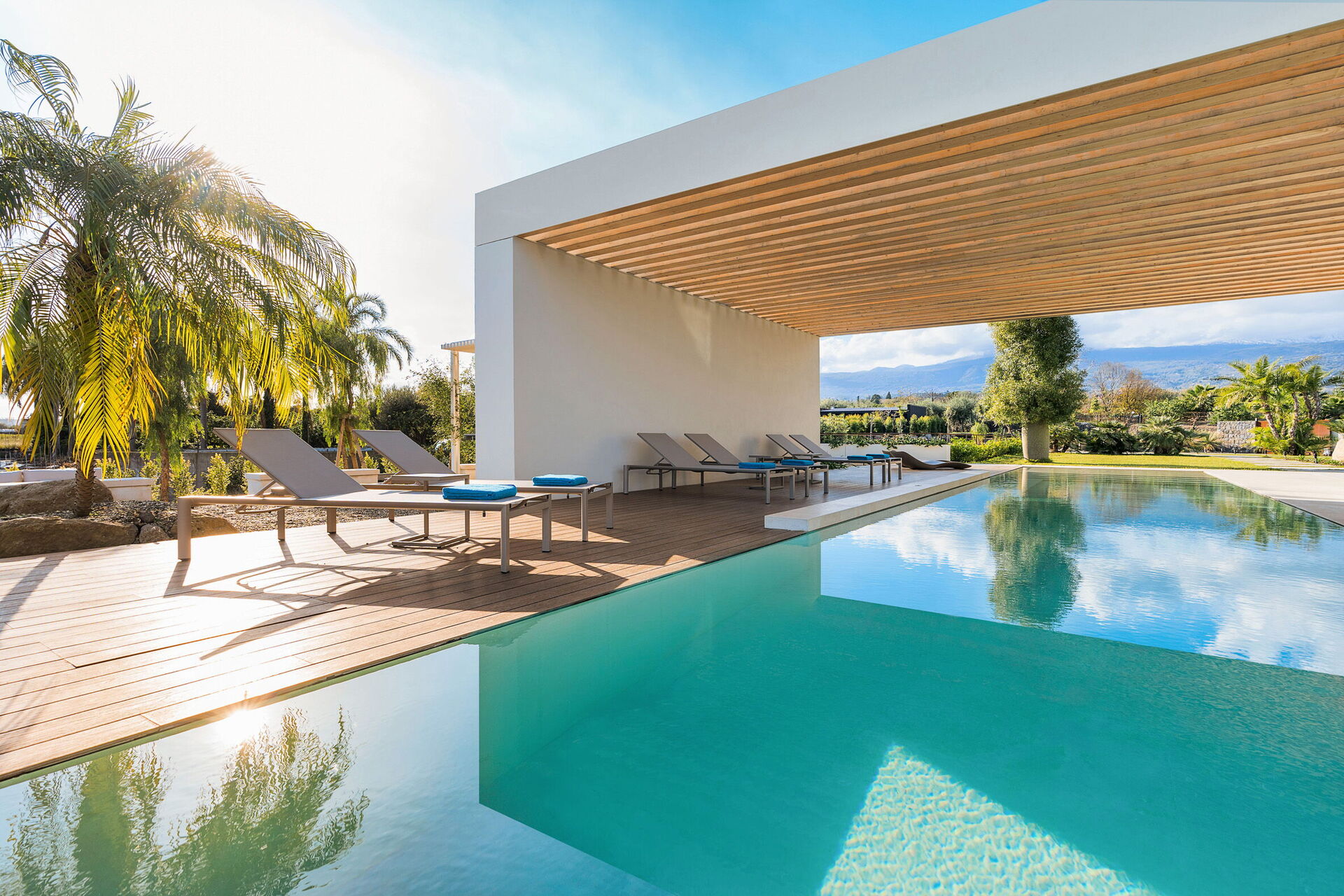 Villa Hermosa ist eine fantastische Luxusvilla mit privatem Schwimmbad zur Miete für einen Urlaub auf Sizilien: Die Villa befindet sich zwischen Taormina und Catania.