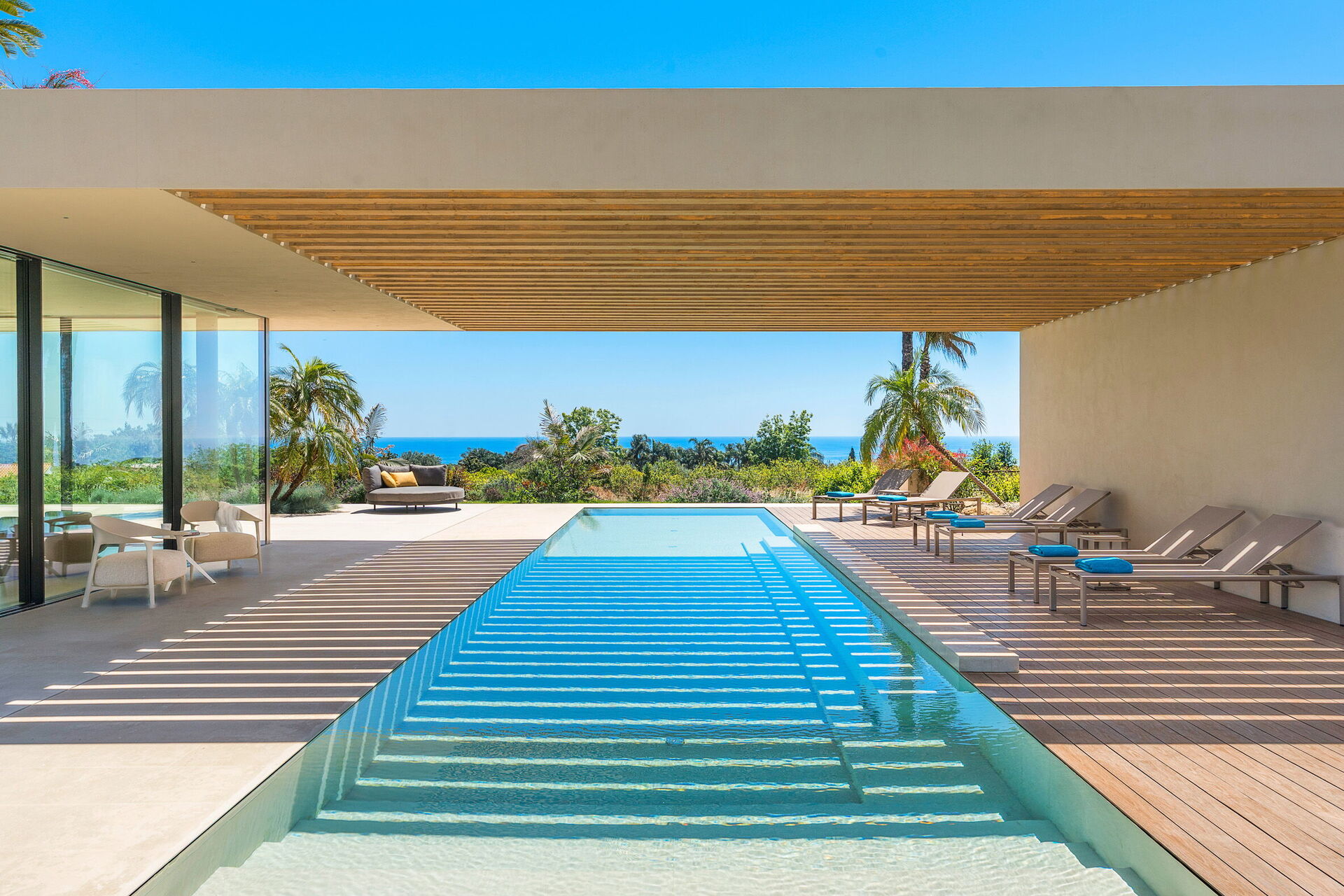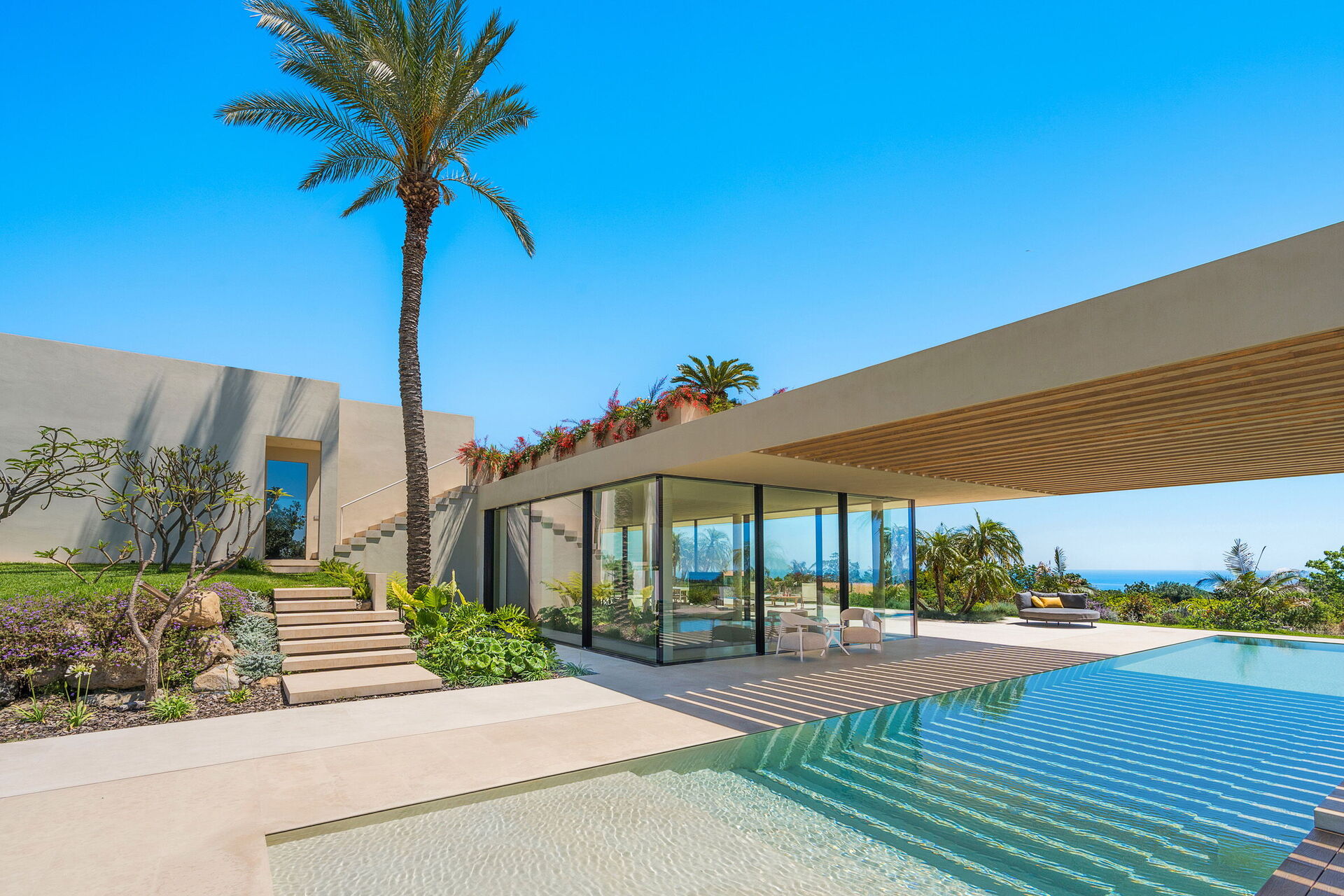 Die Villa Hermosa erstreckt sich über drei Etagen und verfügt über einladende Innenräume, die mit Eleganz und Geschmack eingerichtet und so konzipiert und gestaltet sind, dass sie den Bedürfnissen des modernen Wohnens gerecht werden. Dank ihrer 4 Schlafzimmer mit jeweils privatem Bad und ihrem großen Wohnbereich, der zum Schwimmbadbereich und der umliegenden Landschaft hin offen ist, bietet diese schöne Mietvilla bequem Platz für bis zu 8 Personen.