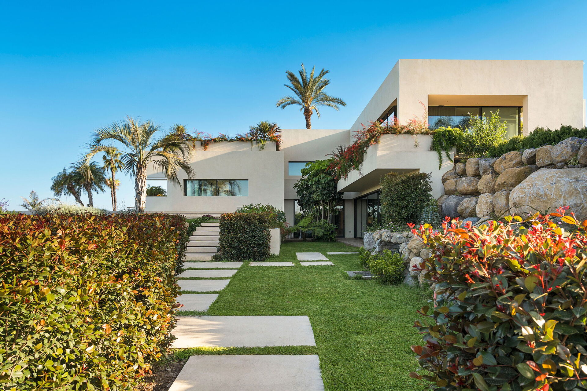 Im Nebengebäude, das sich in einem reservierten Bereich des Anwesens befindet, wohnt ein junges Paar, das sich mit Diskretion und Professionalität um die Instandhaltung des Hauses, des Gartens und des Schwimmbads kümmert. Das Hausmeisterehepaar betritt das Anwesen durch ein Nebentor und nutzt niemals den Garten, das Schwimmbad und die verschiedenen Außenbereiche, die ausschließlich den Gästen der Villa Hermosa zur Verfügung stehen!