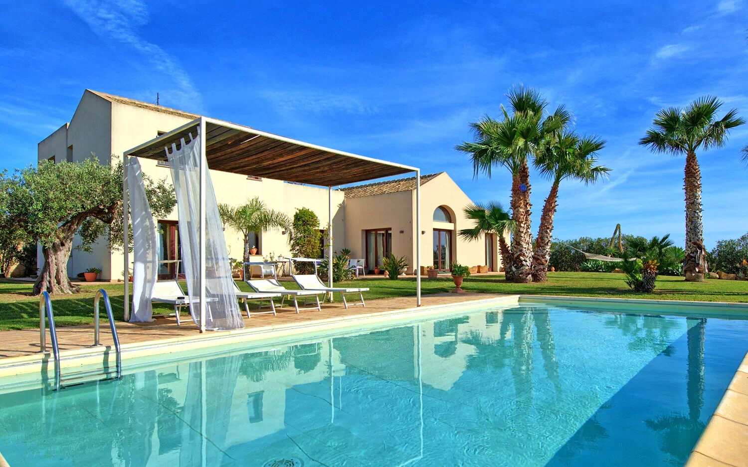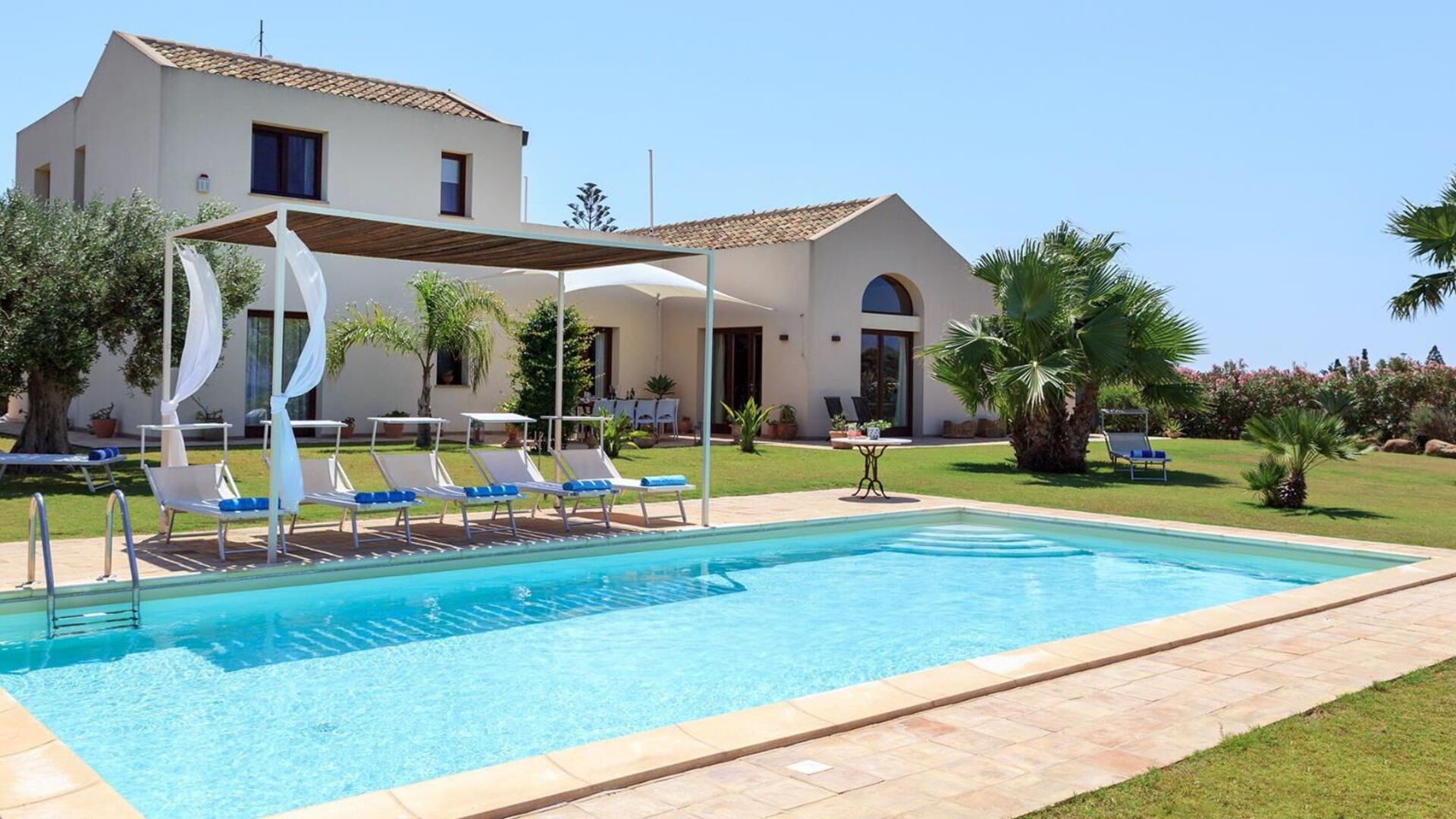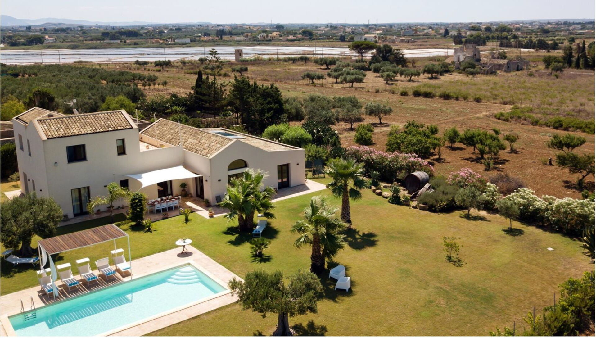 Villa Casale ist eine wunderschöne Villa mit privatem Schwimmbad zur Miete auf Sizilien in der Nähe des Naturschutzgebiets der Salinen von Trapani.