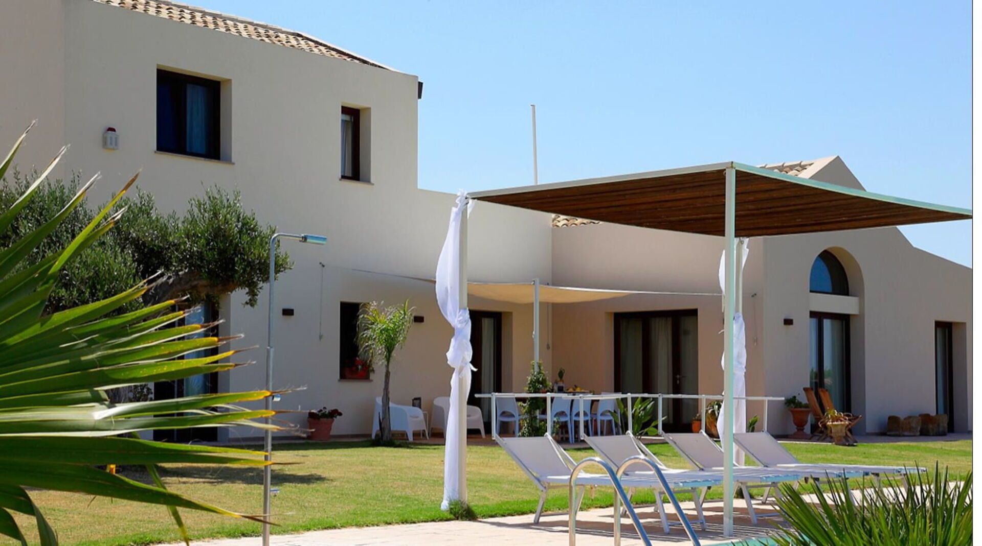 Die Außenbereiche in Panoramaposition bieten zahlreiche Gemeinschaftsbereiche, die es den Gästen ermöglichen, einen angenehmen Aufenthalt mit der Familie oder Freunden zu verbringen und sich auf der für Mahlzeiten im Freien ausgestatteten Terrasse oder im großen Schwimmbadbereich zu entspannen, der sich ideal für unvergessliche Momente unter der sizilianischen Sonne eignet.