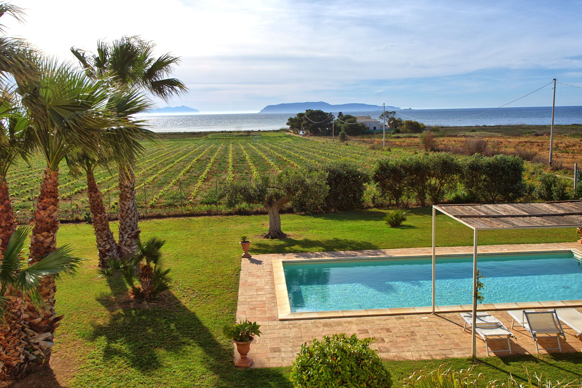 • Panoramaterrasse mit Blick auf das Meer, die Ägadischen Inseln und den Weinberg