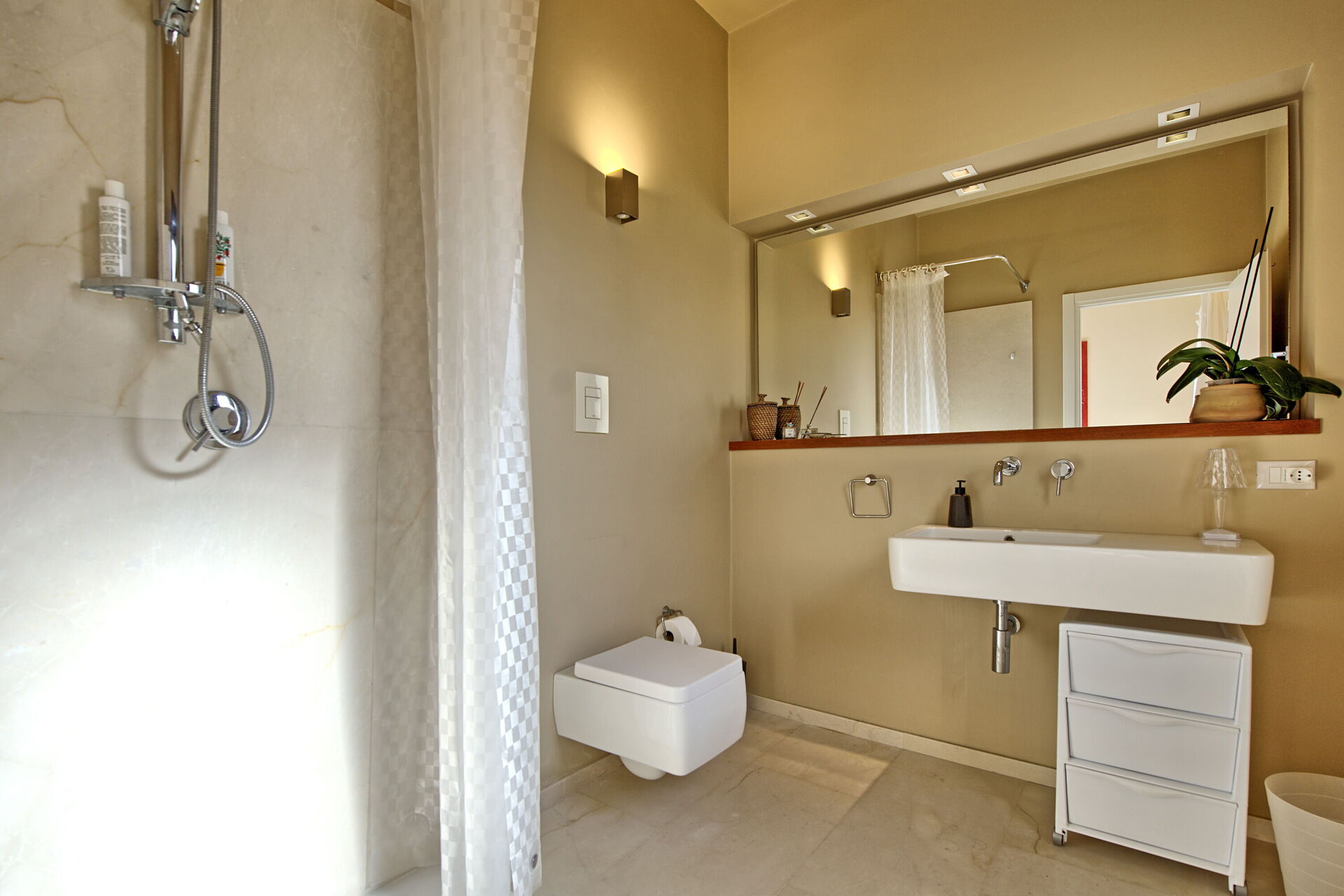 Erster Stock: Doppelzimmer mit privatem Bad mit Dusche und Zugang zu einer Panoramaterrasse.