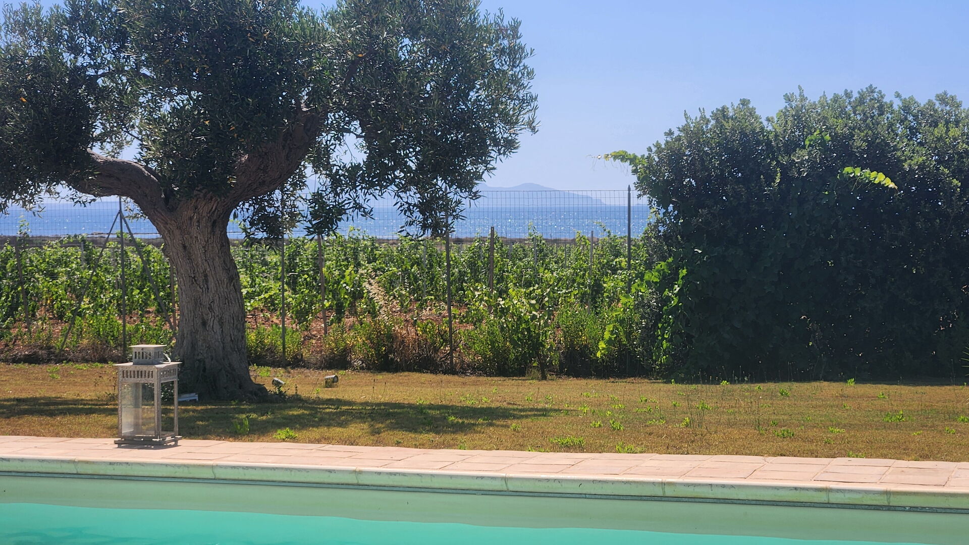 Diese exklusive Ferienvilla liegt neben einem Weinberg und genießt eine malerische Panoramalage mit atemberaubendem Blick auf das Meer, das sowohl vom Schwimmbad, als auch von den großen Terrassen aus bewundert werden kann.