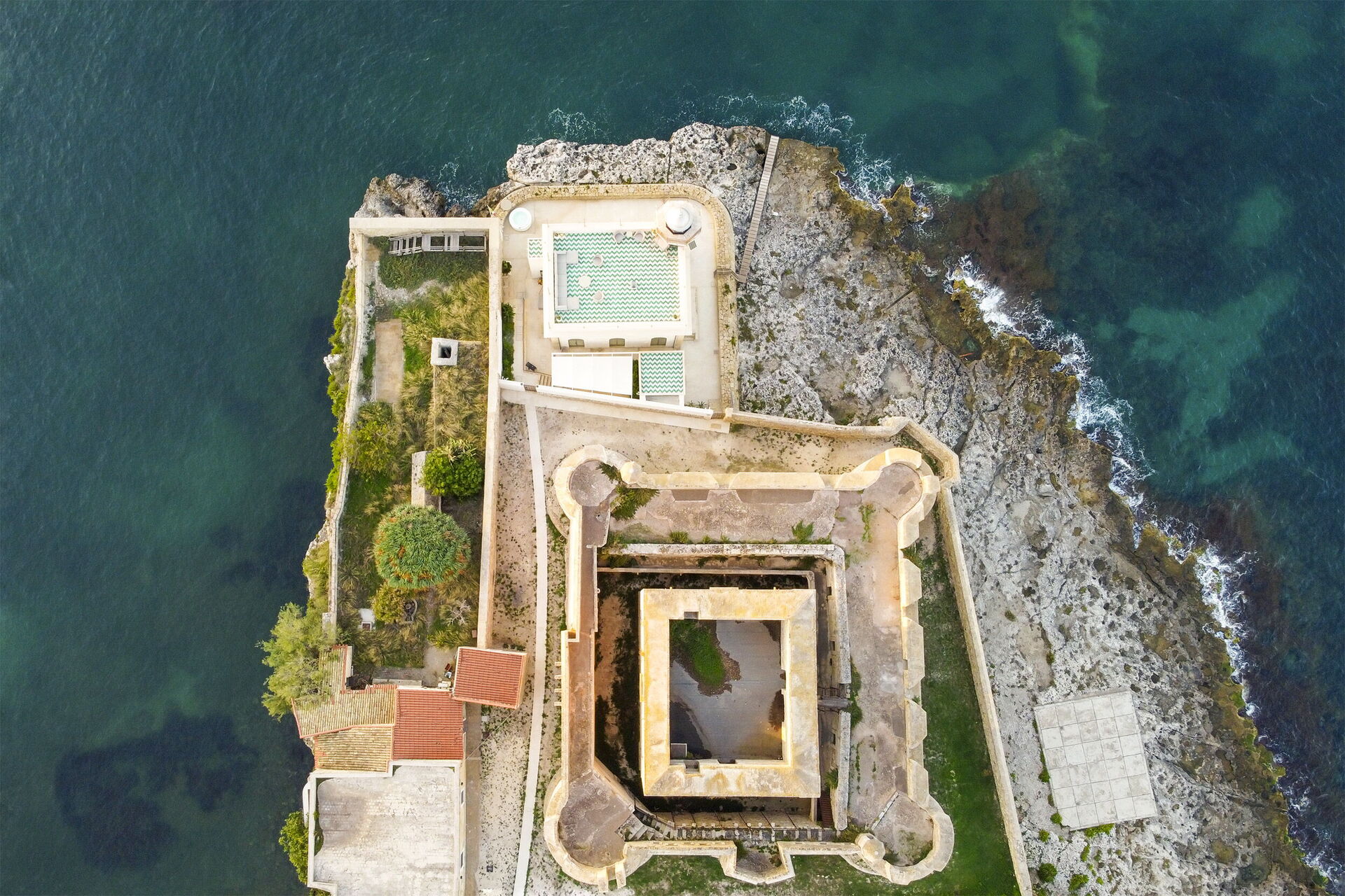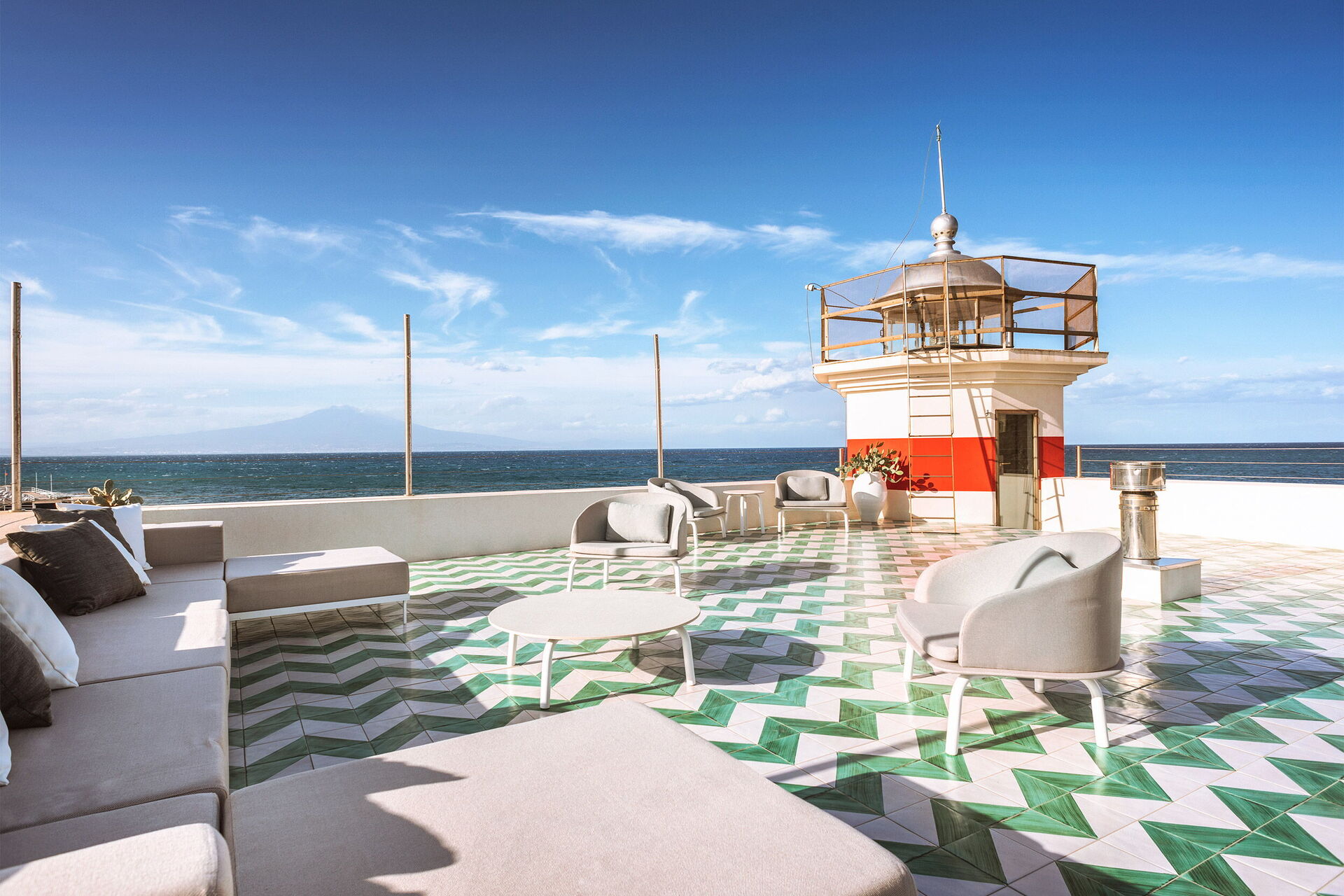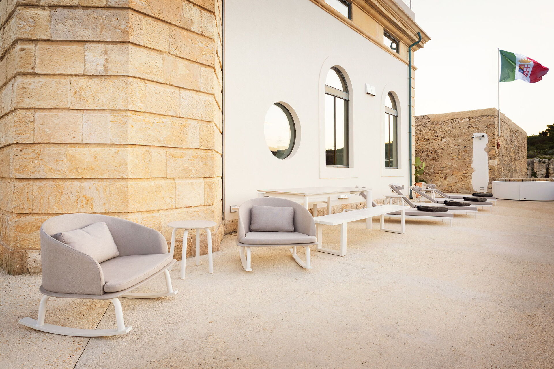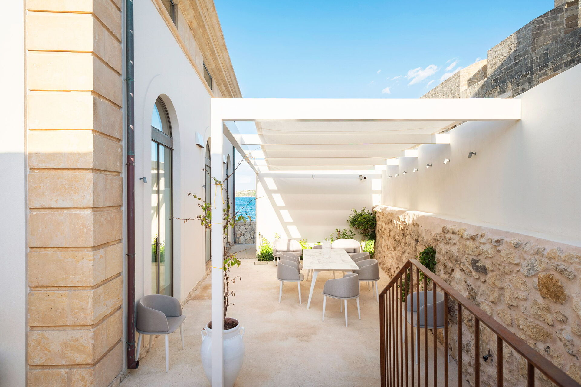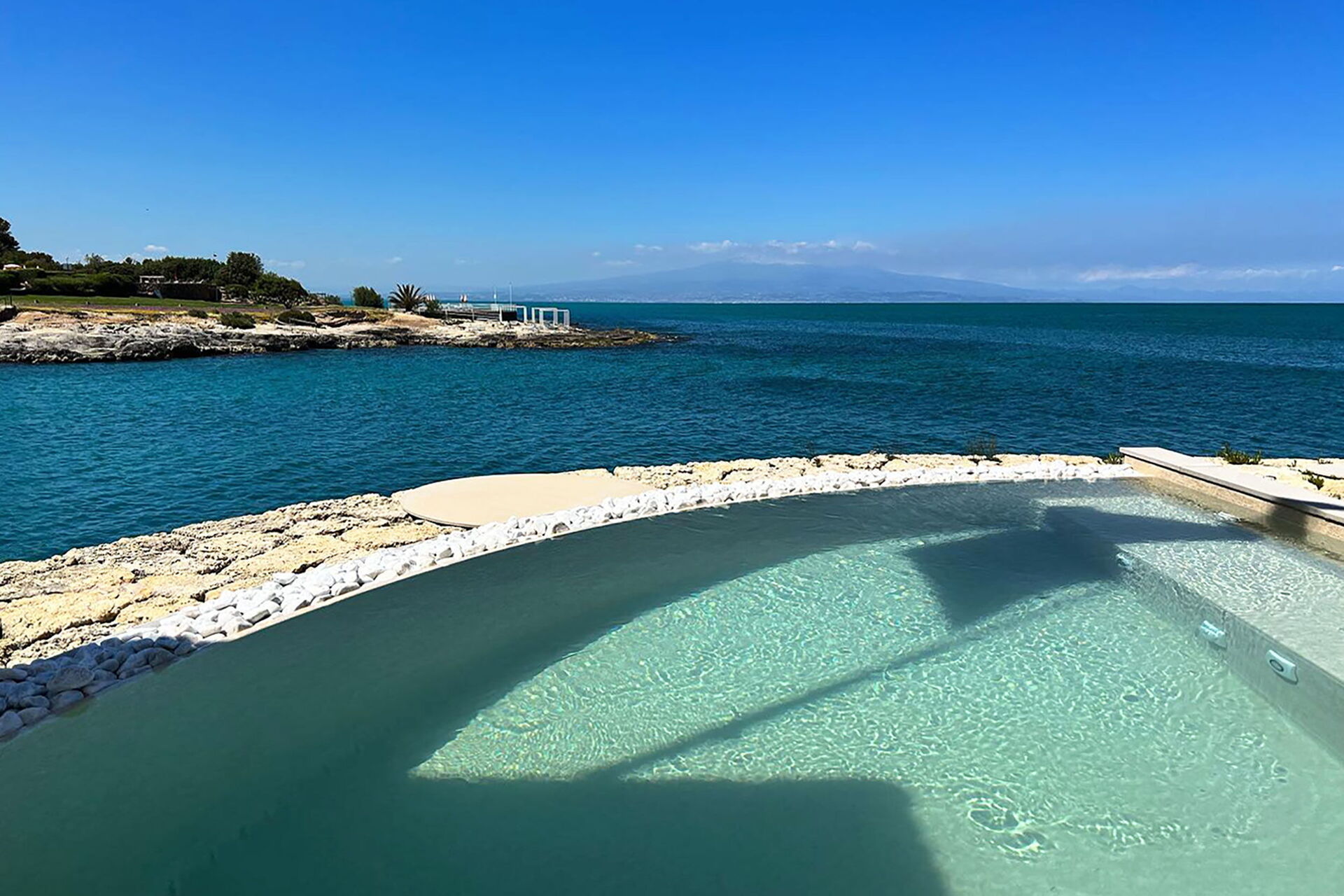 Die Panorama-Außenbereiche bieten zahlreiche Gemeinschaftsflächen und ermöglichen den Gästen einen angenehmen Aufenthalt mit Familie oder Freunden: Die Gäste können im beheizten Panorama-Hydromassage-Außenschwimmbad oder auf der großen Sonnenterrasse mit Blick auf das Meer entspannen, ideal, um schöne Momente unter der sizilianischen Sonne zu genießen. Die Gäste haben direkten Zugang zur Klippe und zum Meer.