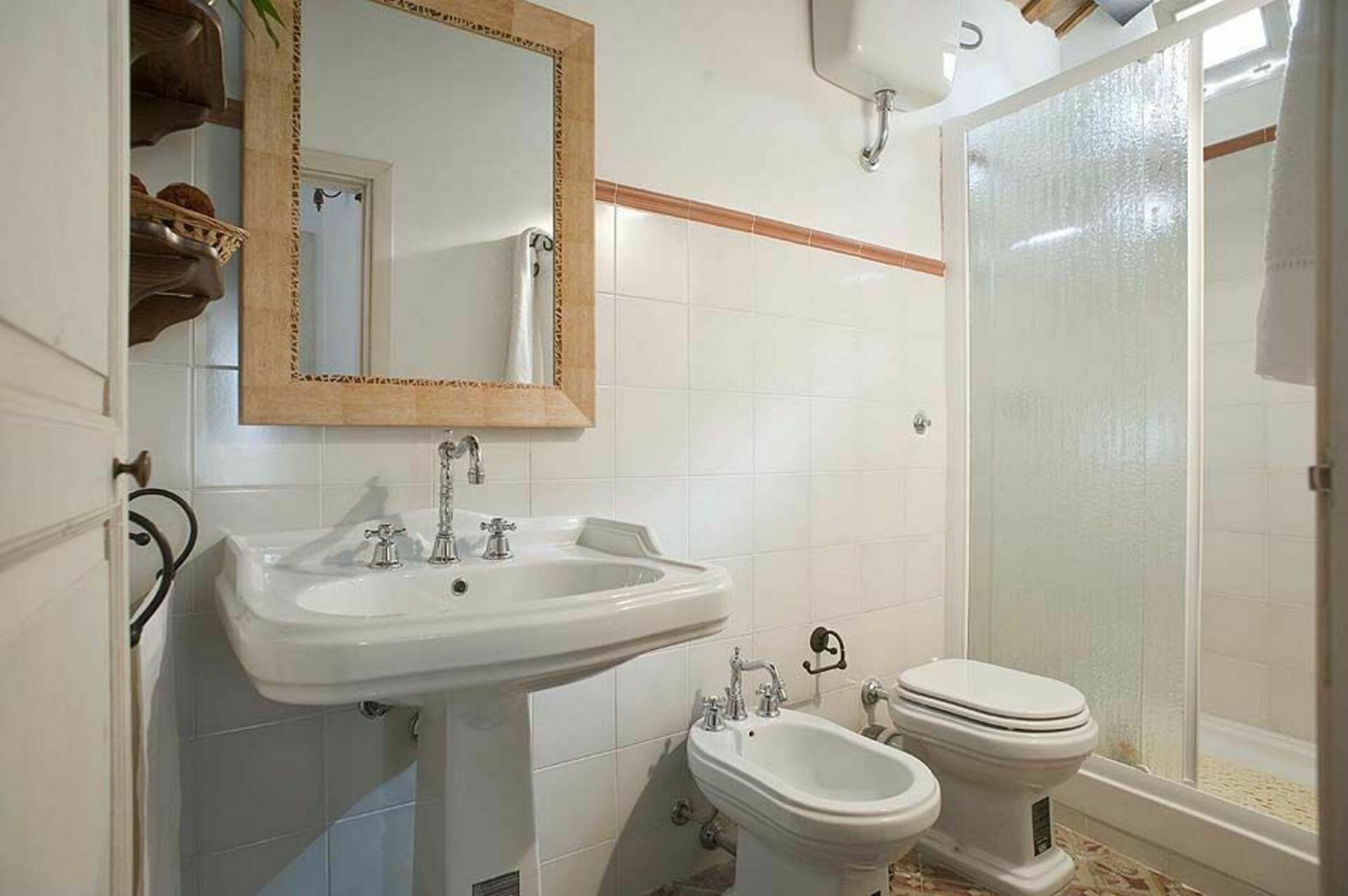 1.Stock: Dopelzimmer mit Ehebett, Zweibettzimmer (Durchgangszimmer), Bad mit Dusche.