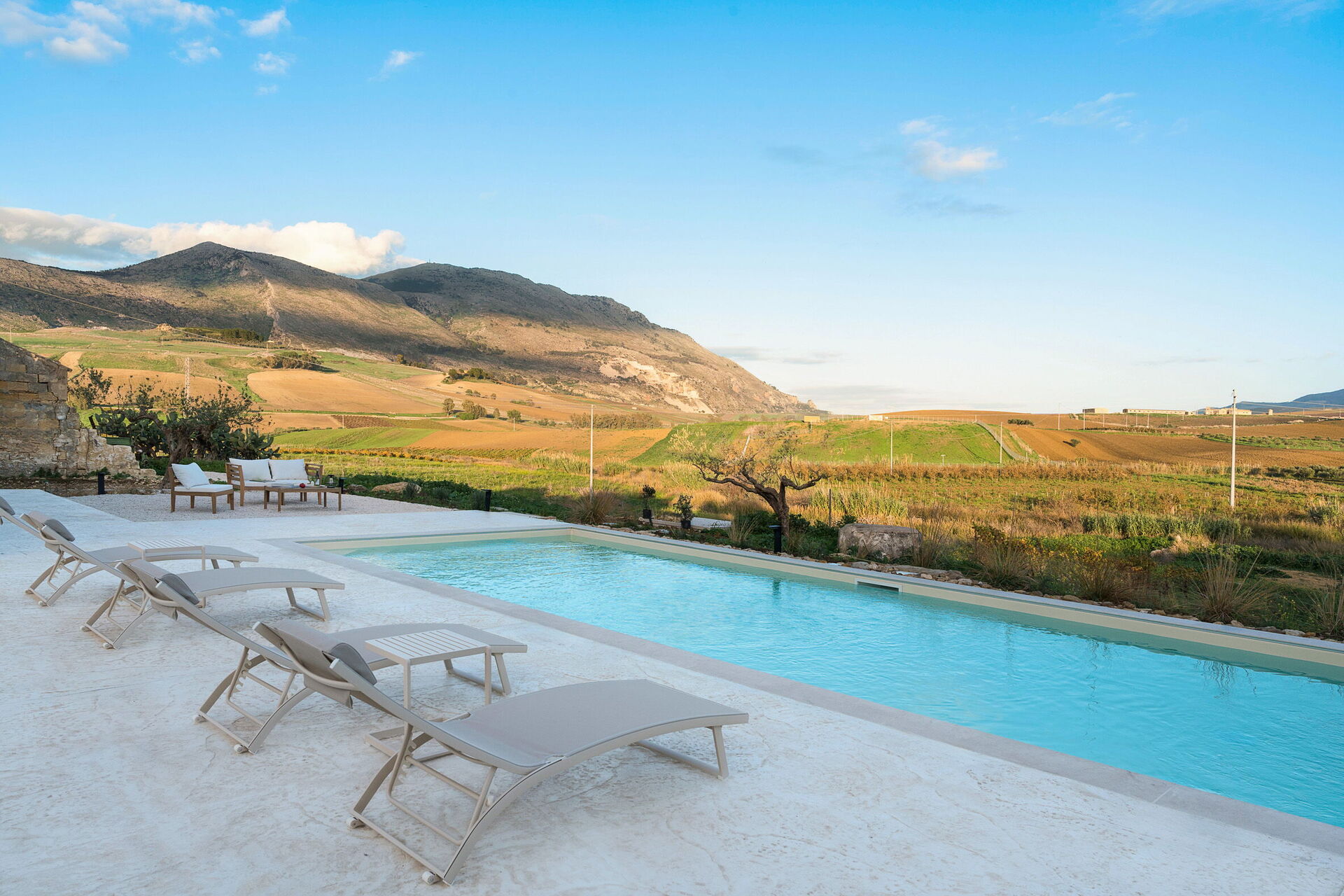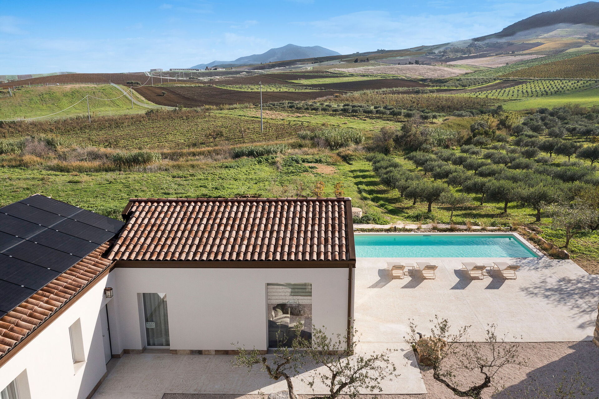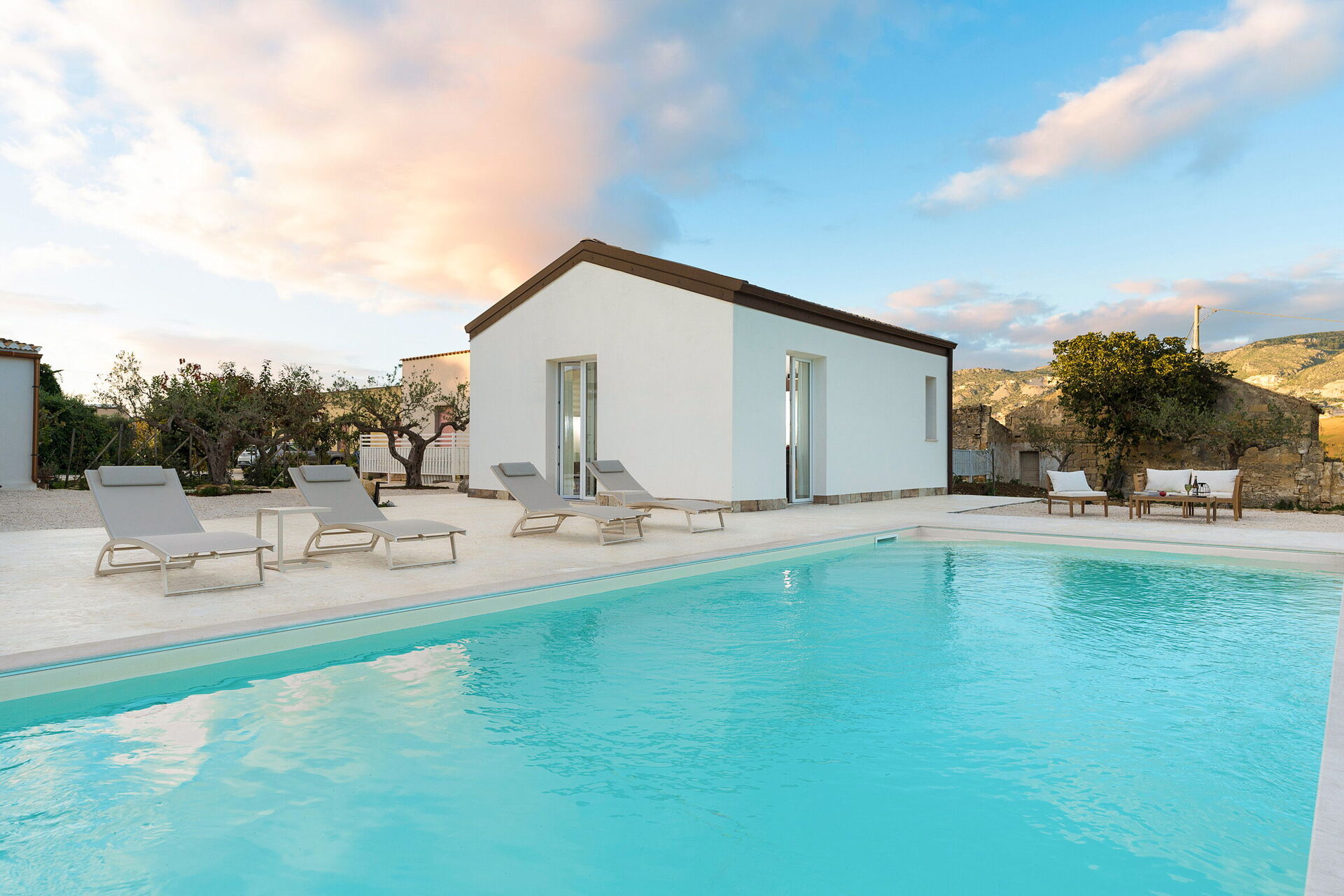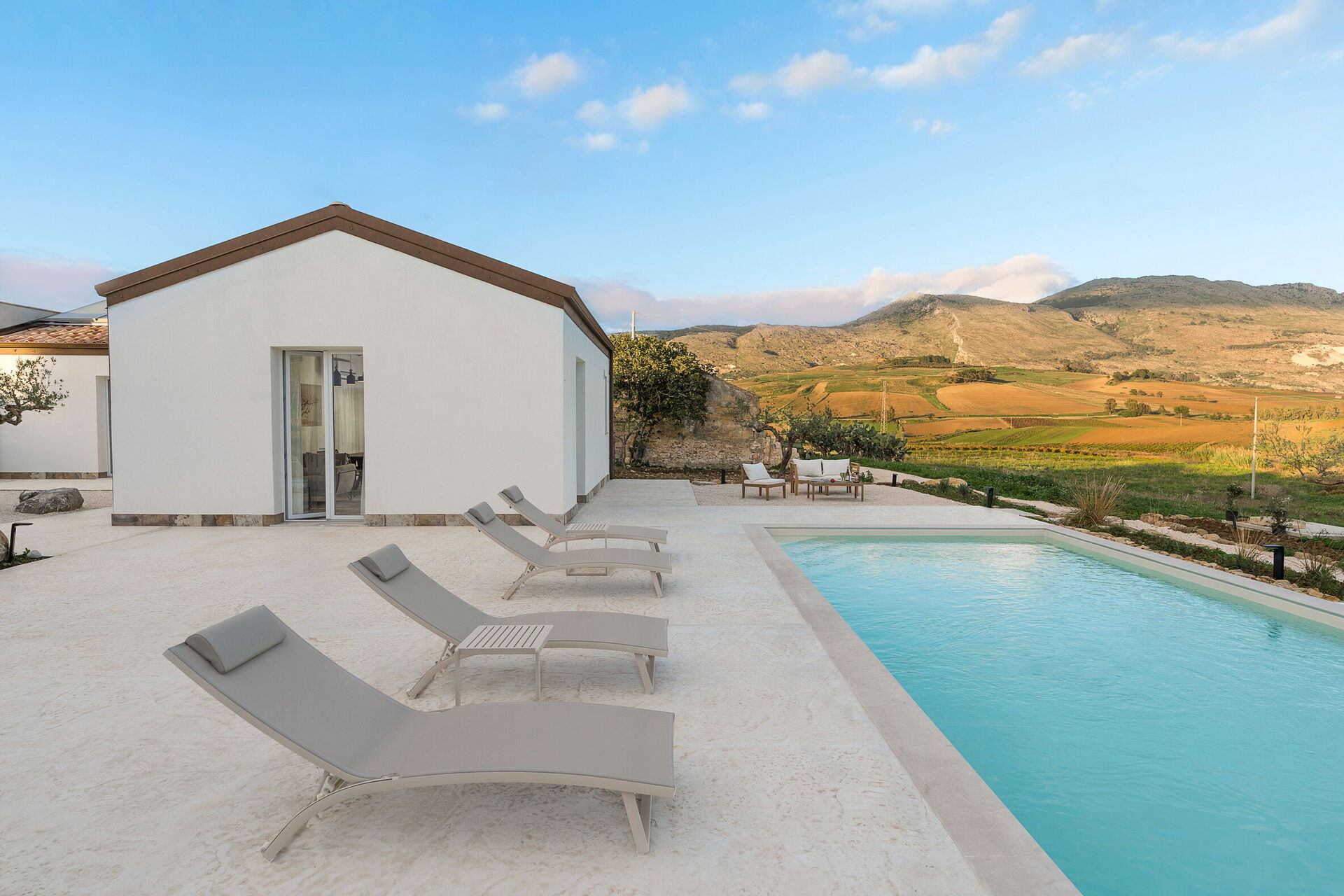 Die Panorama-Außenbereiche sind das Highlight des Hauses: Das Schwimmbad, das den Gästen exklusiv zur Verfügung steht, eine gepflegte Terrasse und die Sonnenterrasse machen dieses Haus zum idealen Ort zum Entspannen und Erfrischen an sonnigen sizilianischen Tagen.