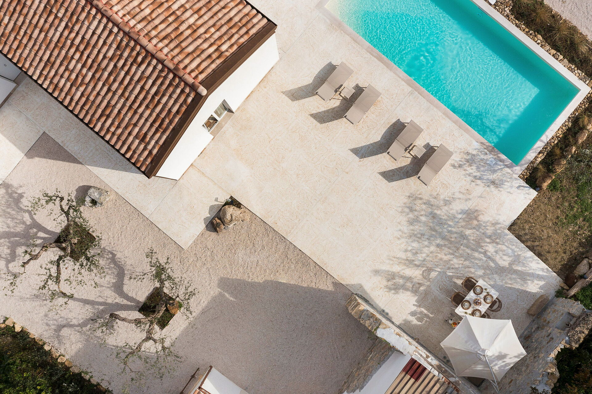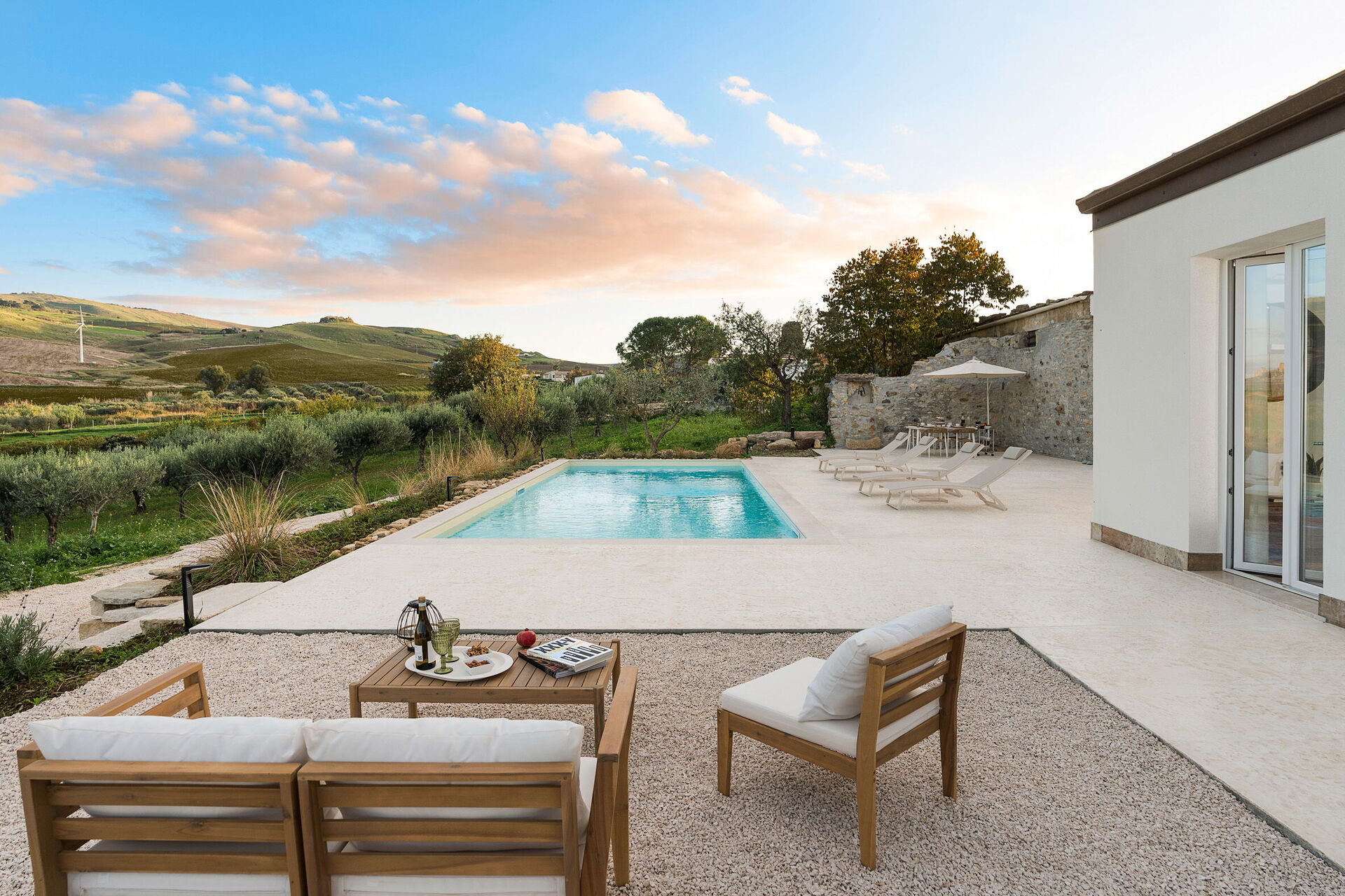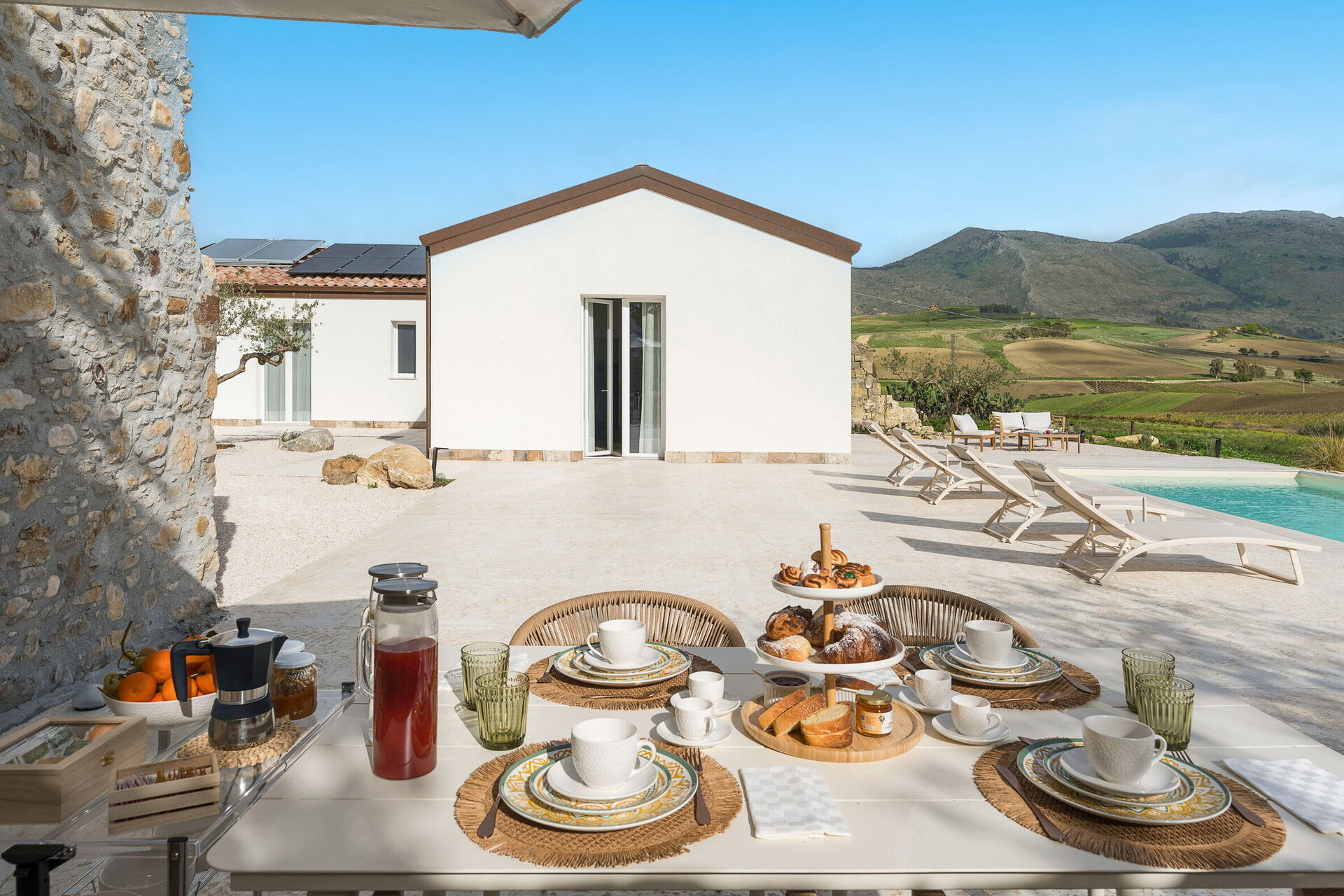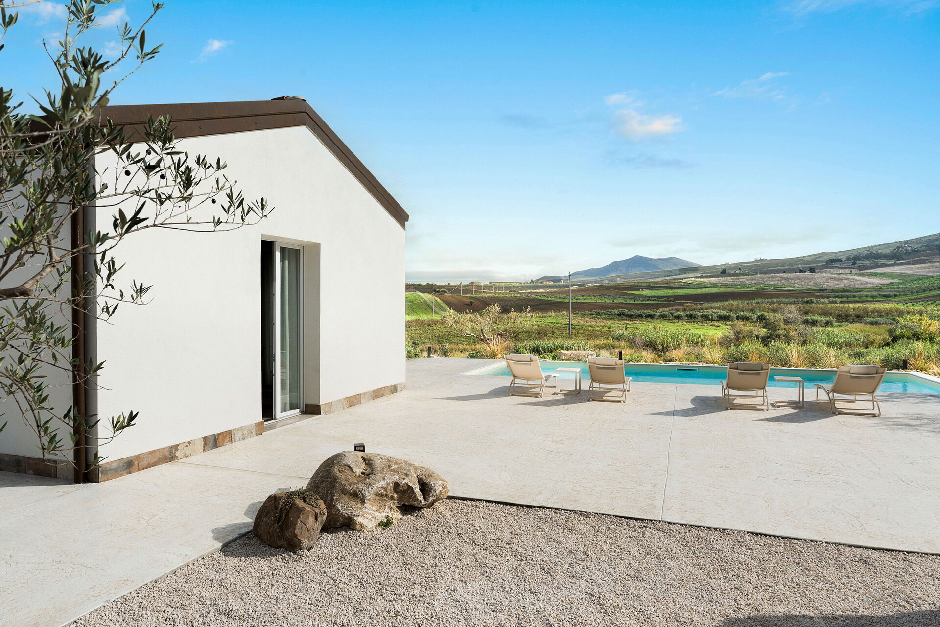 Die Panorama-Außenbereiche sind das Highlight des Hauses: Das Schwimmbad, das den Gästen exklusiv zur Verfügung steht, eine gepflegte Terrasse und die Sonnenterrasse machen dieses Haus zum idealen Ort zum Entspannen und Erfrischen an sonnigen sizilianischen Tagen.