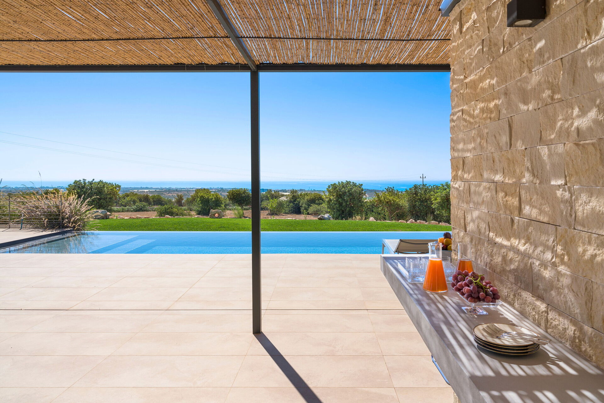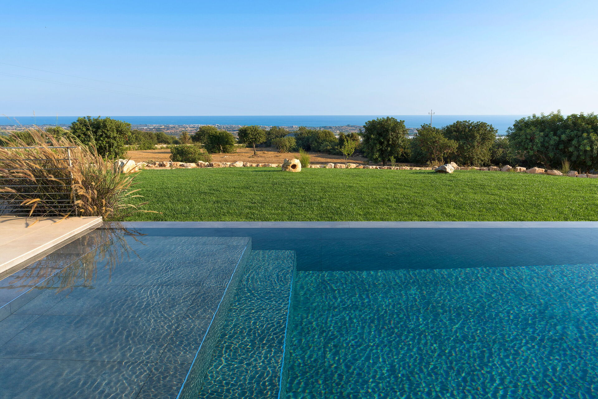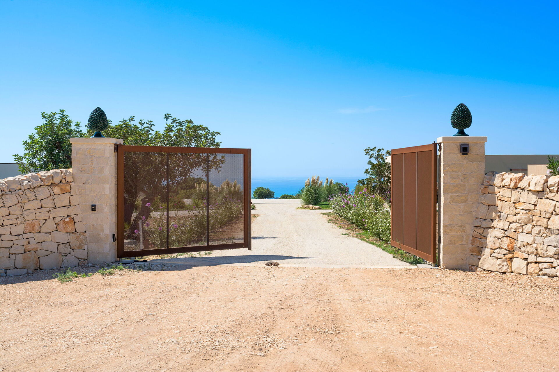 Diese exklusive Ferienvilla in der Nähe von Scicli (spektakuläre Barockstadt, UNESCO-Weltkulturerbe) genießt eine ruhige und malerische Lage mit atemberaubendem Blick auf die herrliche umliegende Landschaft, die Landschaft und das Meer, das sowohl vom Schwimmbad, als auch von der großen Terrasse aus bewundert werden kann Terrassen.