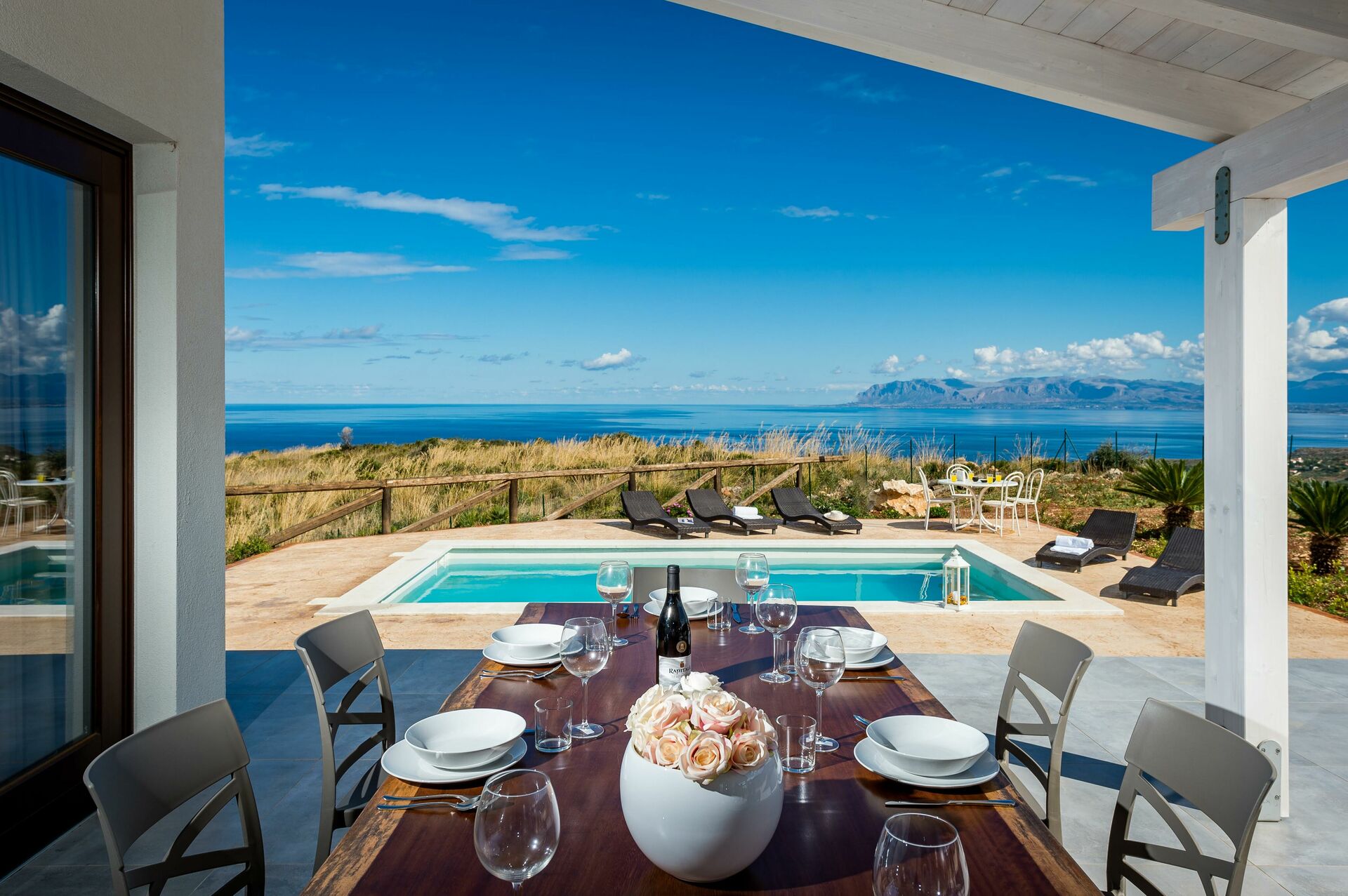 Die Flughäfen von Trapani und Palermo befinden sich in gleicher Entfernung von der Villa (ca. 50 km entfernt). Vom Hafen von Trapani aus können Gäste mit der Fähre die wunderschönen Egadi-Inseln (Favignana, Marettimo und Levanzo) besuchen.