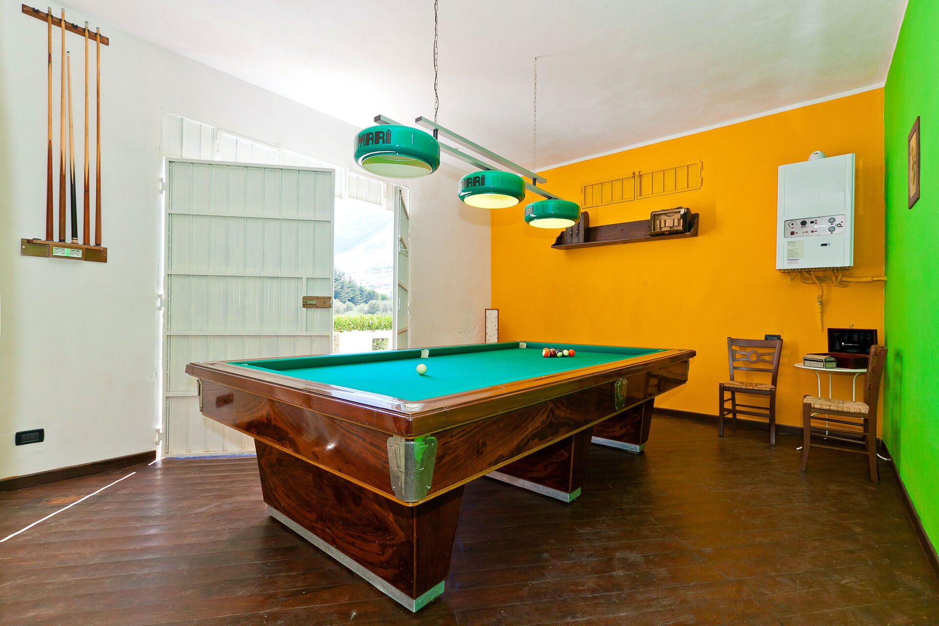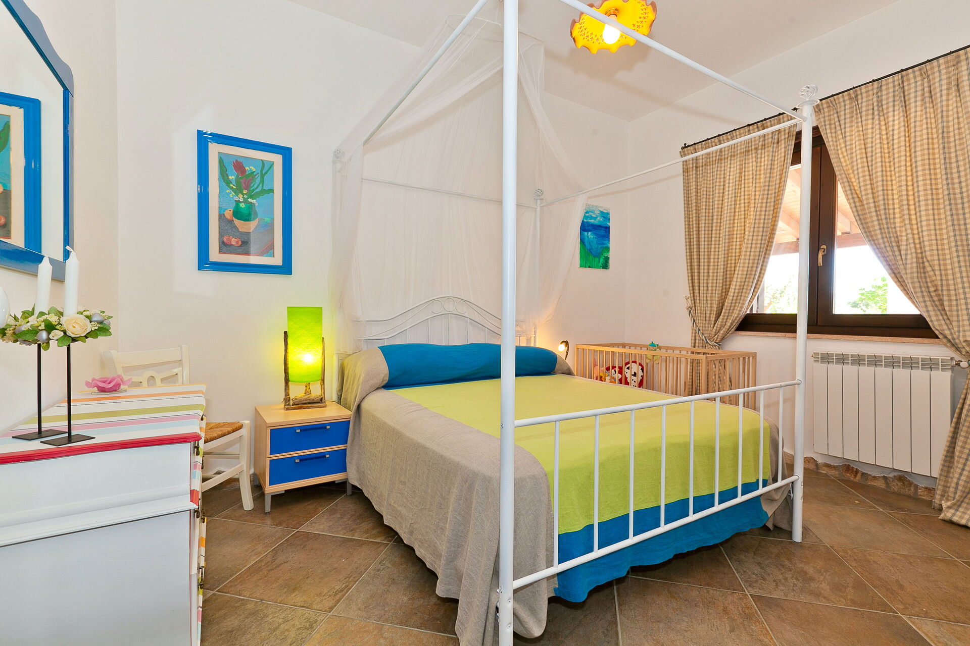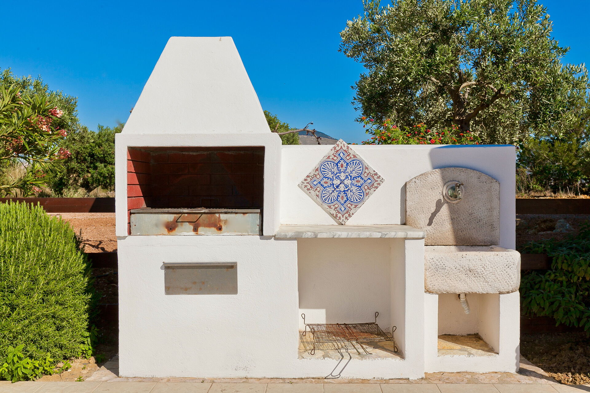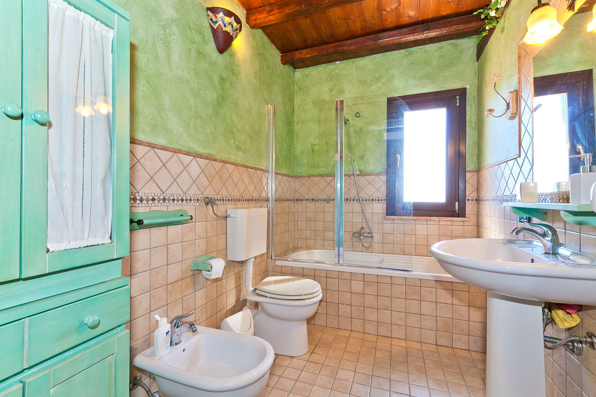 Die Innenausstattung ist in typisch traditioneller Art gehalten mit Materialien wie Holz, Terrakotta und Majolika-Fliessen. Diese Materialien machen die Räume des Hauses warm, einladend und elegant.