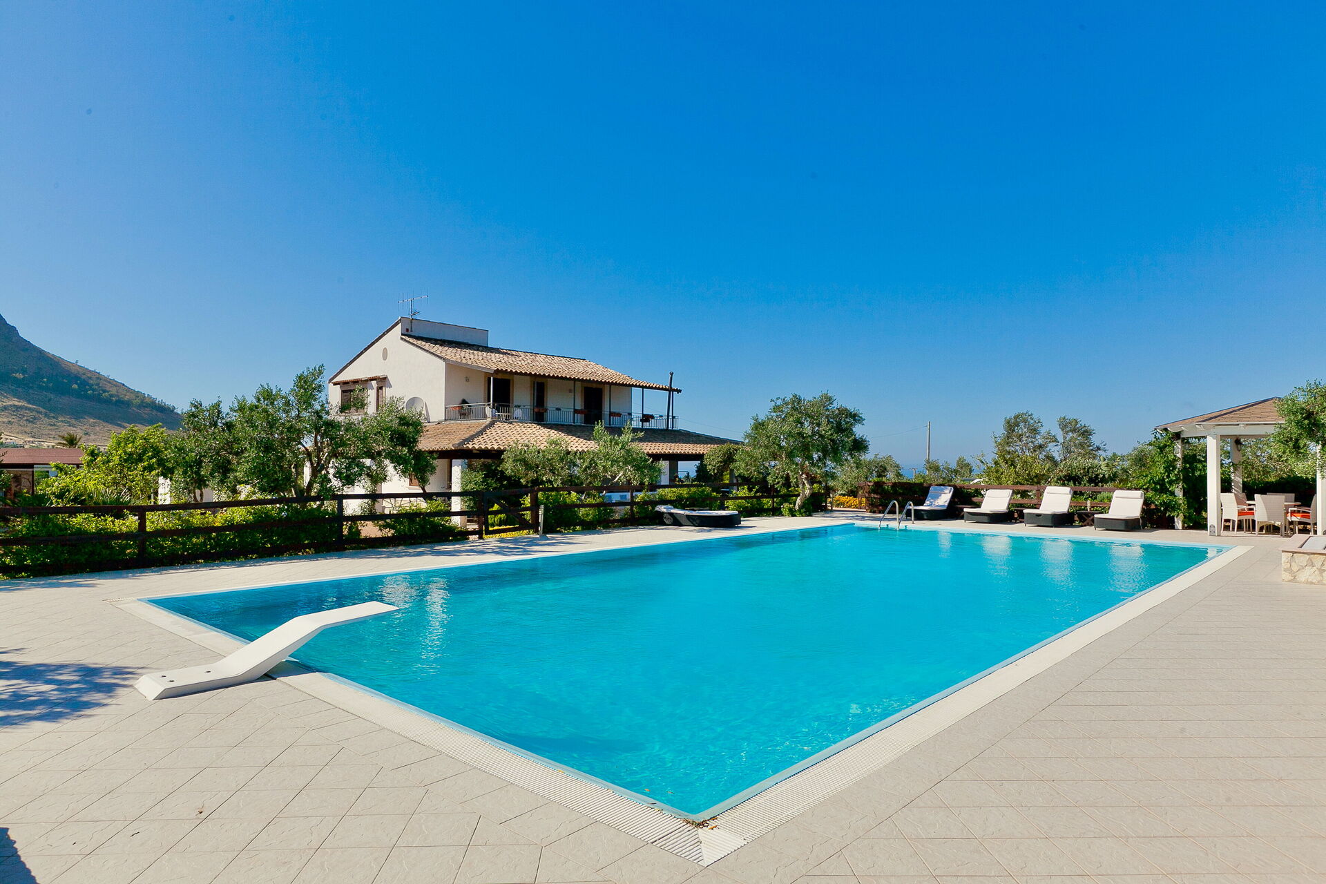 “Tenutersa” ist eine elegante Villa mit Schwimmbad am Meer in Sizilien, bei dem Ort Castellamare del Golfo, auf dem Lande.