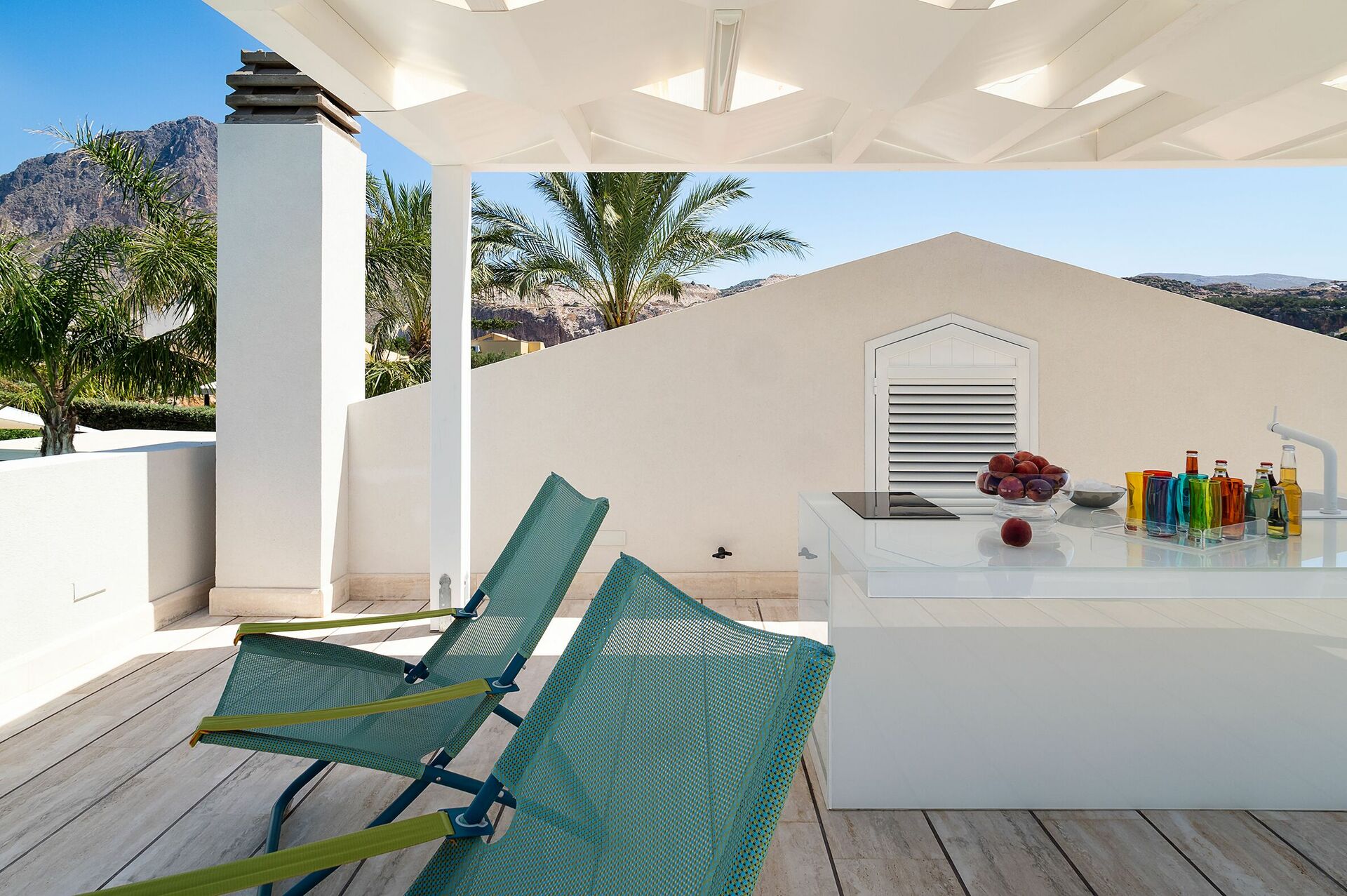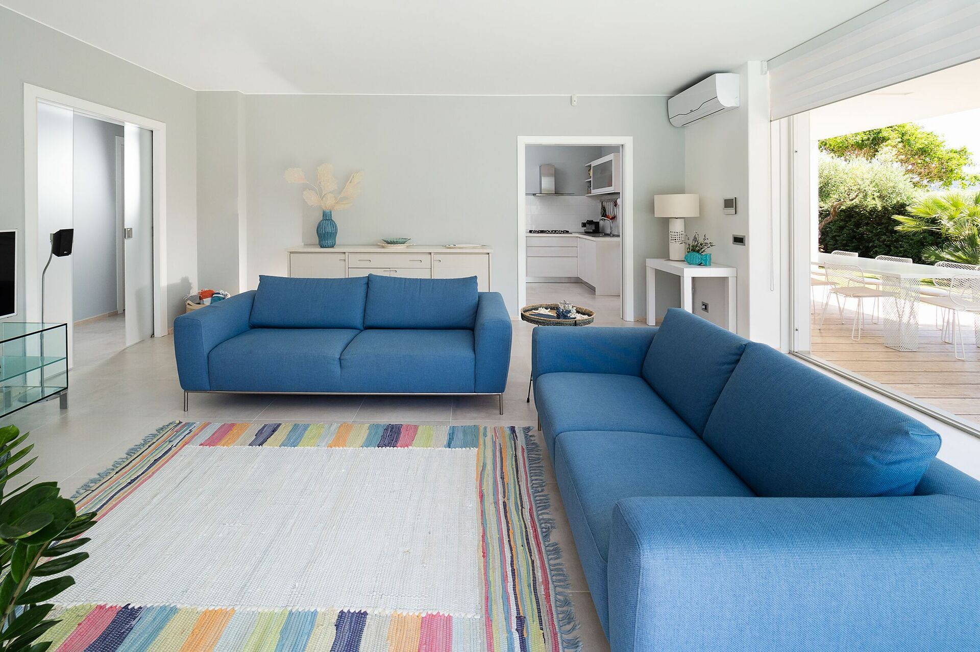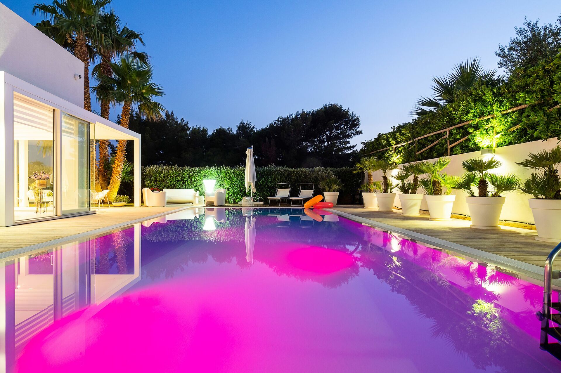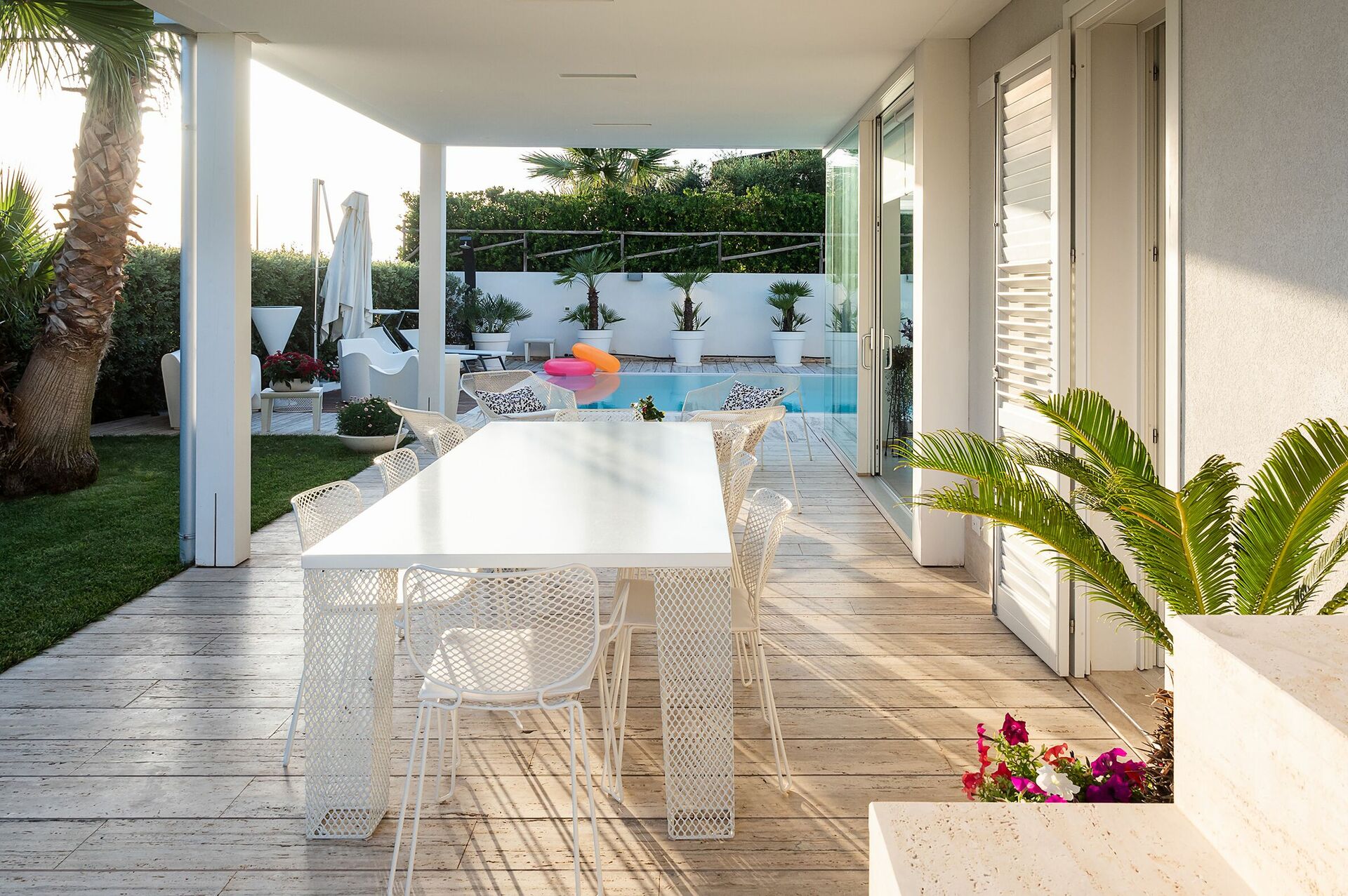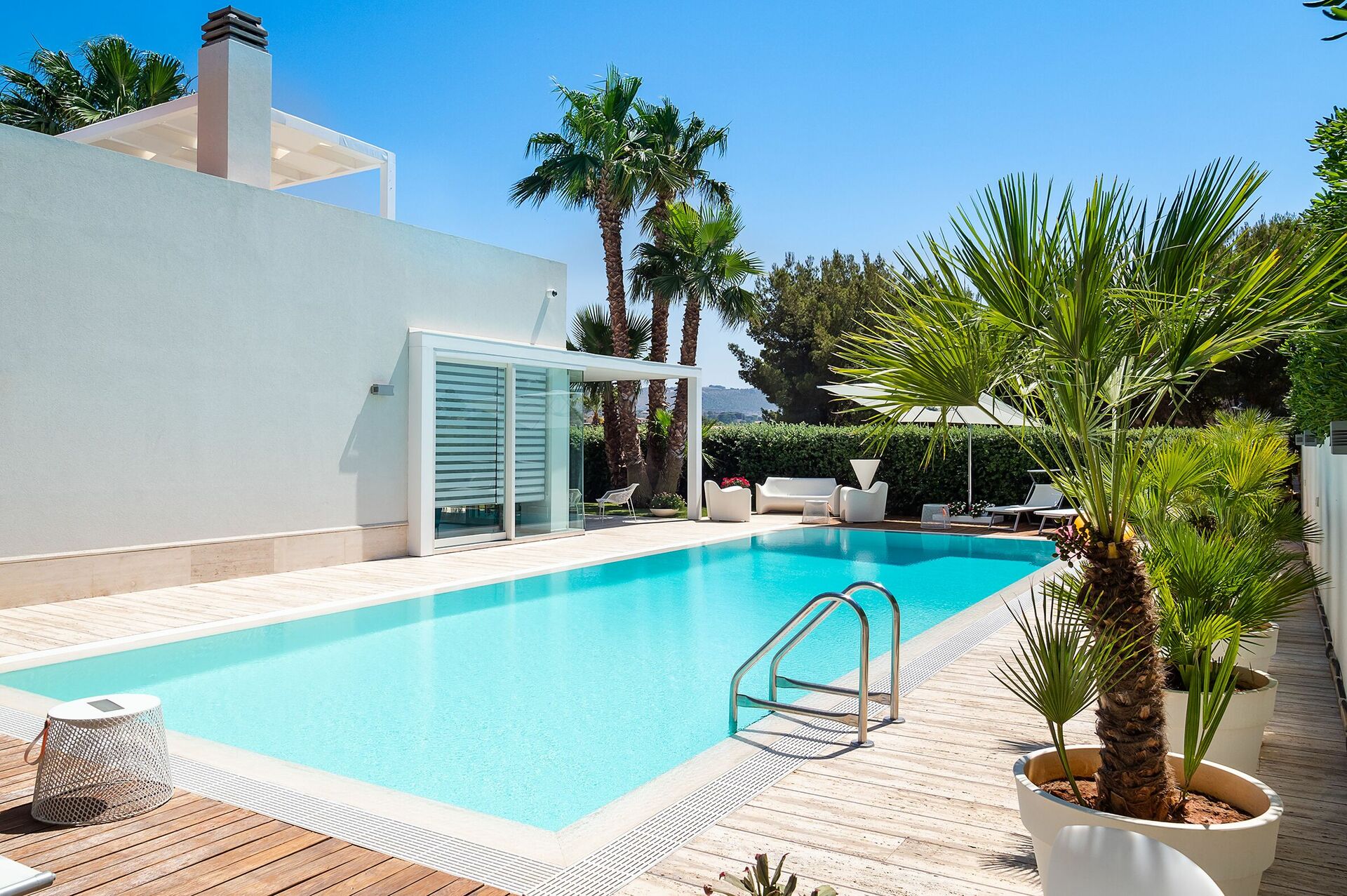 Eingebettet in eine ruhige Wohngegend verfügt die Villa über einen schönen Garten mit üppigen Pflanzen und großen Terrassen, die mit Sesseln und Tischen ausgestattet sind. Das herrliche private Schwimmbad mit Infinity-Rand verfügt über eine Sonnenterrasse mit Liegestühlen: die perfekte Alternative zum Strand, um angenehme Momente der Entspannung zu verbringen und sich in Gesellschaft von Freunden und Familie abzukühlen.
