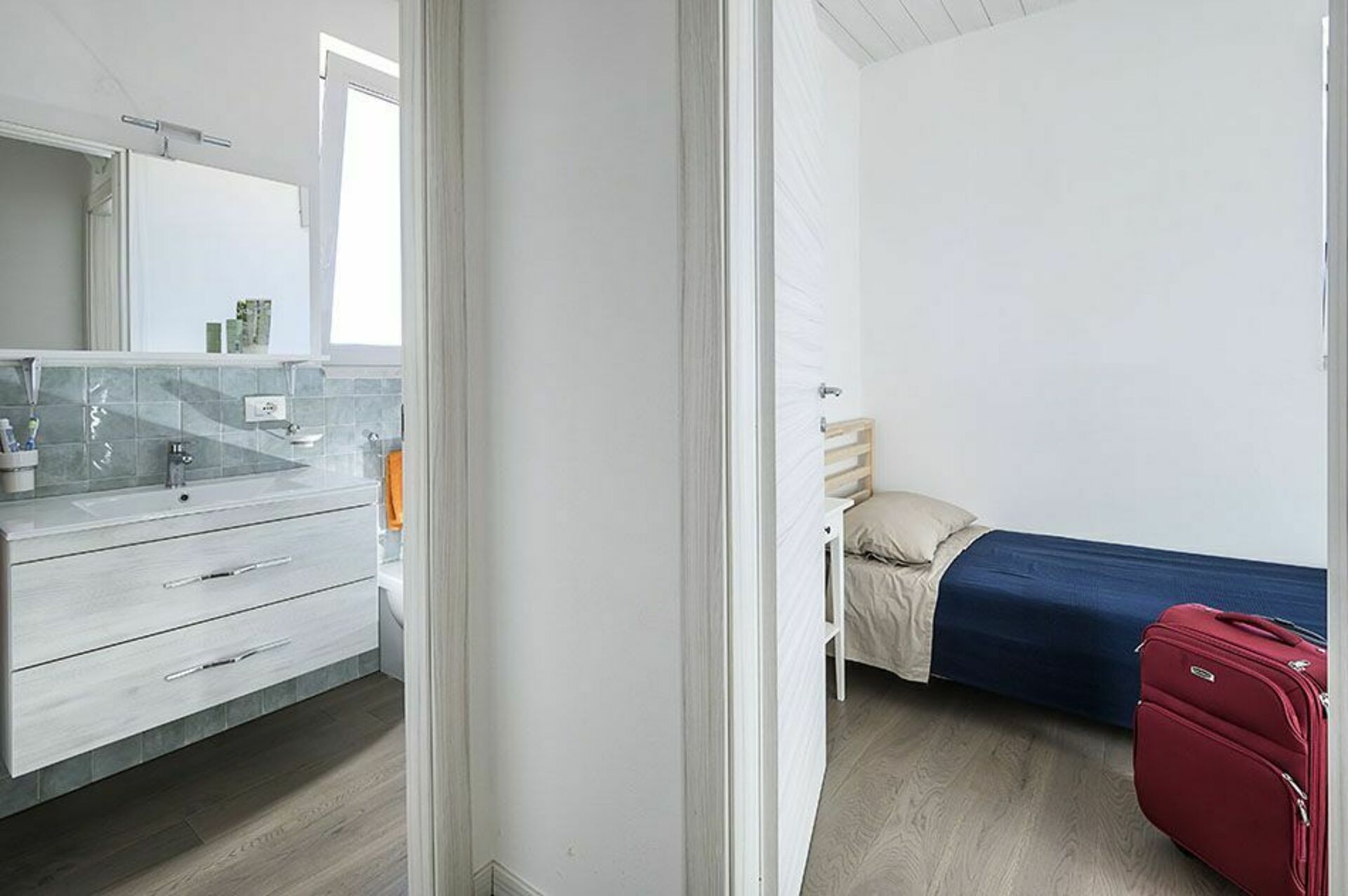 1.Stock(Zugang über eine Aussentreppe): Wohnzimmer/ Küche, Doppelzimmer mit Ehebett, Einzelzimmer, Bad mit Dusche. Ausgestattete Panorama-Terrasse mit Meerblick.