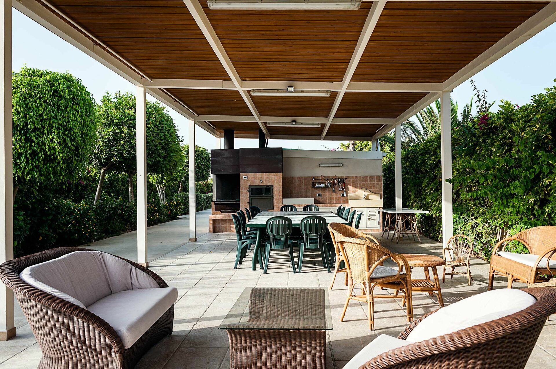 Die Apartments für jeweils vier Personen haben direkten Zugang zum Strand und eine private Terrasse mit Meerblick.Auf der Rückseite der Villa befindet sich eine große Terrasse, die von den Gästen gemeinsam genutzt wird und mit einer Küche ausgestattet ist im Freien und ein Grill.