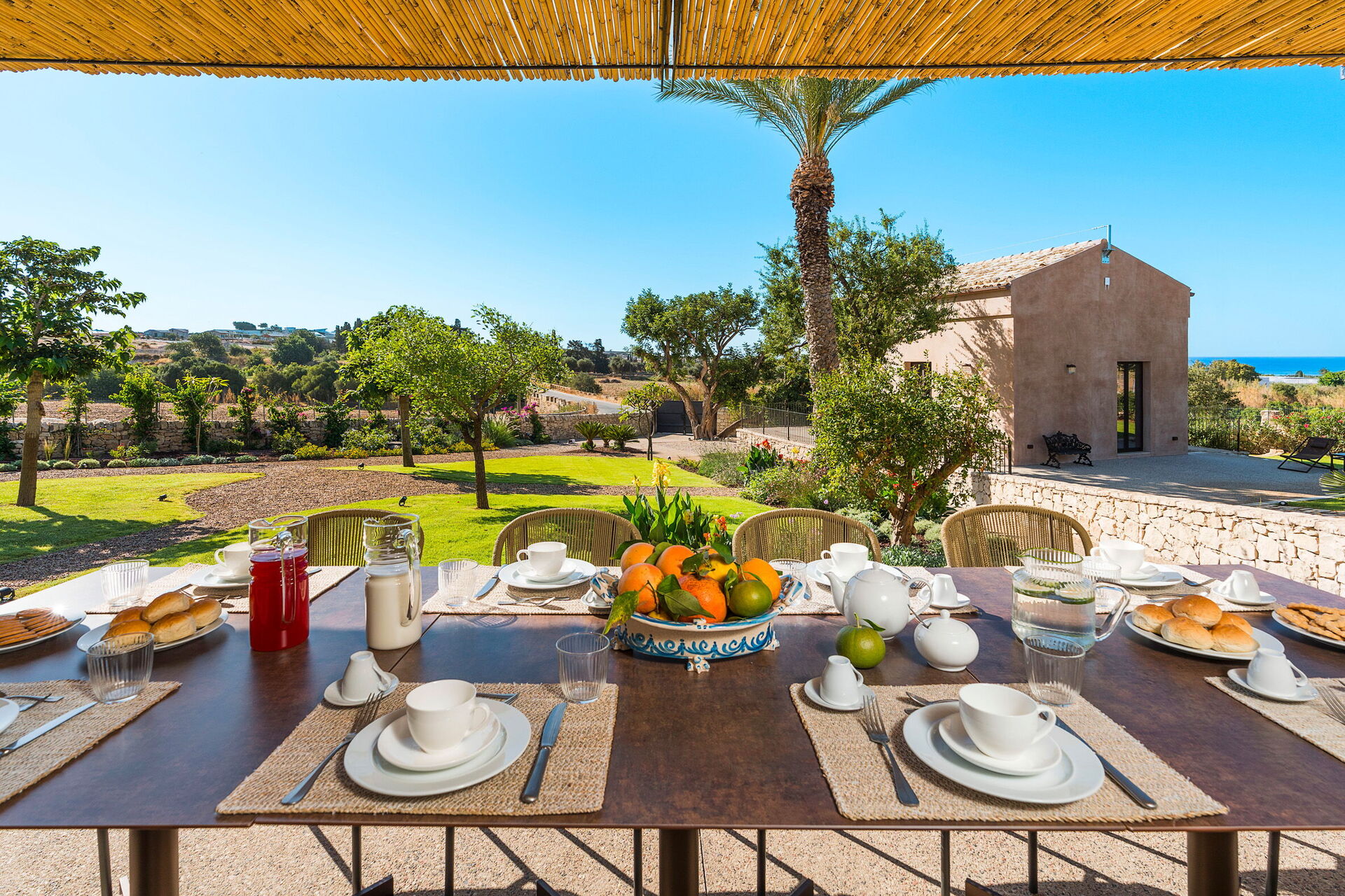 Das Anwesen ist von einem großen, gepflegten Garten mit typischen Trockenmauern umgeben und verfügt über eine Sonnenterrasse mit einem schönen privaten Schwimmbad, das exklusiv den Gästen zur Verfügung steht. Im Außenbereich sorgt eine Terrasse mit Grill, Stühlen und einem Tisch für entspannende Momente, die Ihren Urlaub in Sizilien unvergesslich machen.