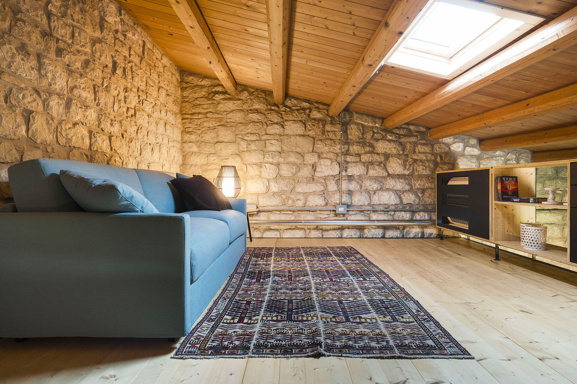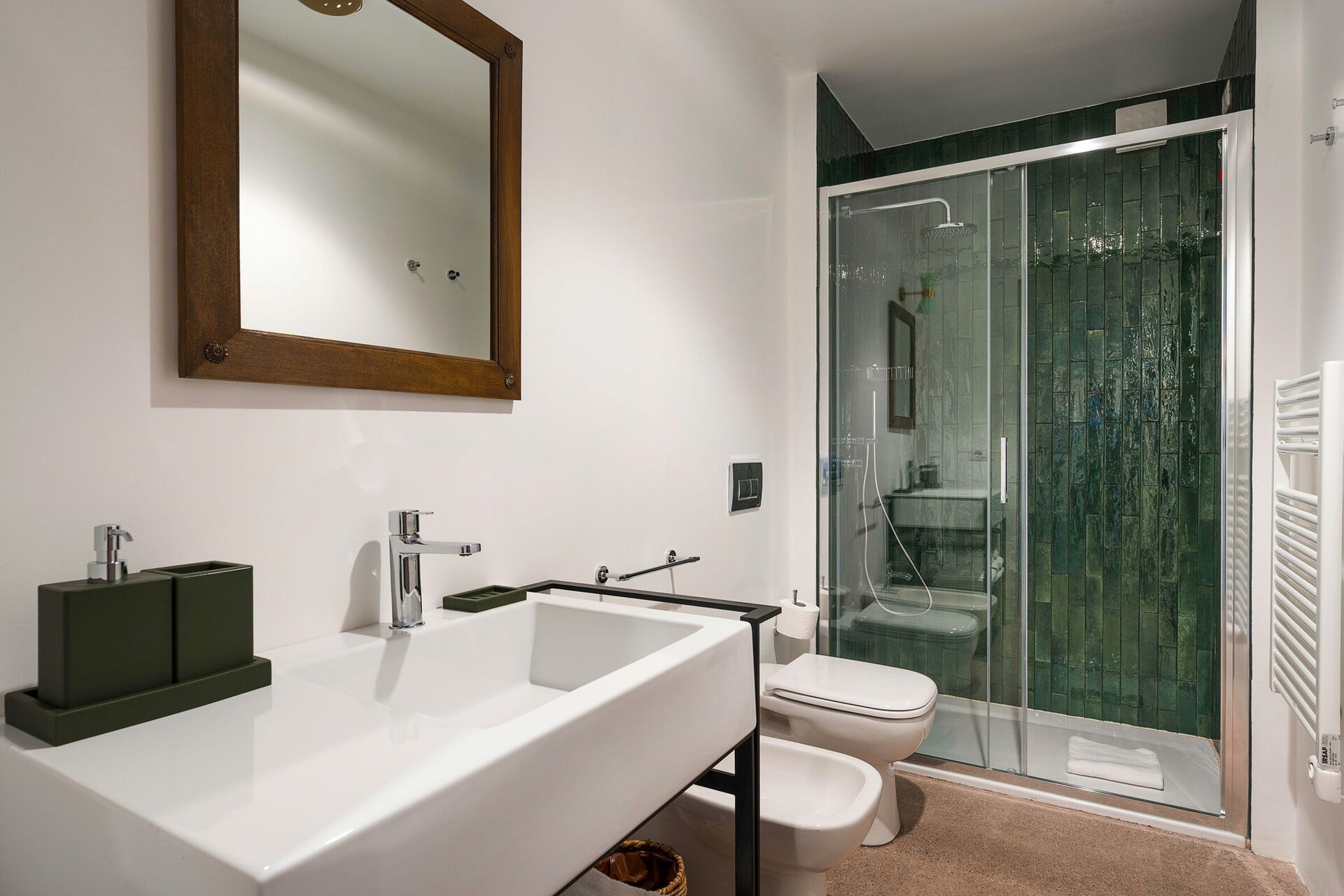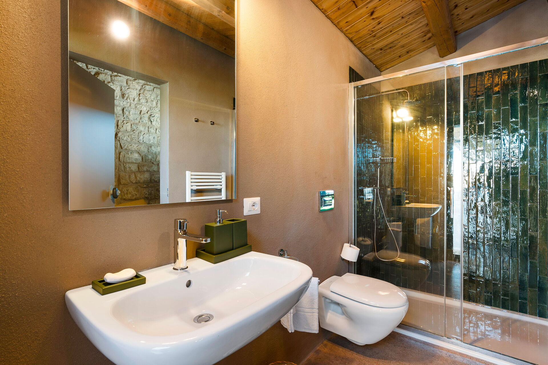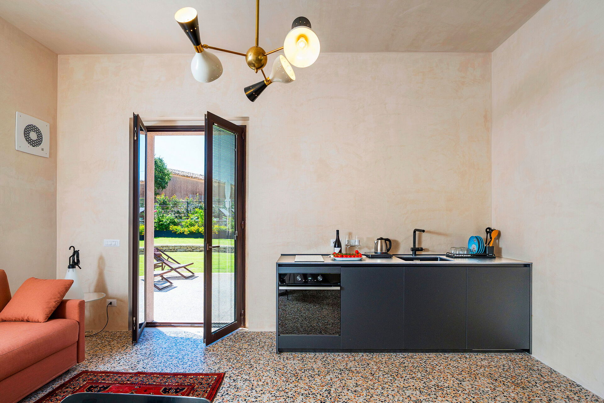 Erdgeschoss (nur von außen zugänglich und nicht mit dem Rest der Villa verbunden): Wohnzimmer (auf Anfrage mit zusätzlichem Schlafsofa) mit Kochnische (Kühlschrank, Wasserkocher, Espressomaschine), Doppelzimmer mit privatem Badezimmer mit Dusche; Doppelzimmer (Bettgröße: 160 x 200 cm) mit privatem Badezimmer mit Dusche.