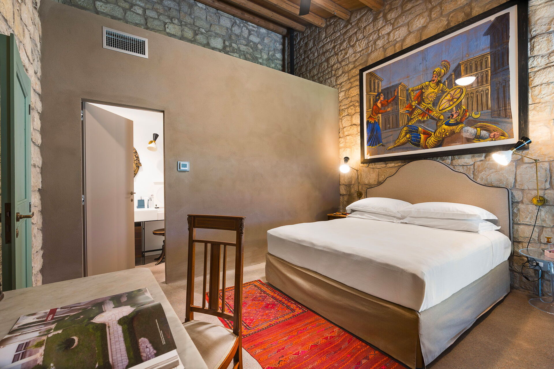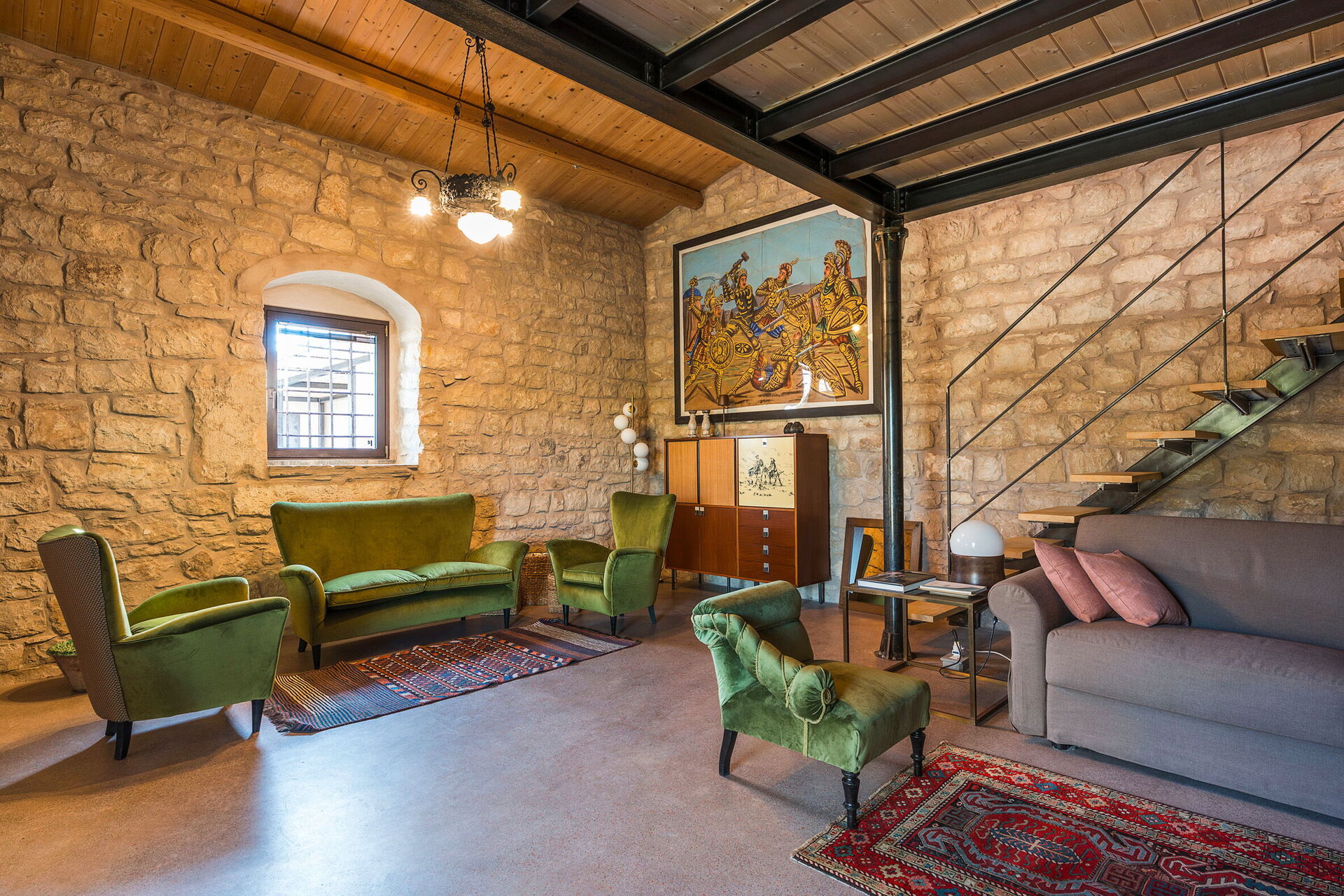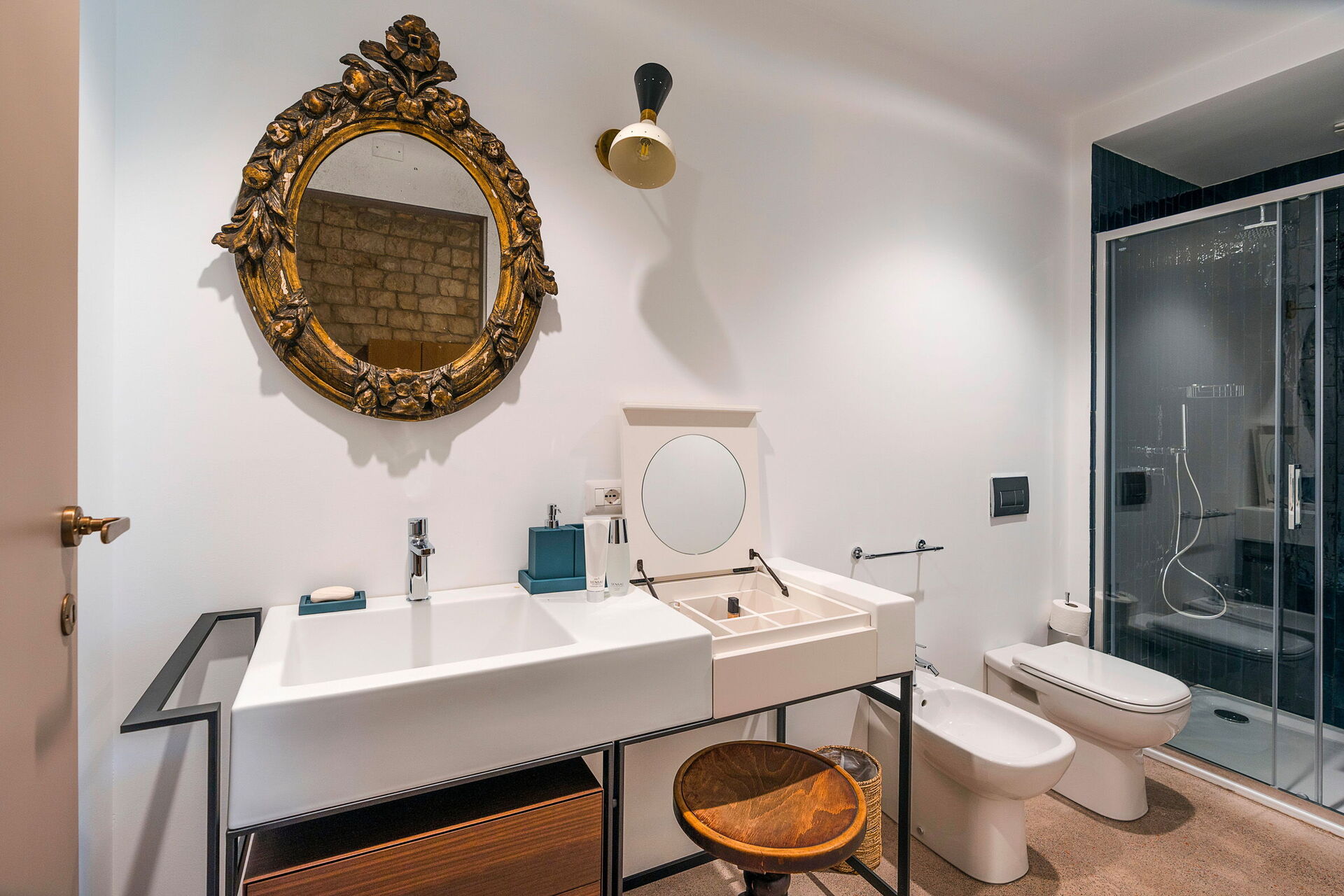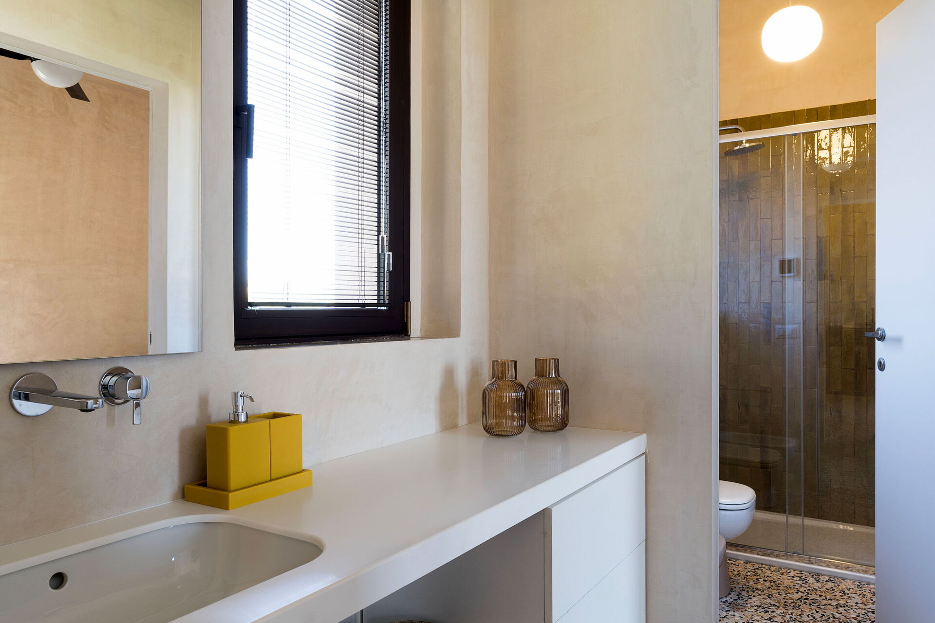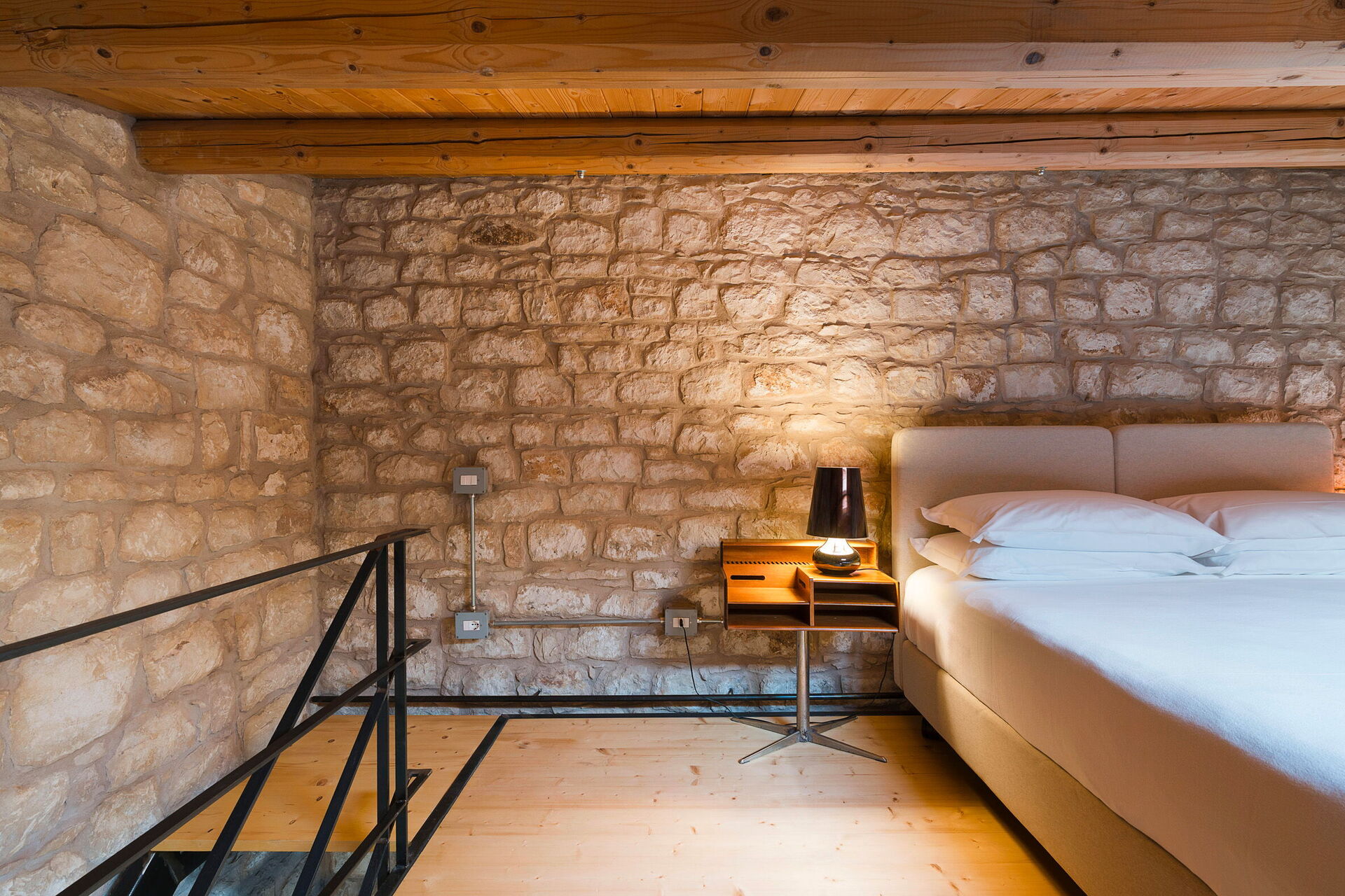 Erdgeschoss (nur von außen zugänglich und nicht mit dem Rest der Villa verbunden): Wohnzimmer (auf Anfrage mit zusätzlichem Schlafsofa) mit Kochnische (Kühlschrank, Wasserkocher, Espressomaschine), Doppelzimmer mit privatem Badezimmer mit Dusche; Doppelzimmer (Bettgröße: 160 x 200 cm) mit privatem Badezimmer mit Dusche.