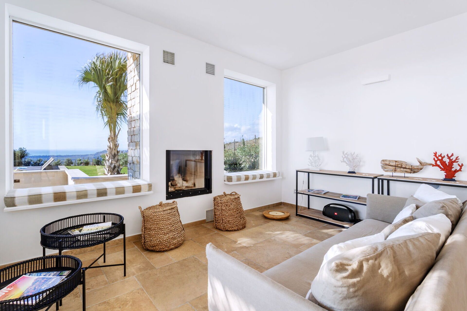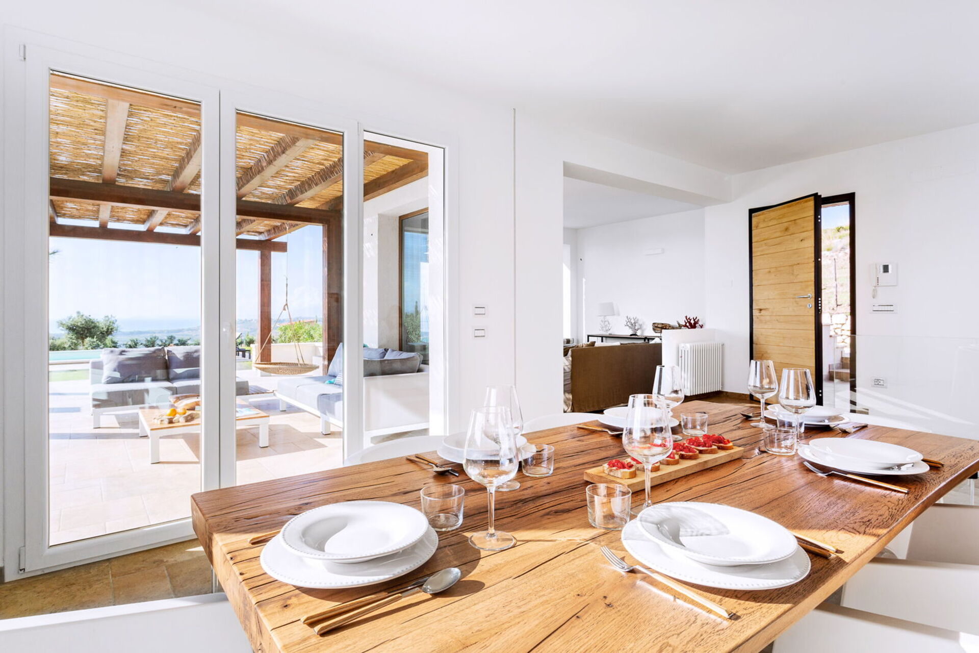 Die Helle und der Panoramablick gehören zu den Highlights dieser wundervollen Villa: Sowohl im Innen- als auch im Außenbereich genießt man einen spektakulären Blick auf das Meer und die umliegende Landschaft. Im Außenbereich laden das Panorama-Schwimmbad, die Veranda und die großen Terrassen zum Entspannen in völliger Ruhe ein.
