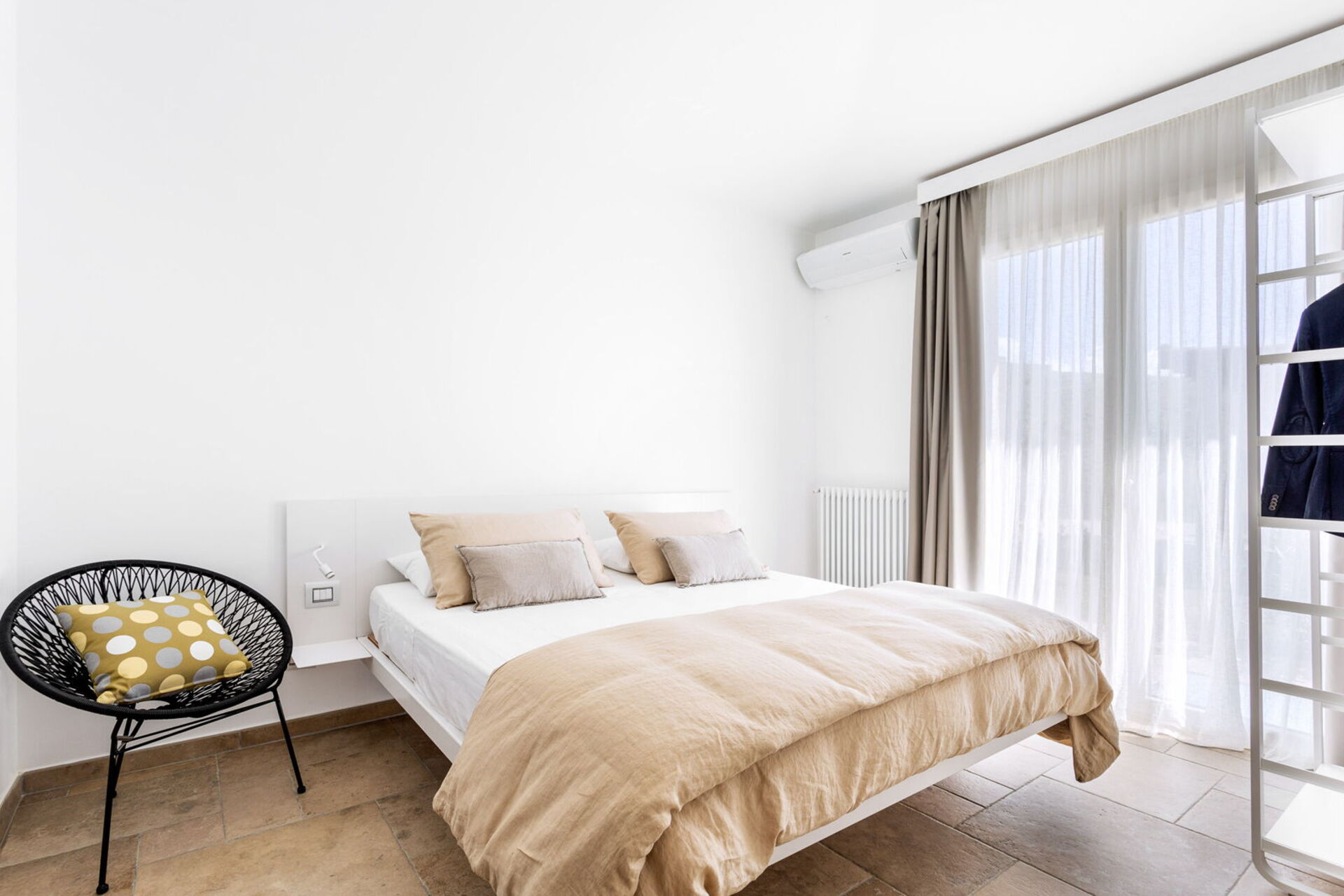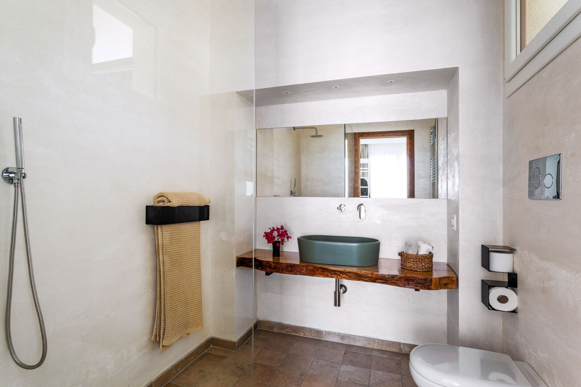 Erster Stock (nur von außen zugänglich und nicht intern mit dem Rest der Villa verbunden): Suite mit Kochnische (Herd, Gefrierschrank, Kühlschrank, amerikanische Kaffeemaschine), Doppelbett (Klimaanlage) und Badezimmer mit Dusche.