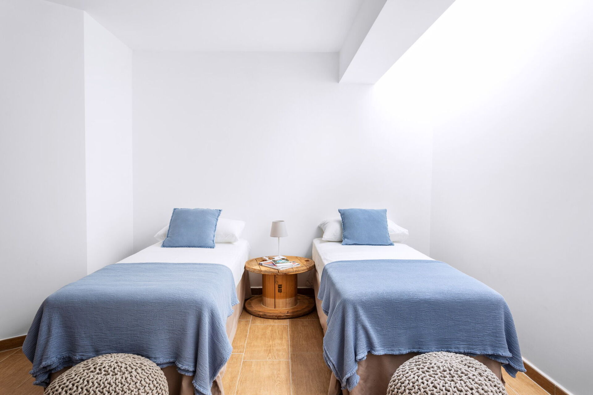 Untergeschoss: kleines Wohnzimmer (Sat-TV), kleiner Bereich mit Fitnessgeräten, Doppelzimmer mit privatem Bad mit Dusche, Zweibettzimmer (auf Anfrage kombinierbar); Badezimmer mit Dusche.