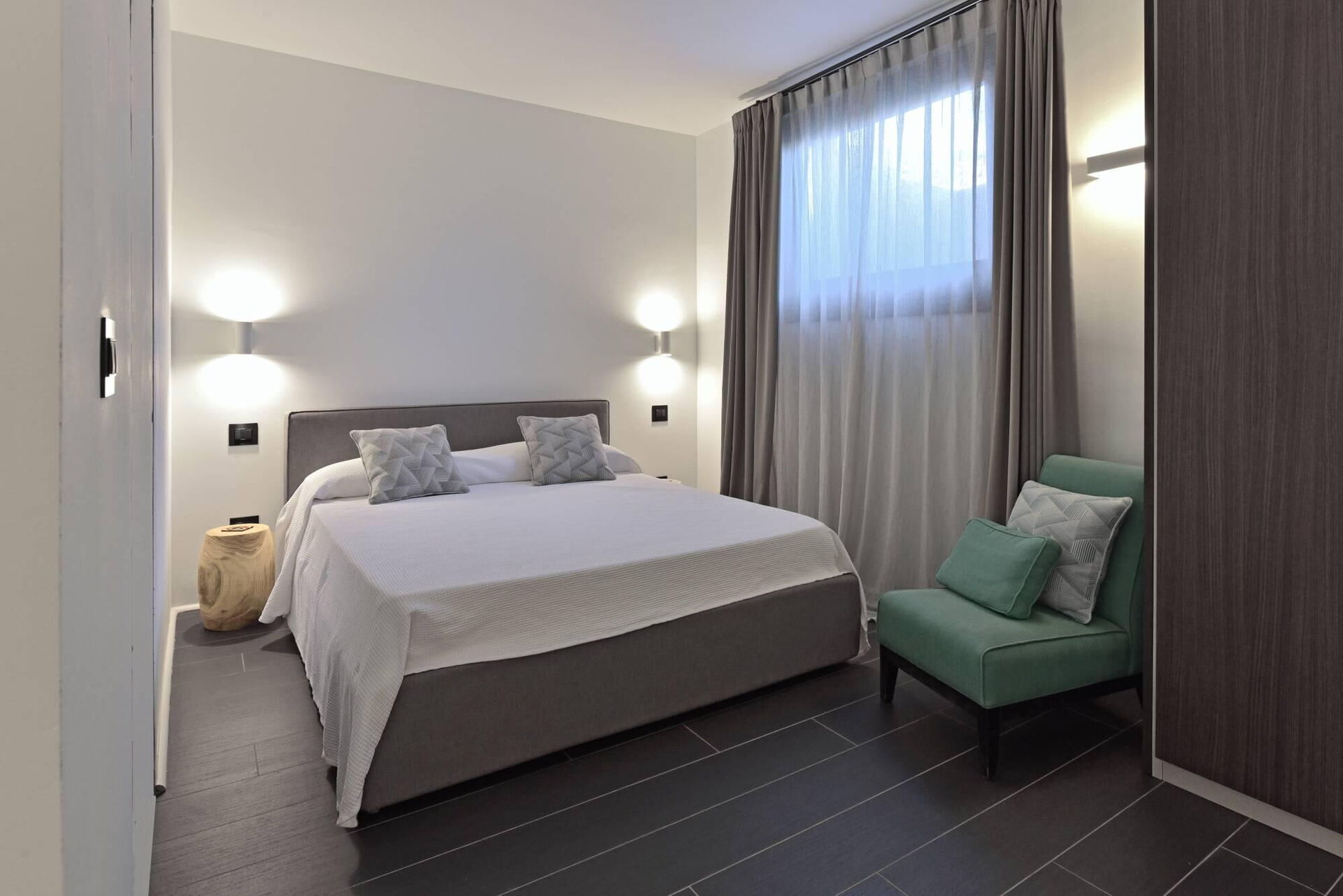 Erhöhtes Erdgeschoss (nur von außen zugänglich und nicht intern mit dem Rest der Villa verbunden): Doppelzimmer (Klimaanlage) mit privatem Bad mit Dusche.