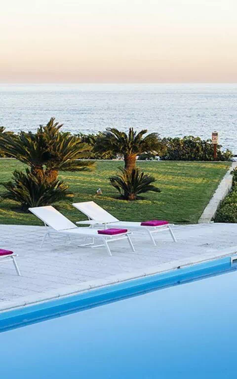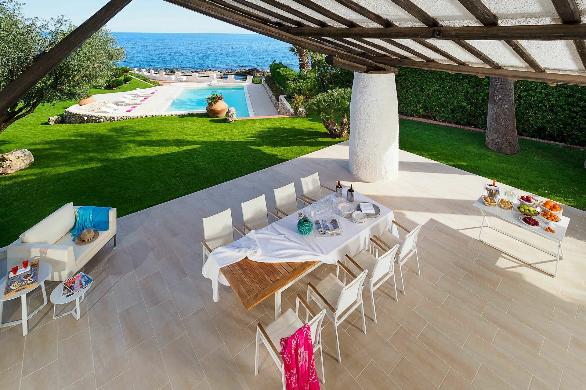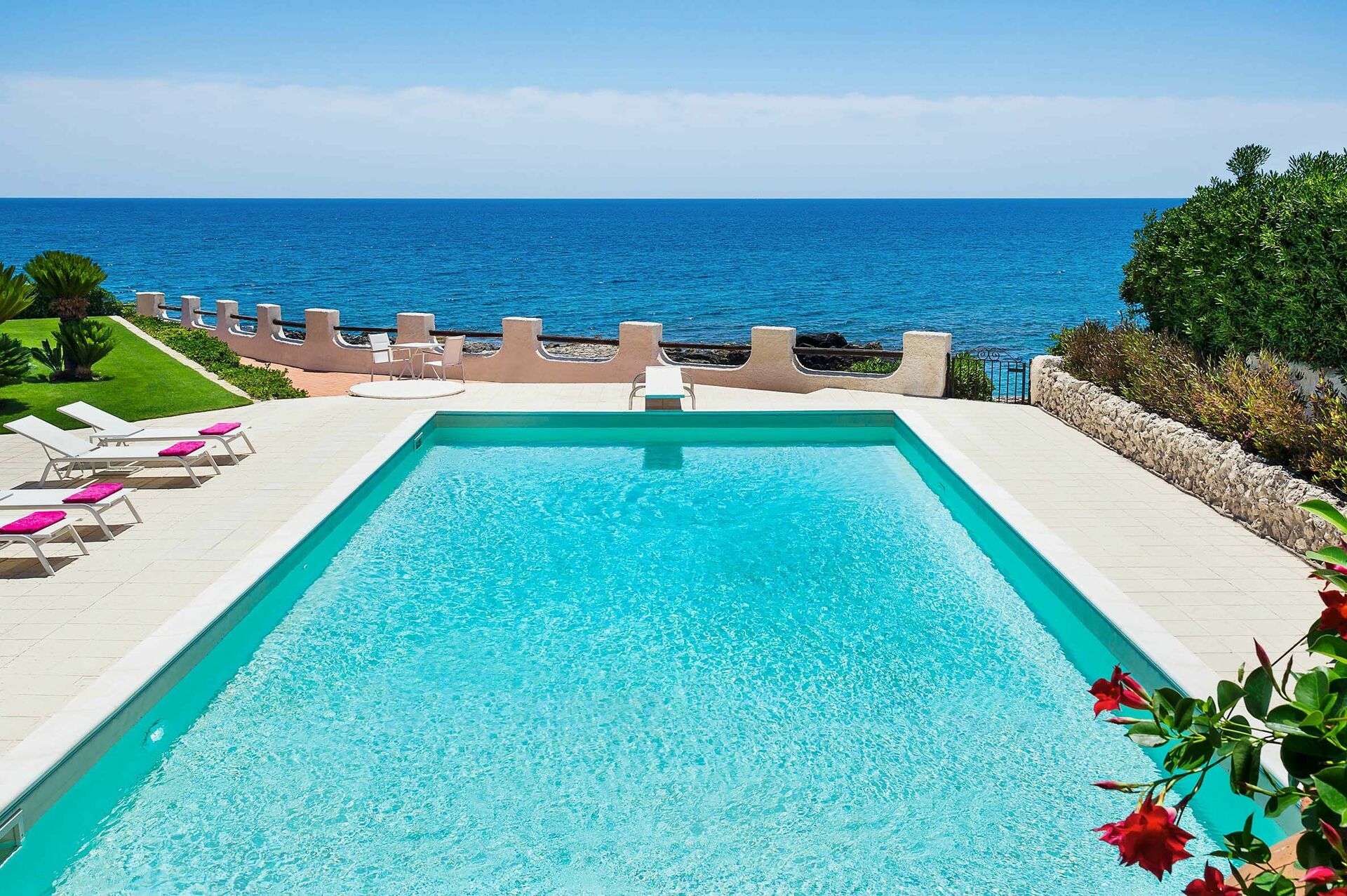 Blu Moon ist eine exklusive Ferien-Villa mit privatem Schwimmbad in wunderschöner Lage direkt am Meer in Fontane Bianche, ein berühmter Badeort südlich von Siracusa in Sizilien.