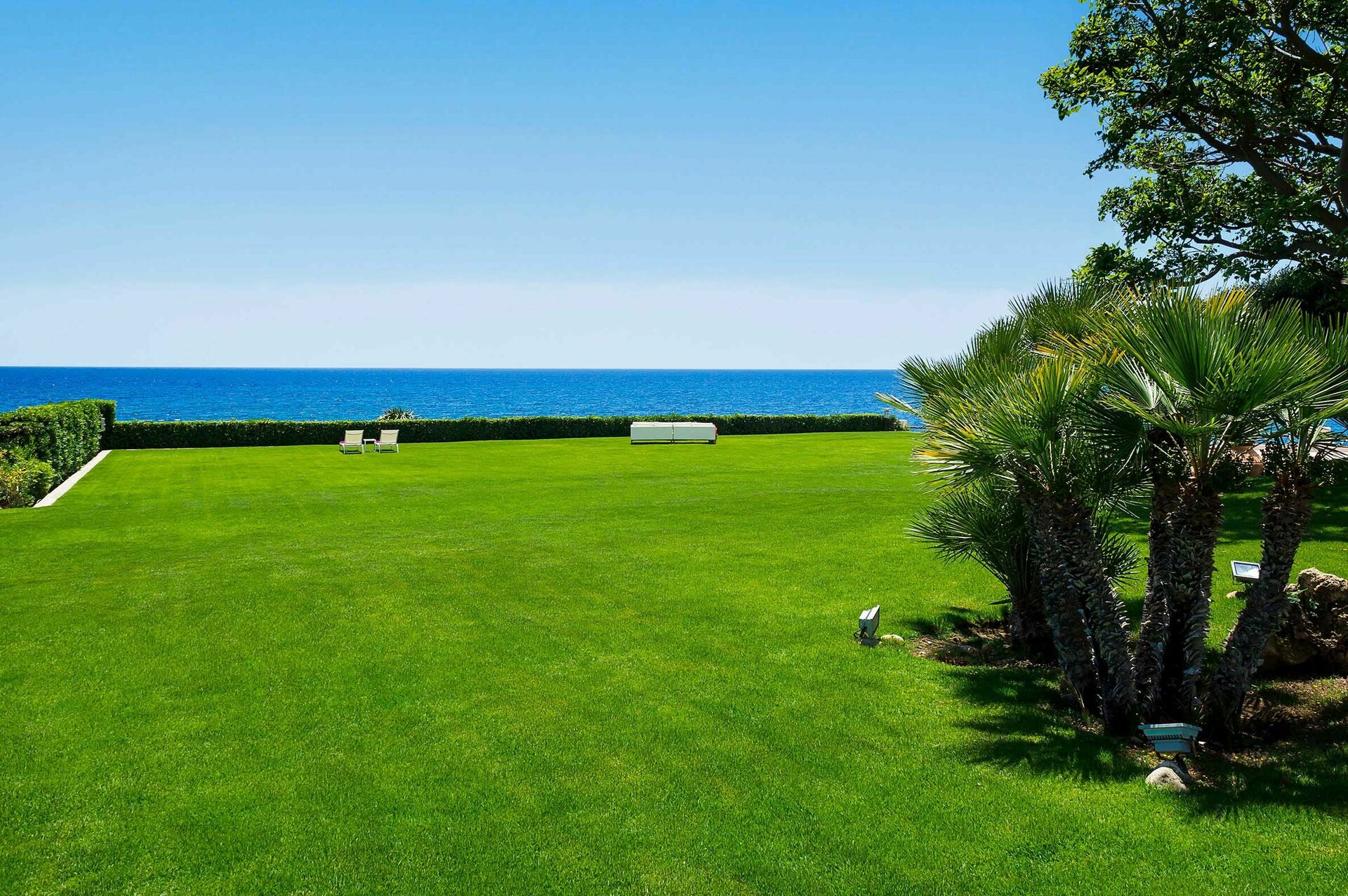 Die Villa ist umgeben von einem gepflegten Garten mit englischem Rasen und schönem Schwimmbad mit Sonnenterrassen, ausgestatteten Aussenplätzen und privatem Zugang zum Meer.