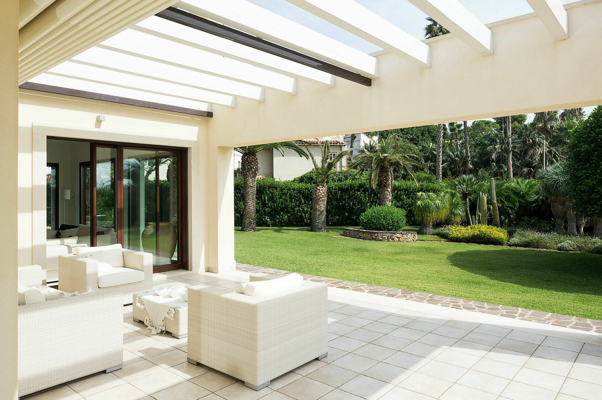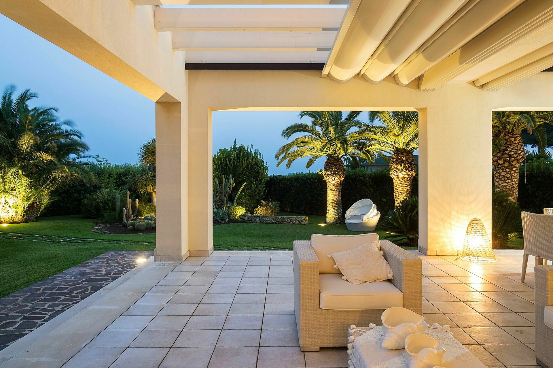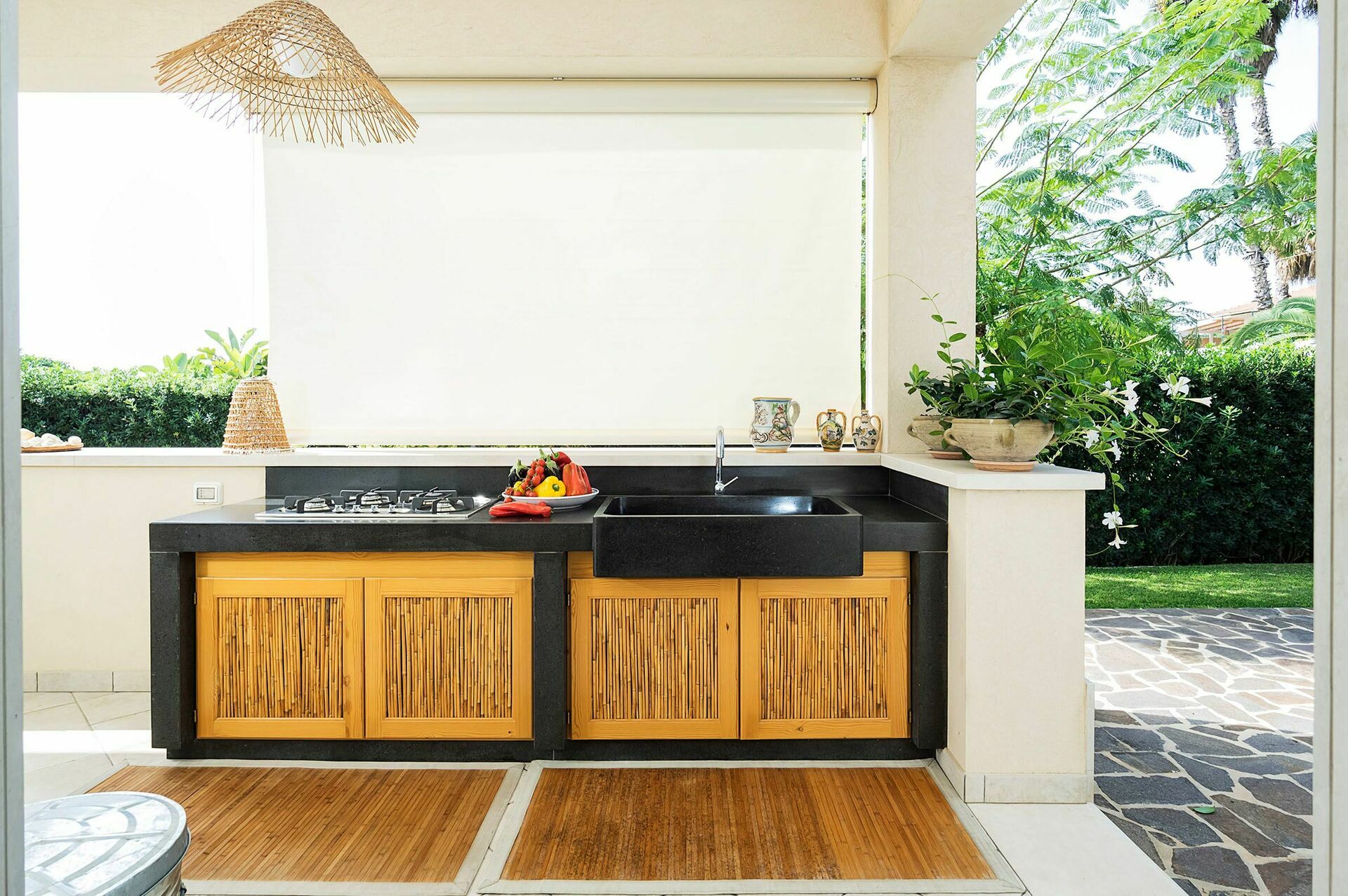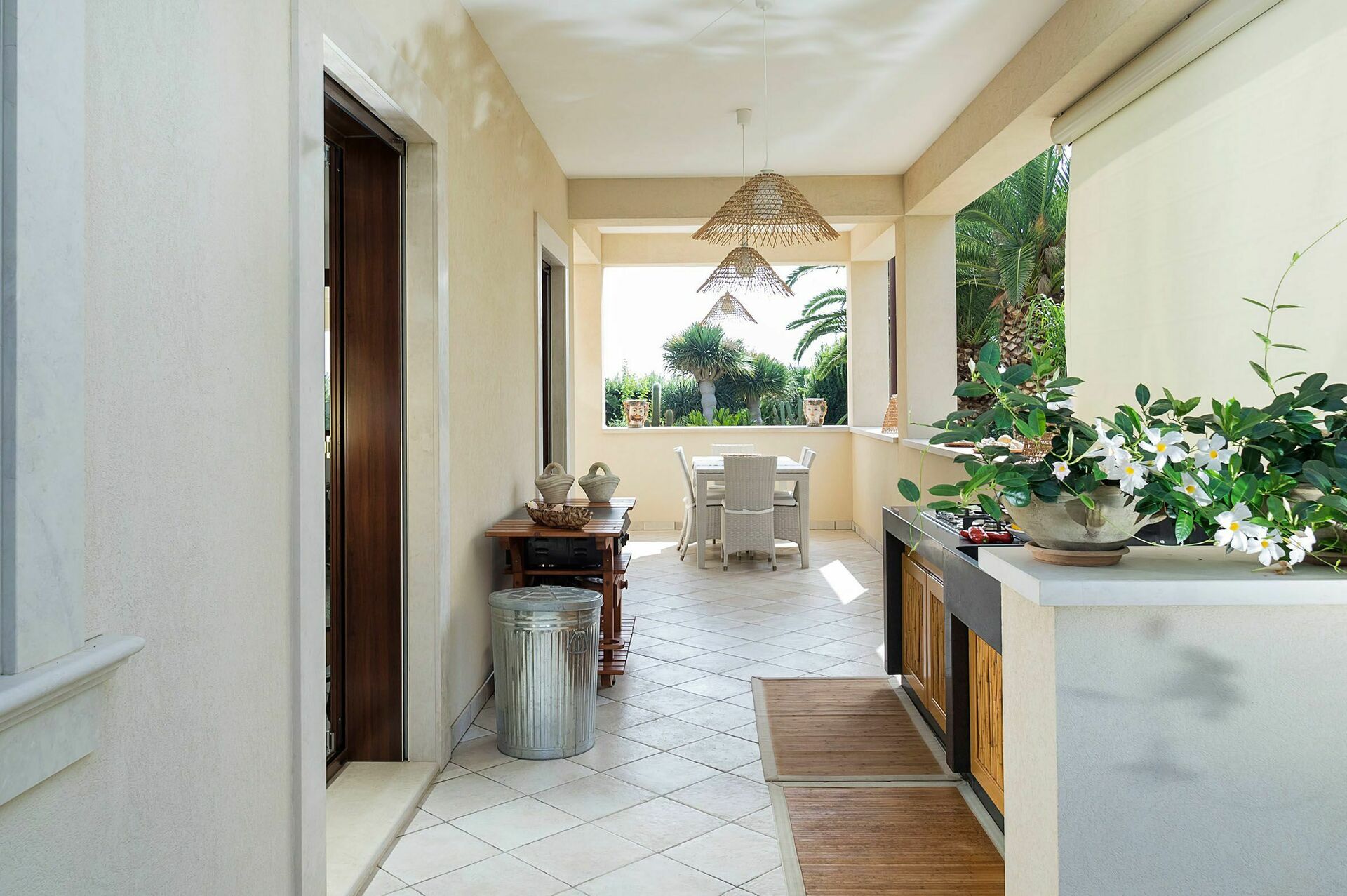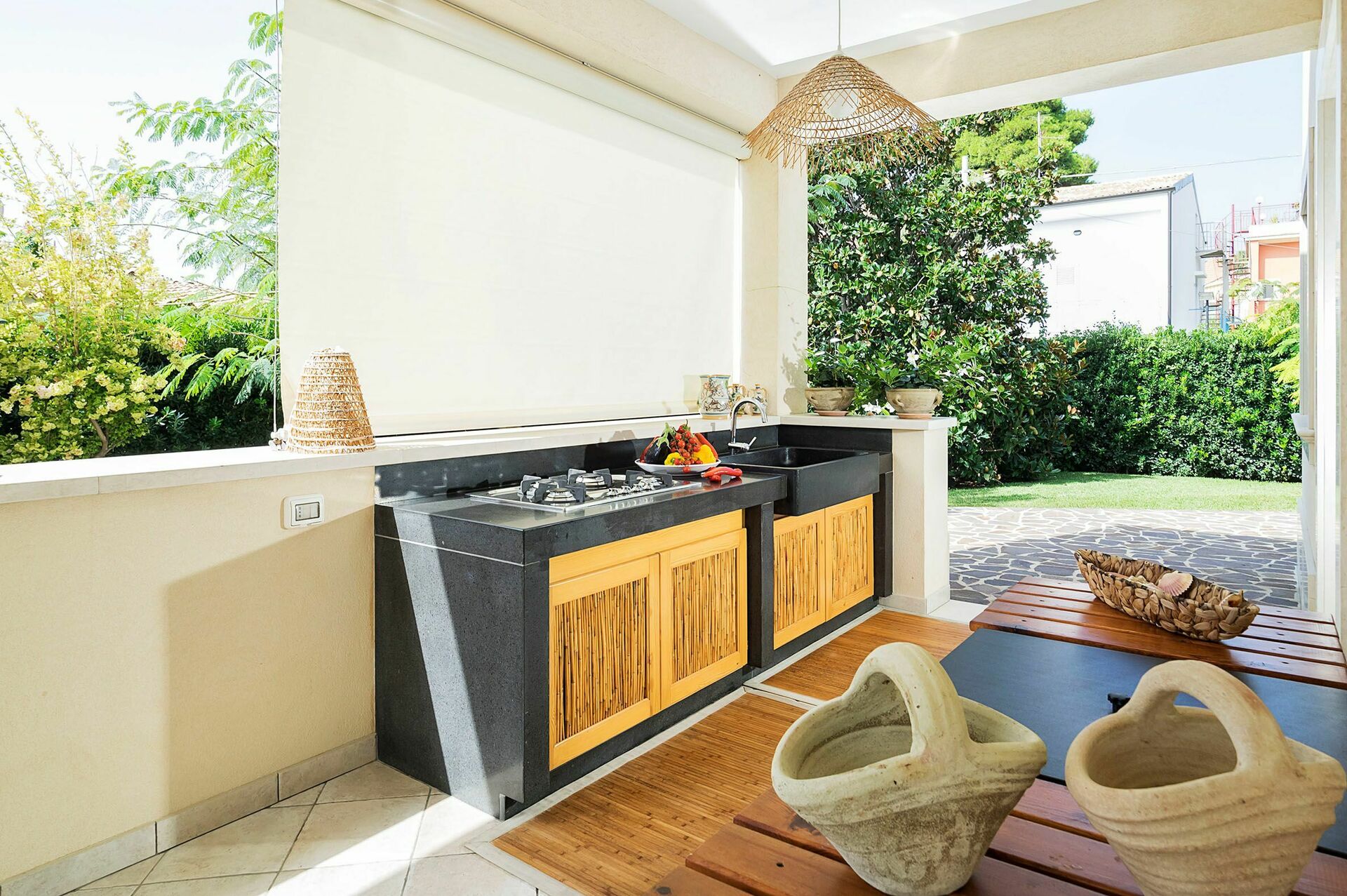 Draußen: Veranda, Terrassen, Garten, Essbereich, Außenküche.