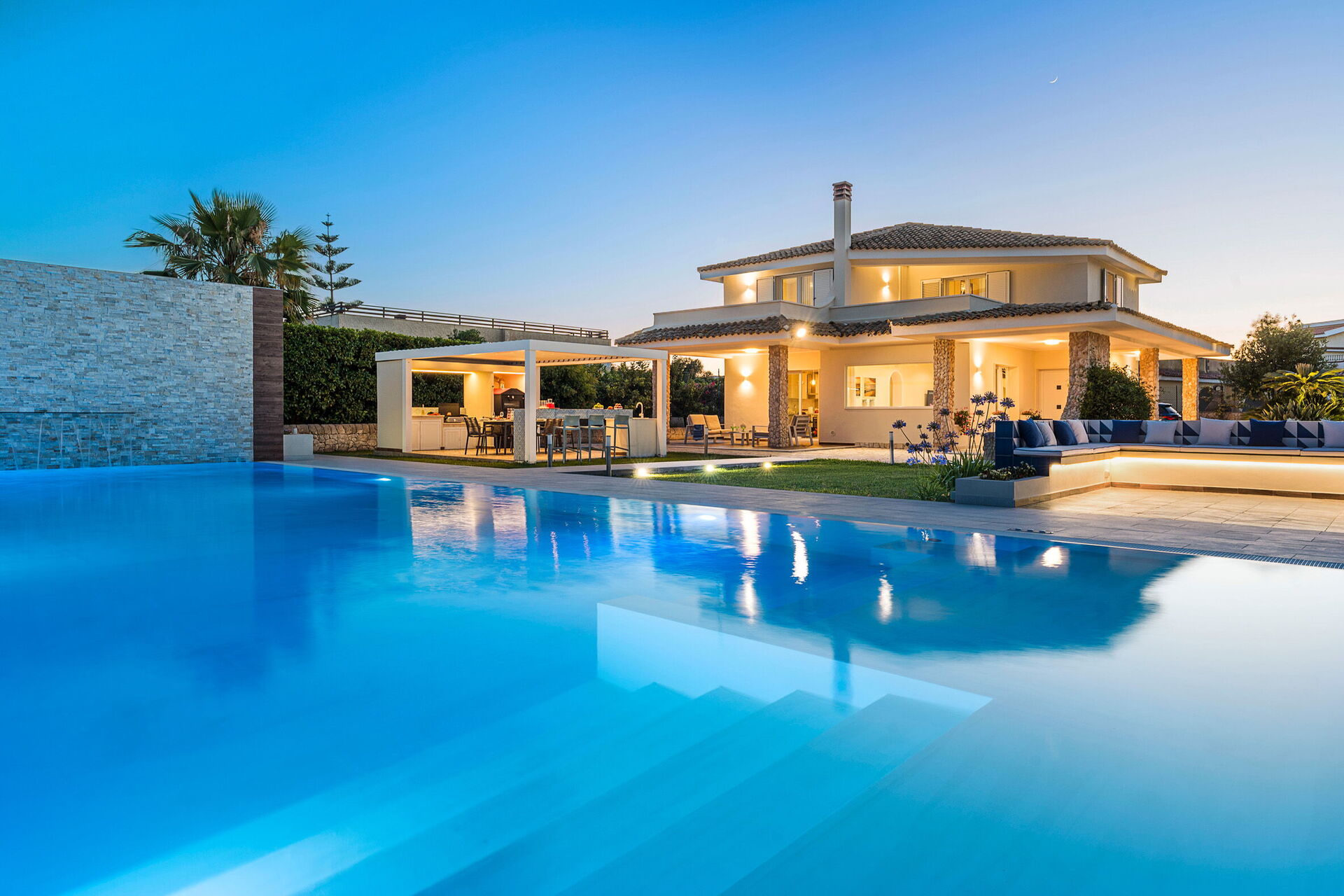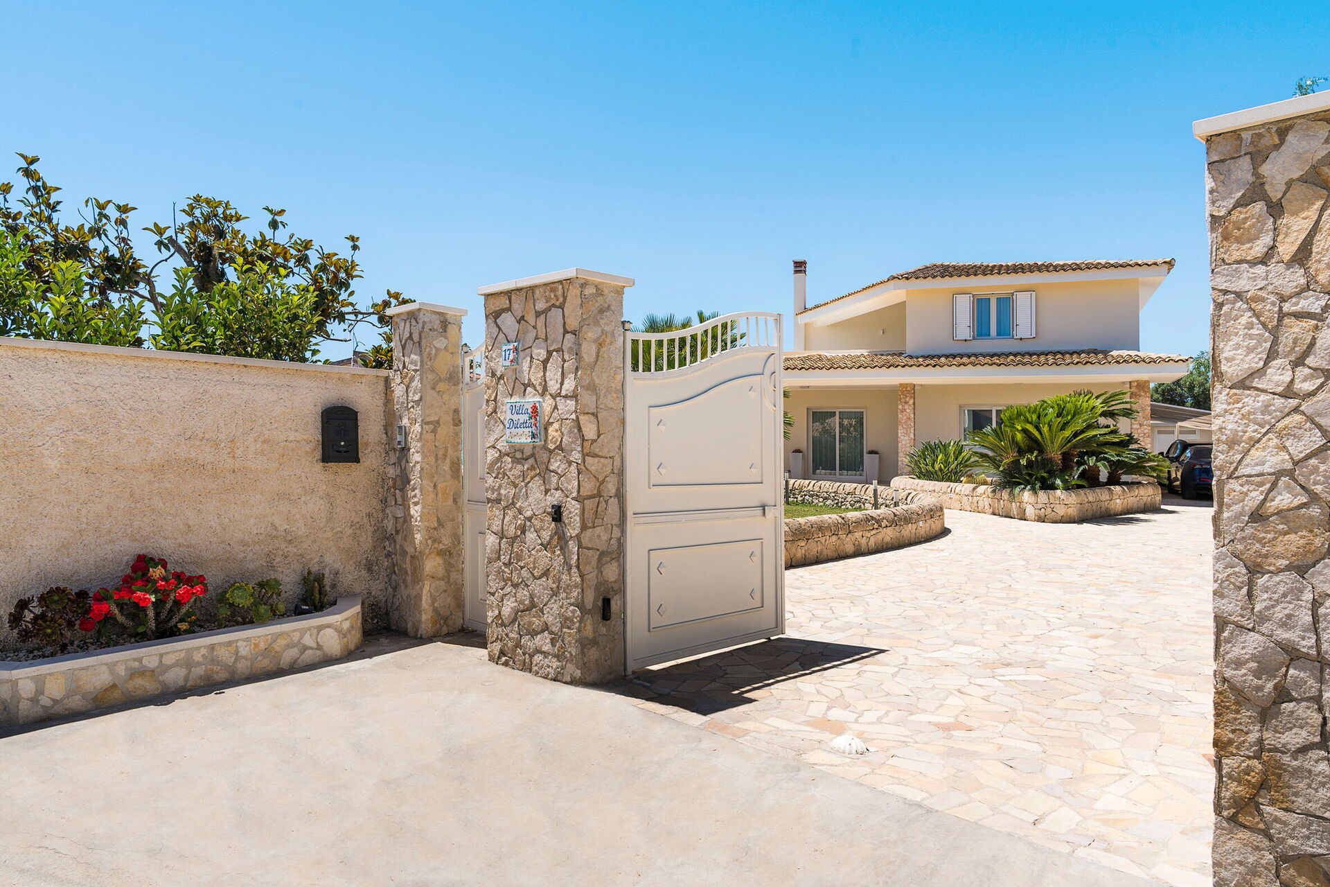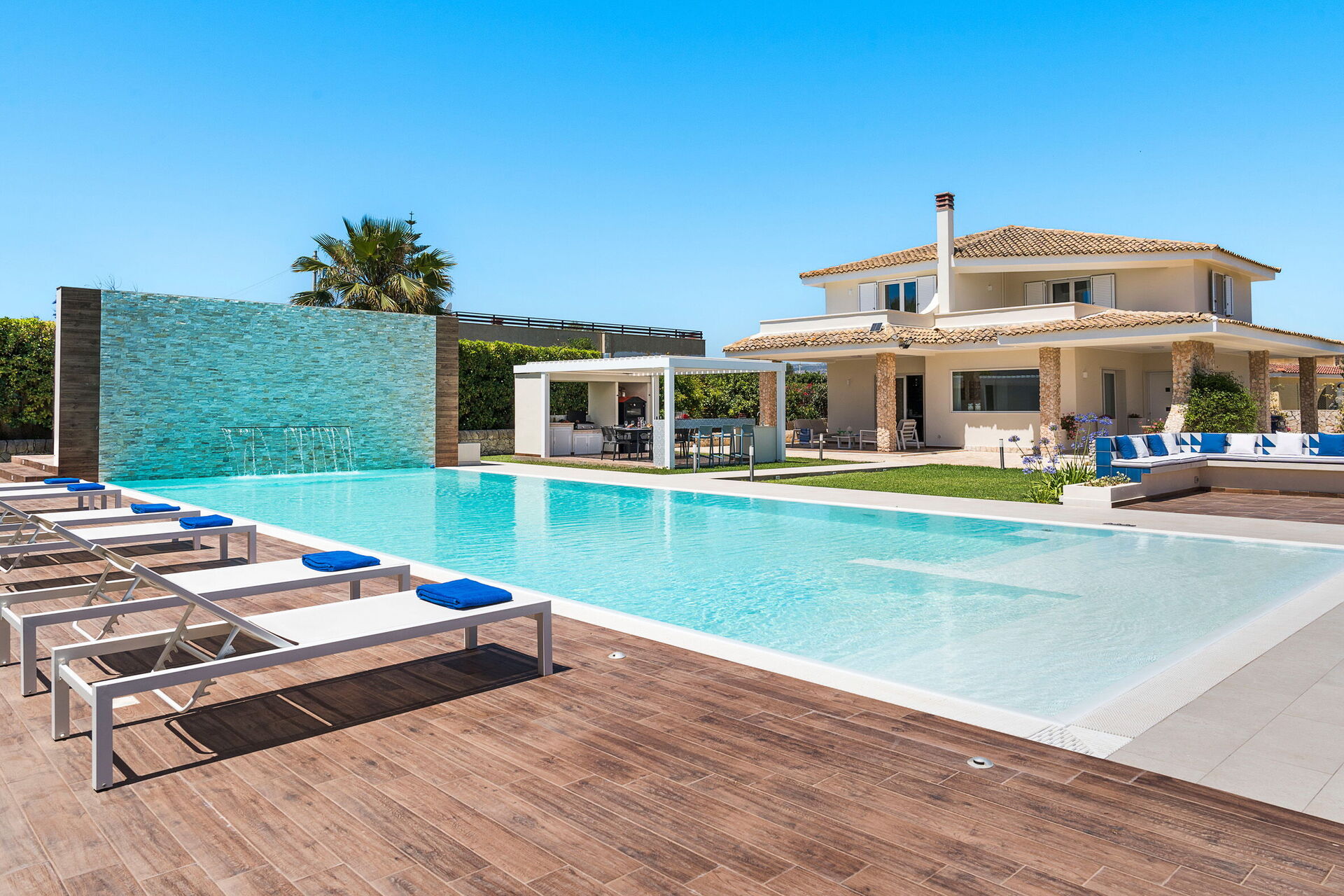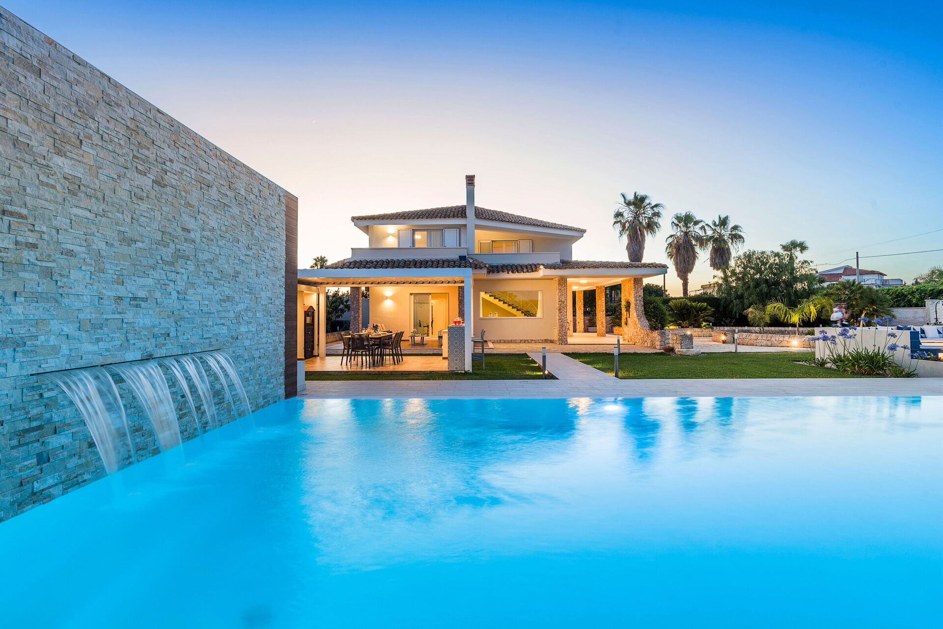 Villa Dilecta ist eine wunderschöne Villa mit privatem Schwimmbad zur Miete für einen Urlaub in Fontane Bianche, einem der beliebtesten Badeorte an der Ostküste Siziliens.
