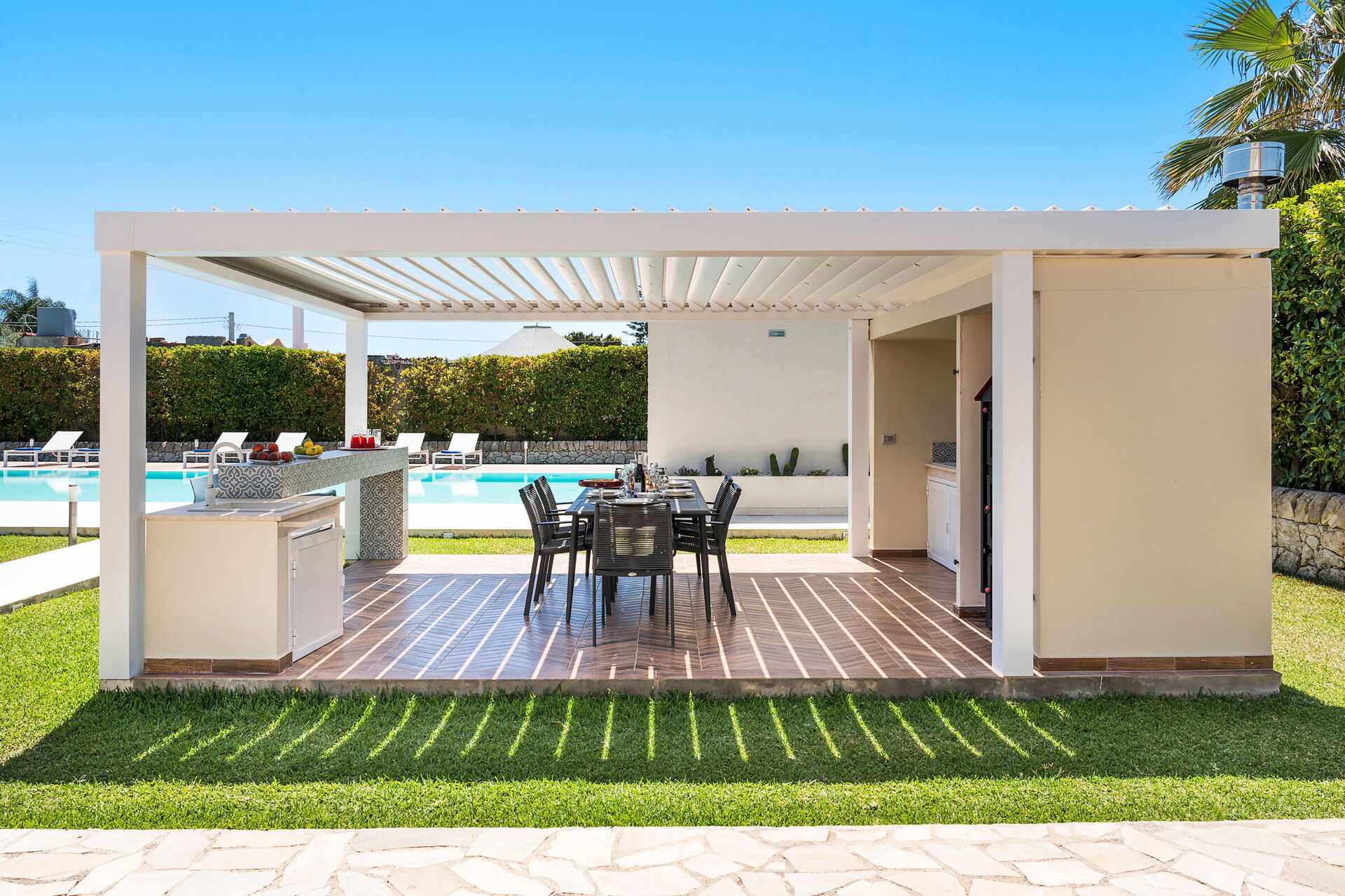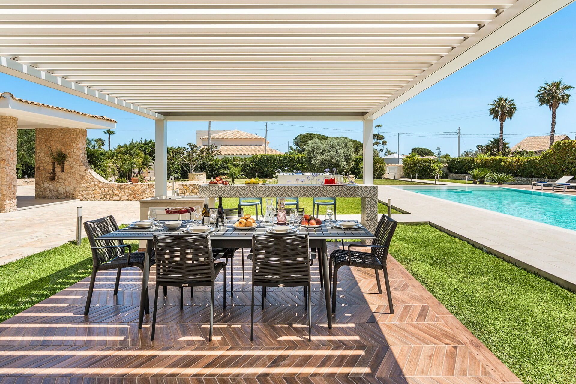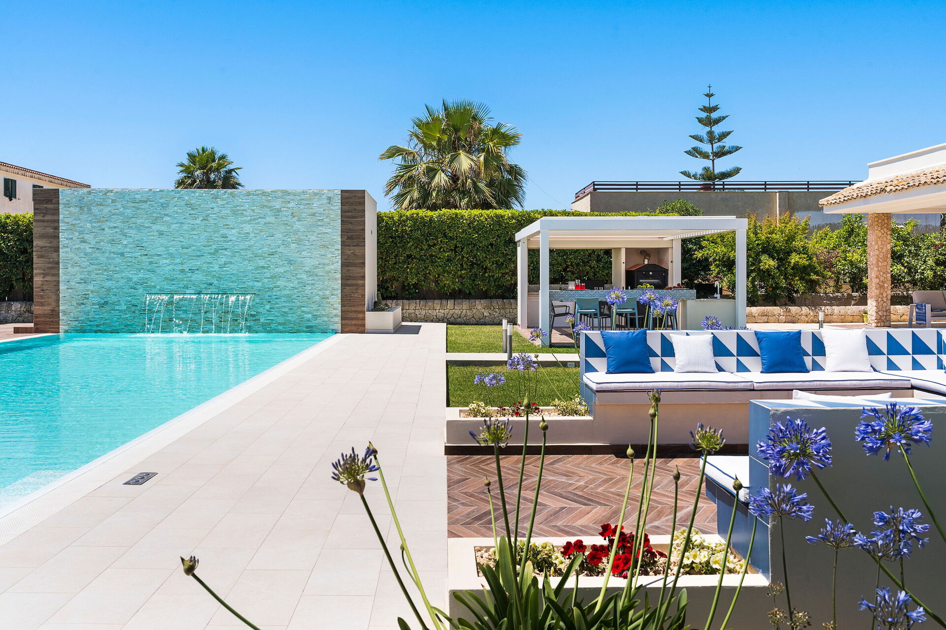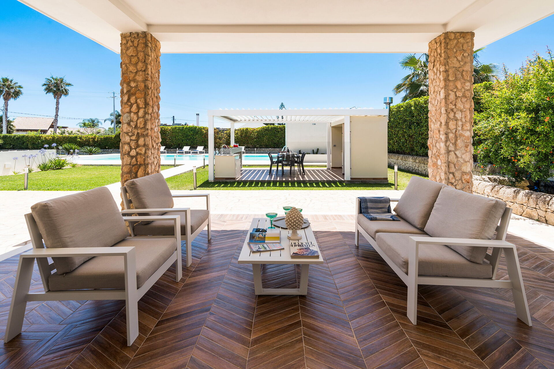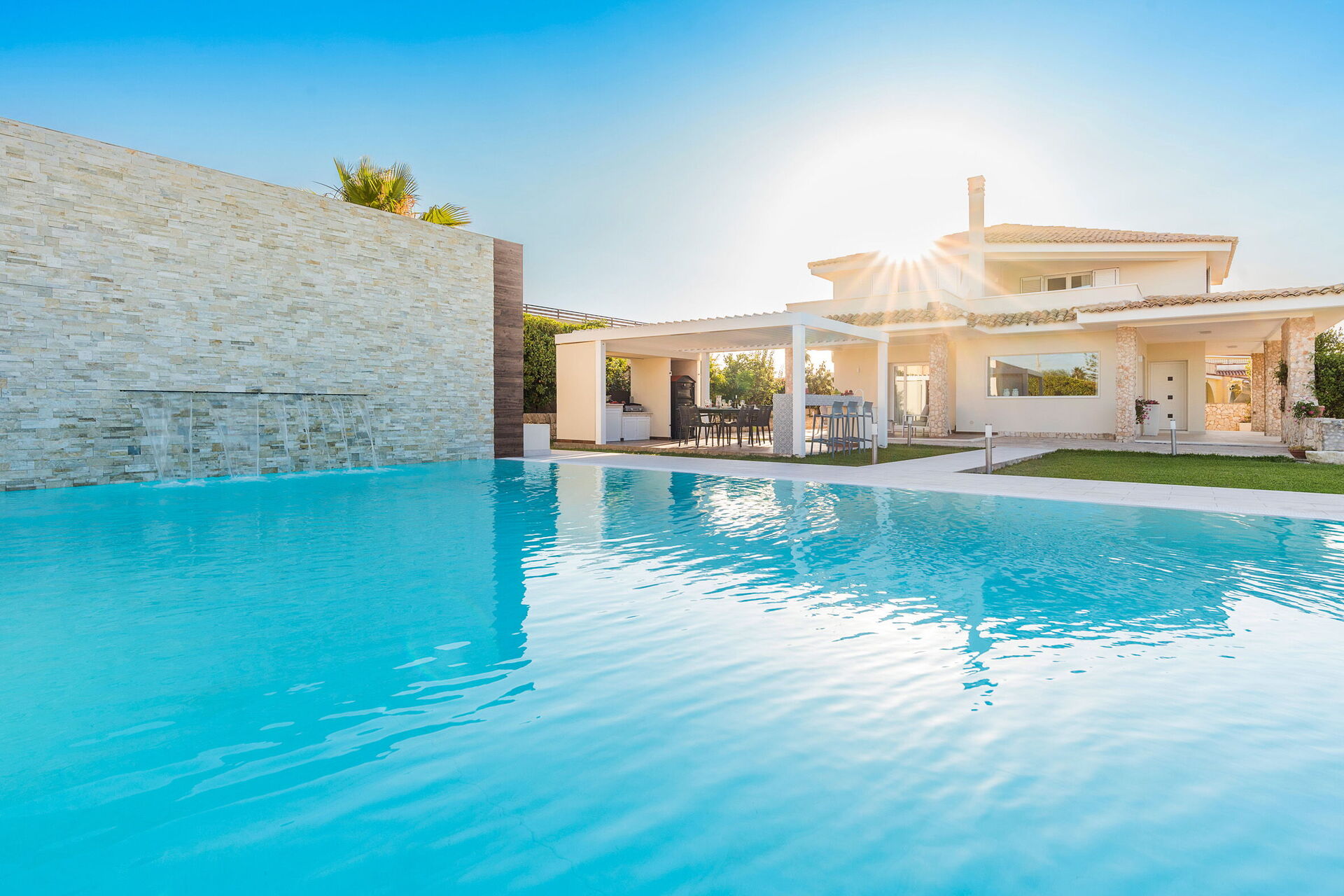 Villa Dilecta ist eine wunderschöne Villa mit privatem Schwimmbad zur Miete für einen Urlaub in Fontane Bianche, einem der beliebtesten Badeorte an der Ostküste Siziliens.