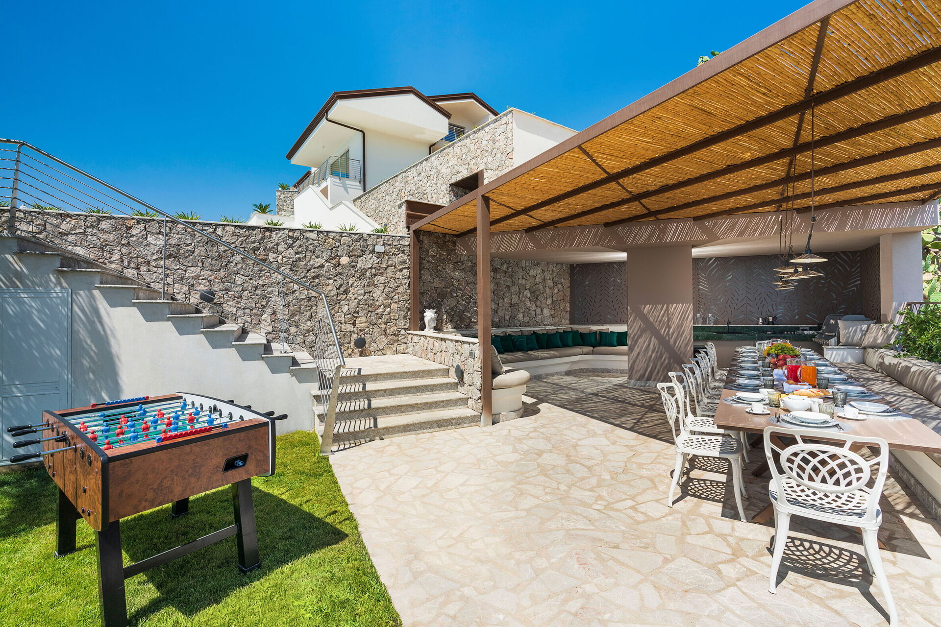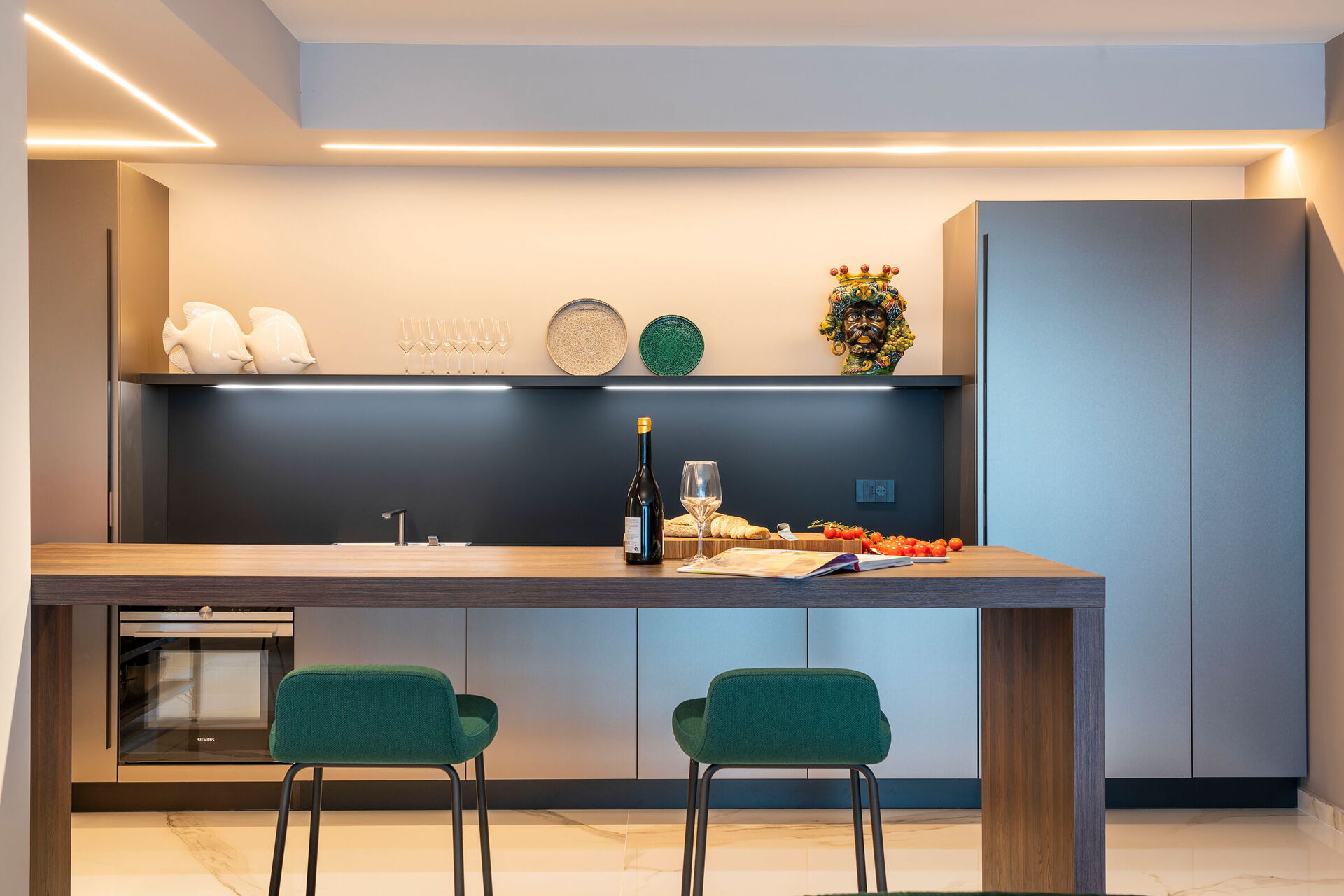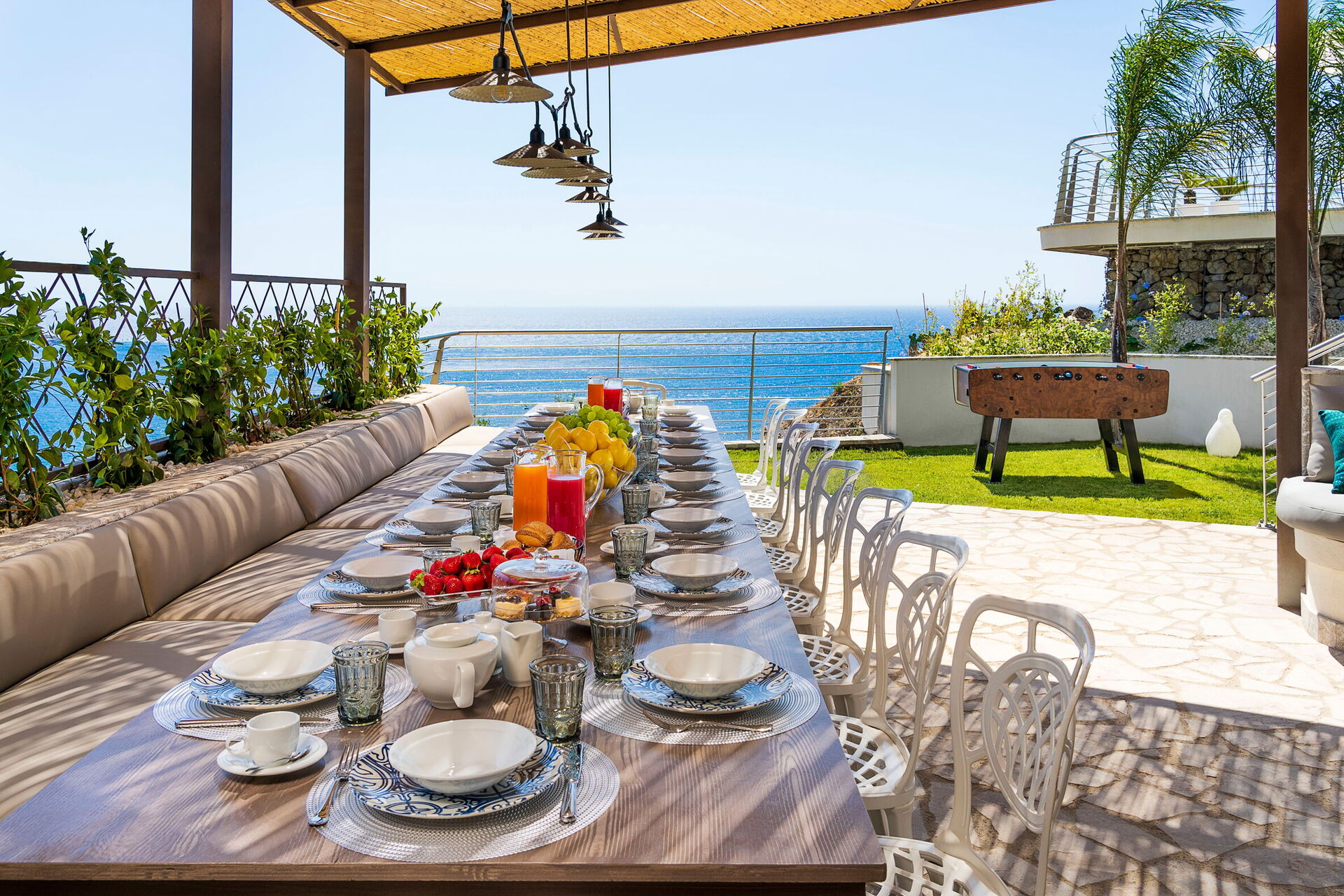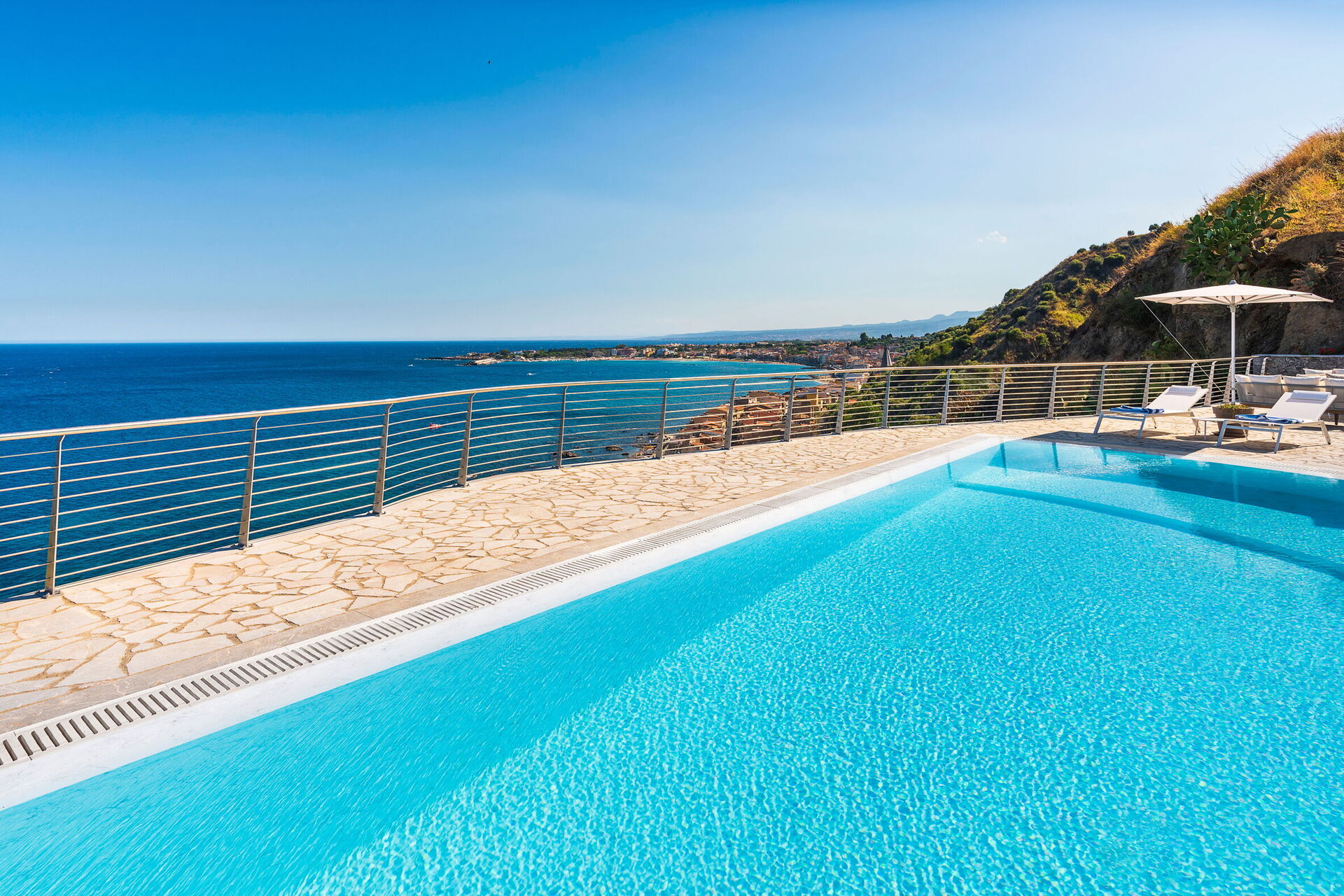 Die Außenbereiche in Panoramalage bieten zahlreiche Gemeinschaftsbereiche und ermöglichen den Gästen einen angenehmen Aufenthalt mit der Familie oder Freunden. Man kann sich auf der Veranda entspannen, die für Mahlzeiten im Freien ausgestattet ist, oder im großen Schwimmbadbereich mit Meerblick, der ideal ist, um unvergessliche Momente unter der Sonne Siziliens zu verbringen .