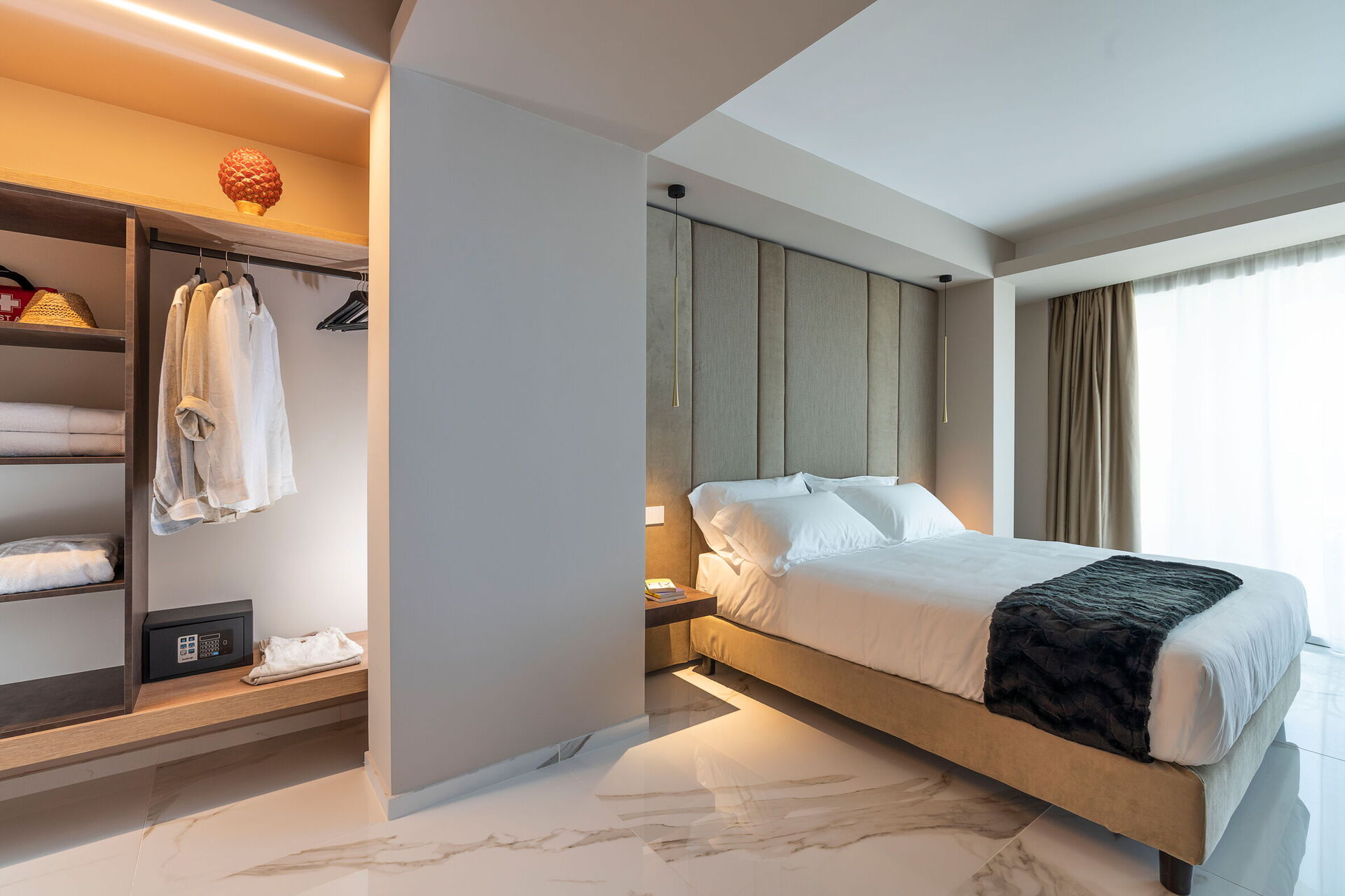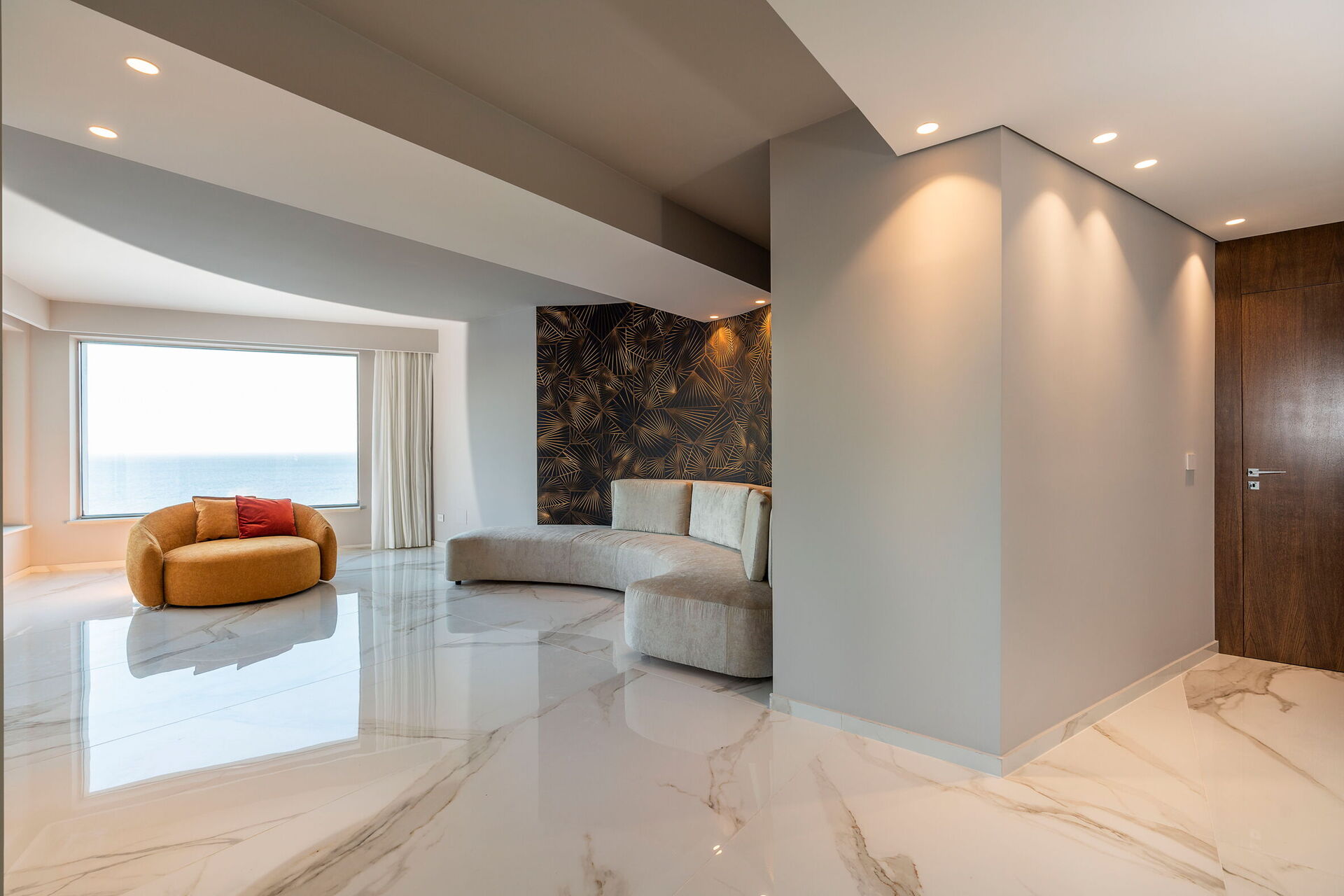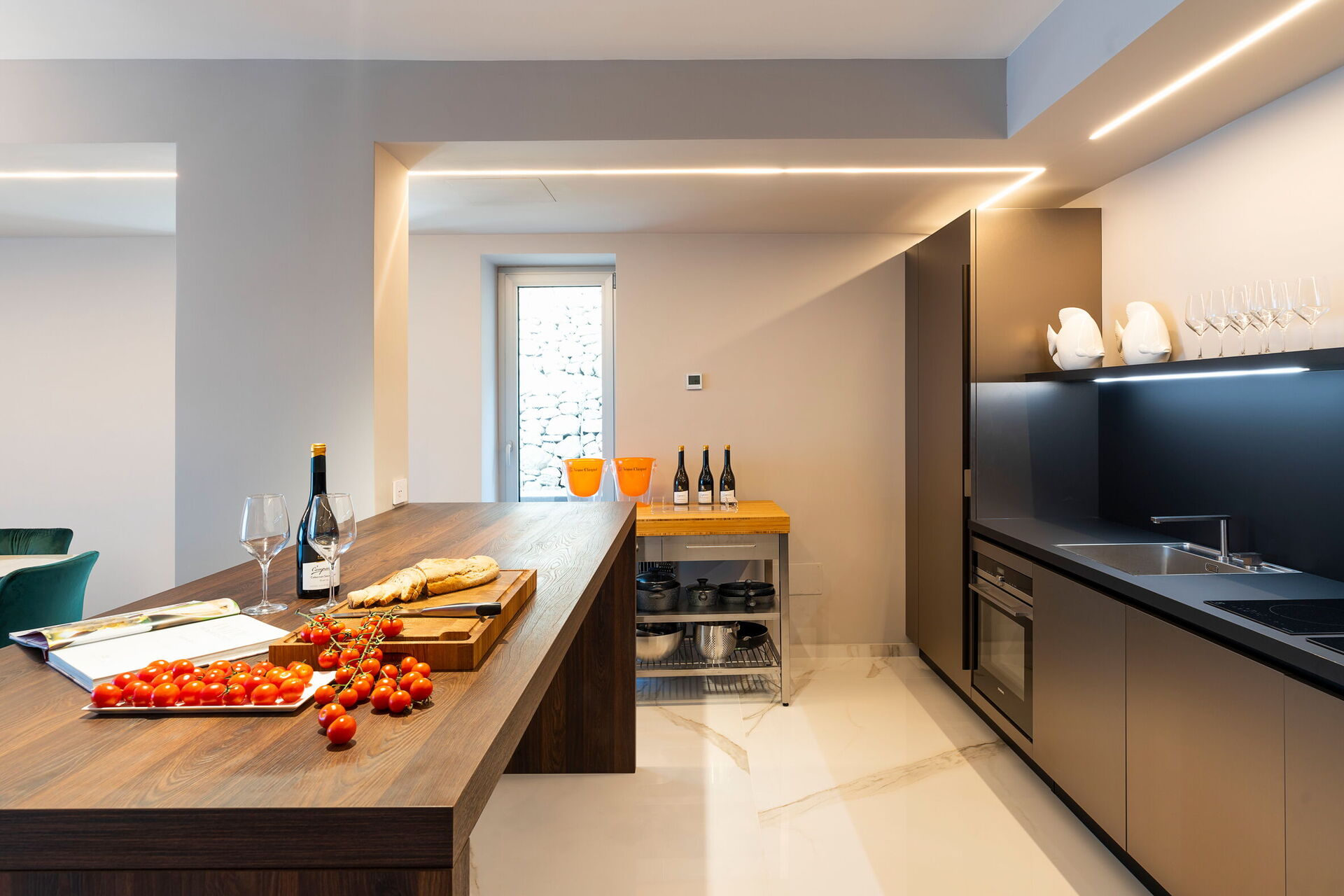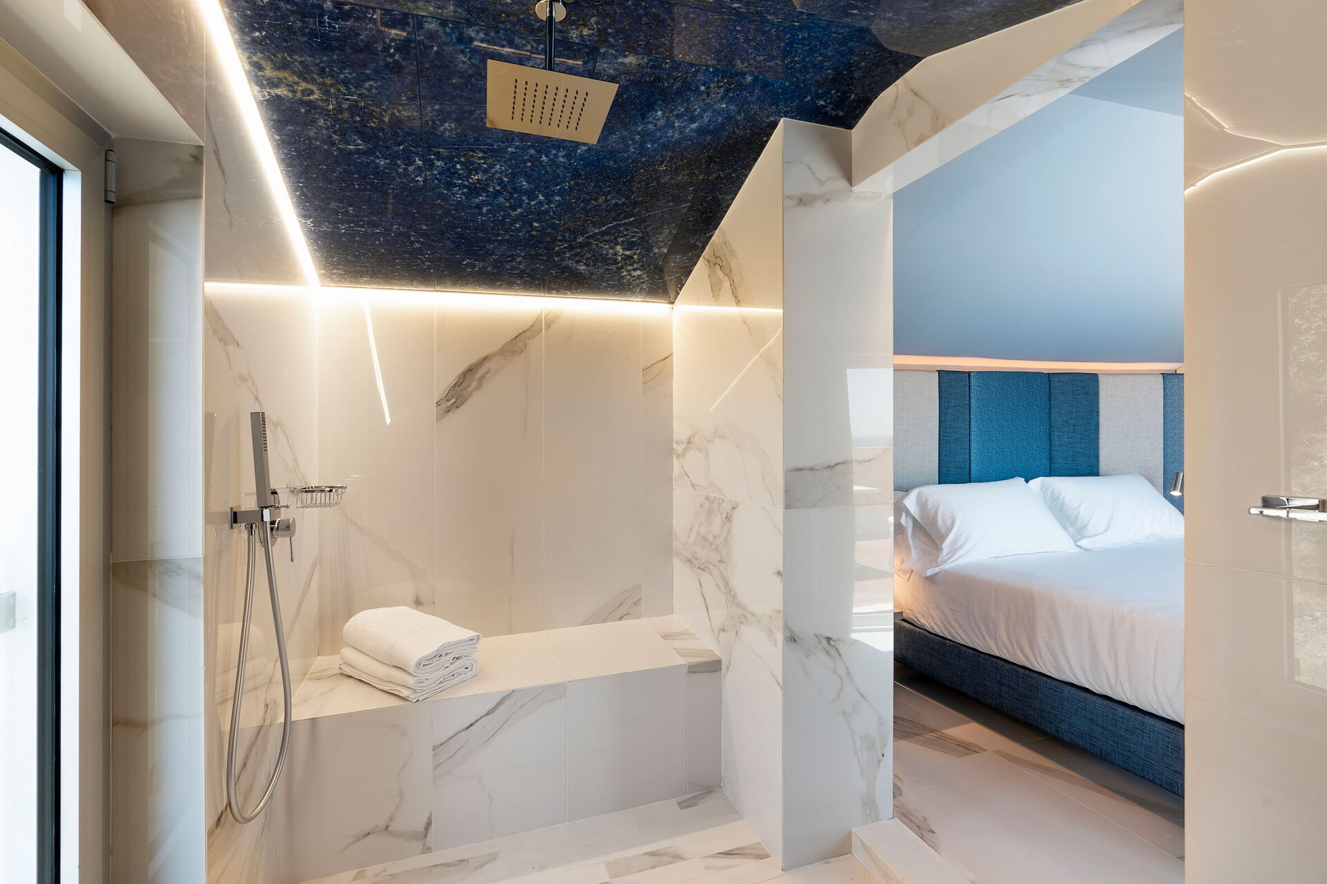 Die Villa erstreckt sich über vier Etagen: Die komfortablen Innenräume sind im modernen Stil eingerichtet und mit allem Komfort ausgestattet (Aufzug, Klimaanlage, W-Lan, TV). Die Villa verfügt über 10 Schlafzimmer mit jeweils privatem Bad und große Gemeinschaftsbereiche, darunter vier Wohnbereiche mit Küche, Esszimmer und Wohnzimmer sowie einen Wellnessbereich mit Fitnessraum und Sauna. Diese Villa bietet bequem Platz für bis zu 20 Personen.