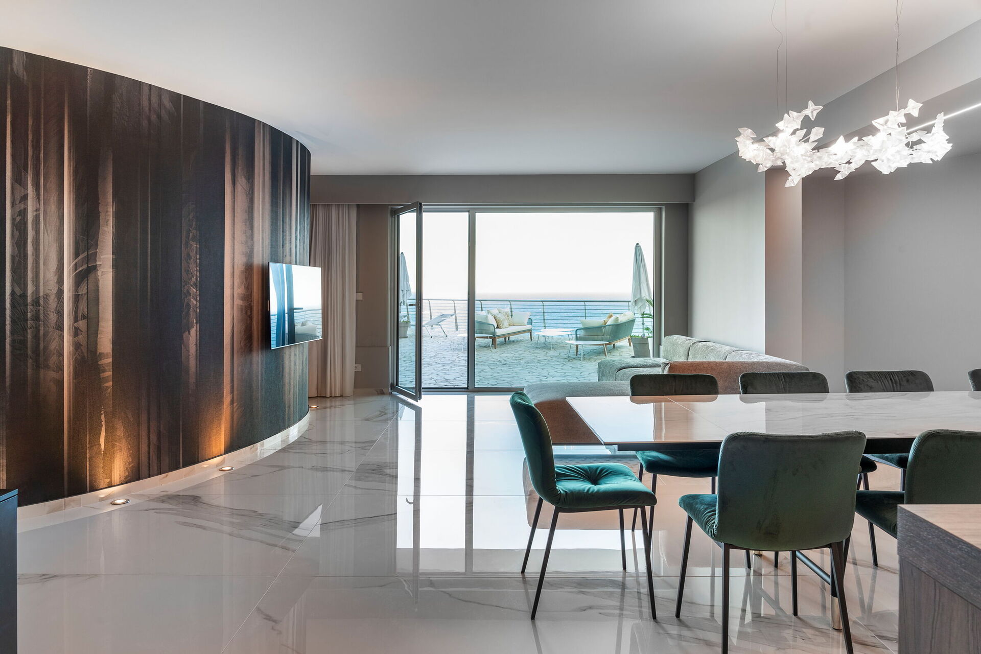 Diese prestigeträchtige und moderne Luxus- Villa genießt eine malerische Panoramalage mit einem atemberaubenden Blick auf das Meer, den man sowohl vom Schwimmbad, als auch von den großen Terrassen aus geniessen kann.