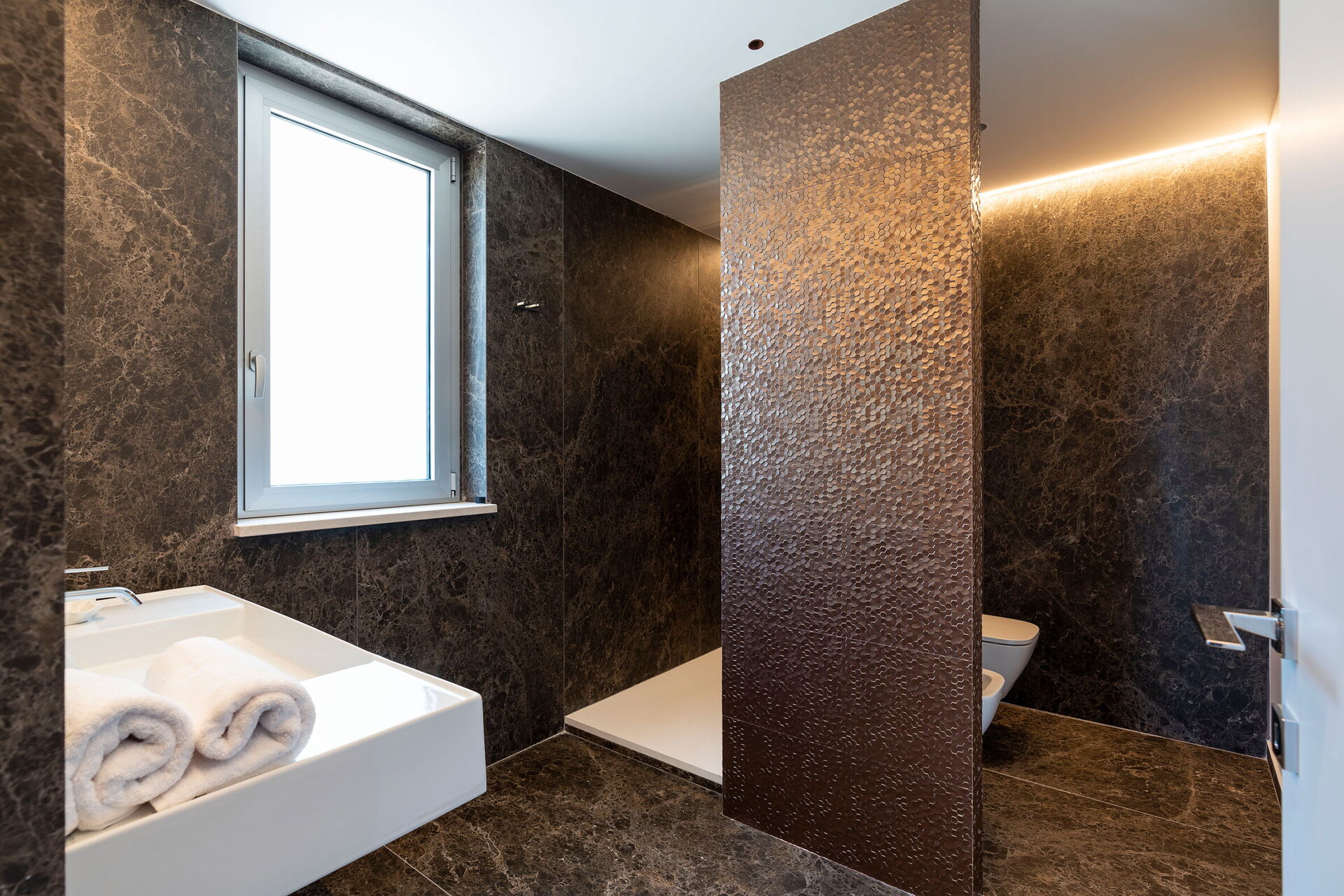 Erdgeschoss (nur von außen zugänglich und nicht intern mit dem Rest der Villa verbunden): Badezimmer mit Dusche.
