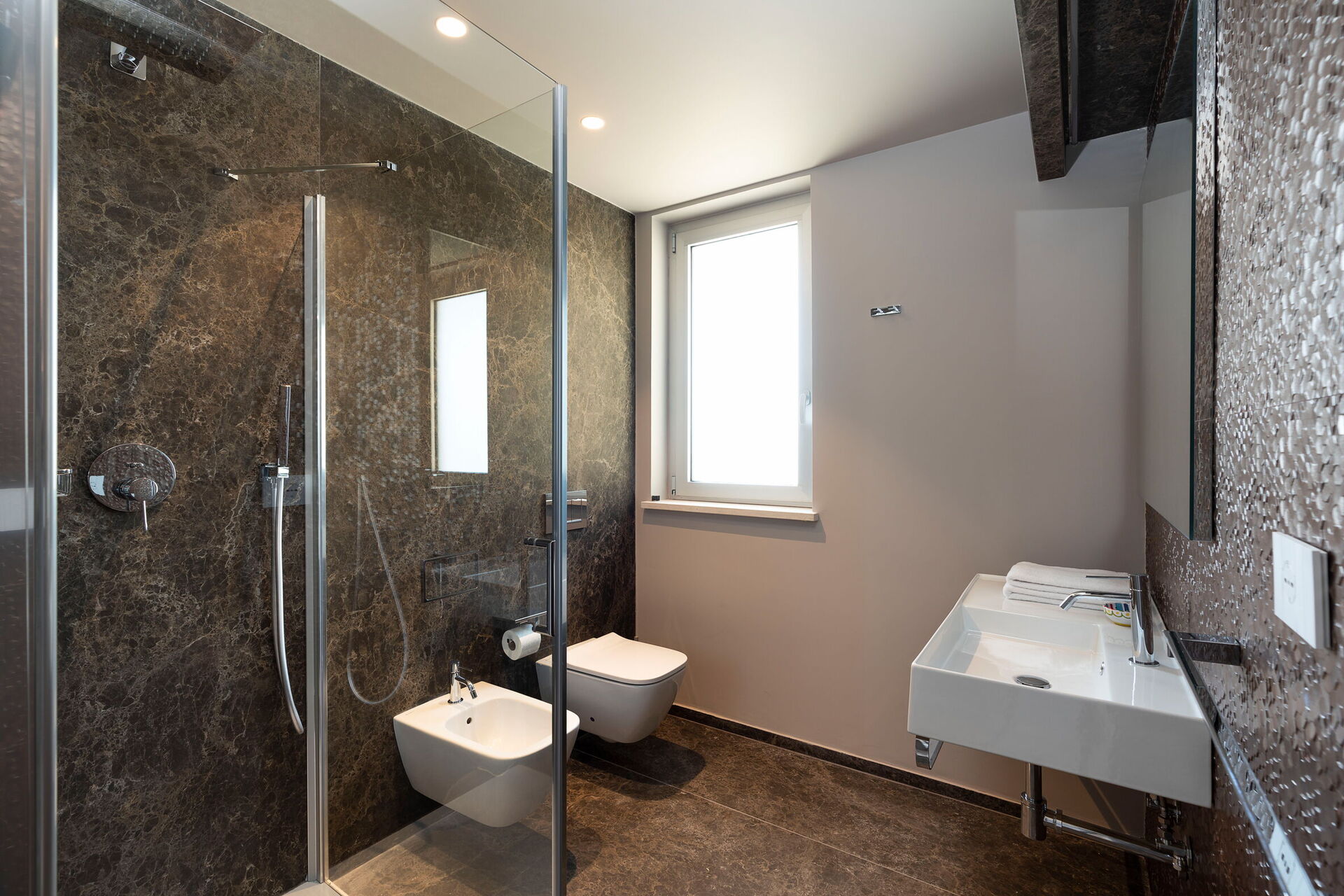 Erdgeschoss (Aufzug): großes Wohnzimmer (Klimaanlage, TV) mit Essbereich, Küche (Herd, Backofen, Kühlschrank, Gefrierschrank, Geschirrspüler, Mikrowelle, Toaster, Espressomaschine, amerikanische Kaffeemaschine) , Doppelzimmer (Klimaanlage, TV) mit privatem Bad mit Dusche, Doppelzimmer (Klimaanlage, begehbarer Kleiderschrank, TV) mit privatem Bad mit Dusche, Waschküche, Fitnessraum (Fitnessgeräte, Fitnessbereich, Sauna und Erlebnisdusche).