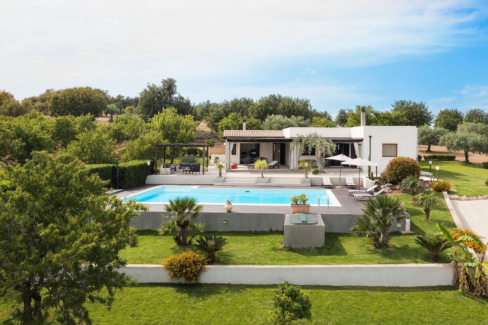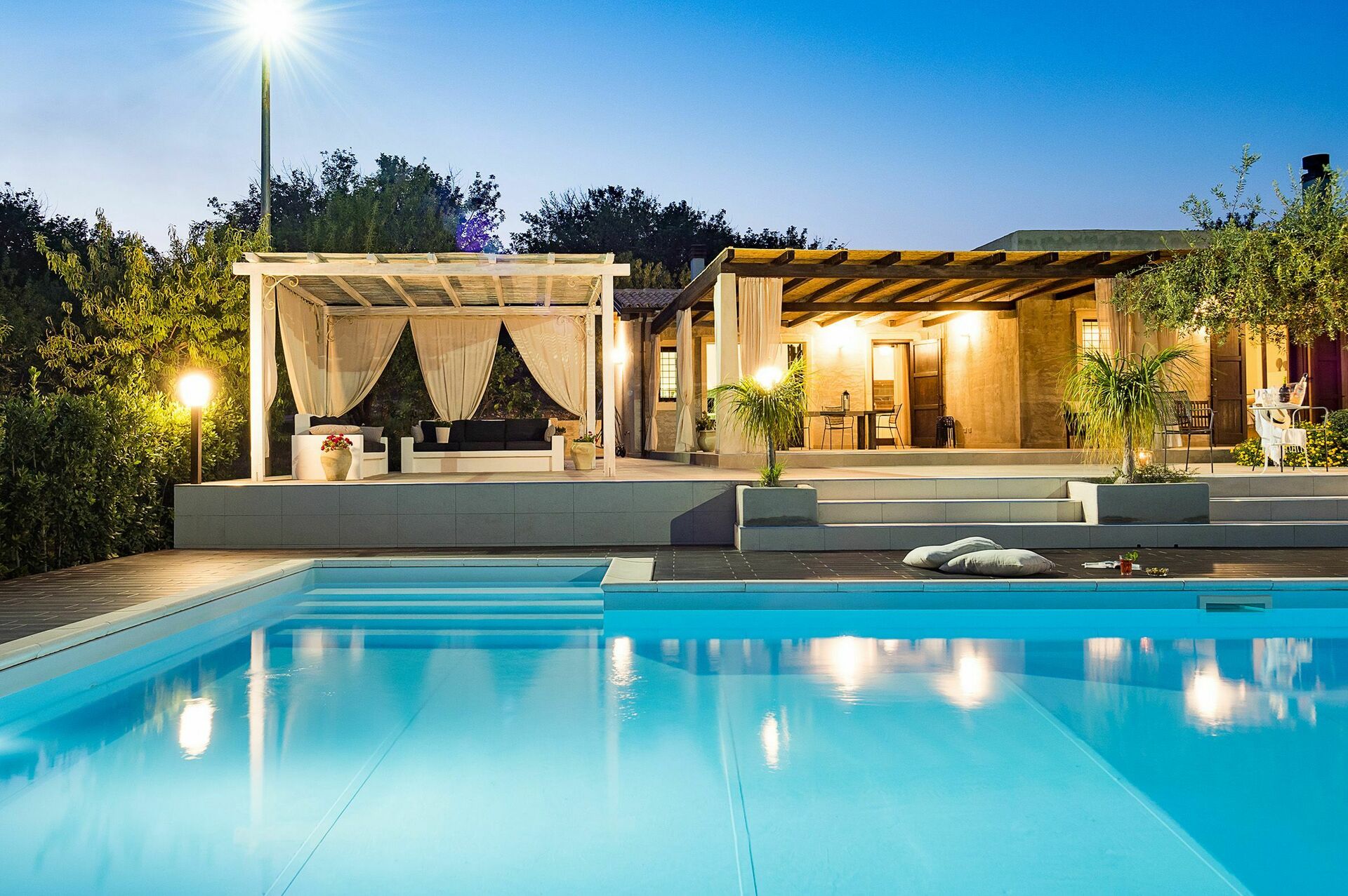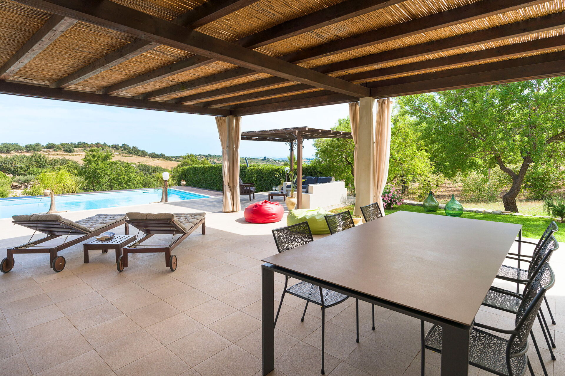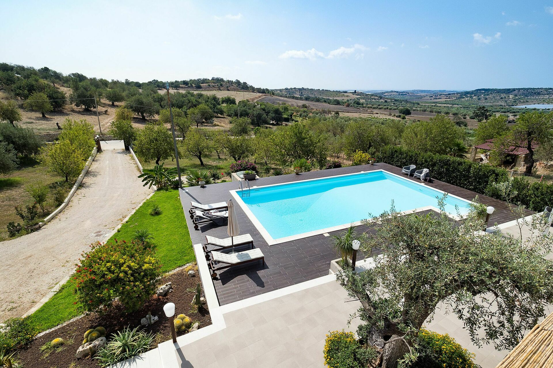 Umgeben von einem großen Naturpark mit Oliven- und Mandelbäumen, bietet diese Ferienvilla einen bezaubernden Blick über die malerische Landschaft. Die Gäste können sich auf der großen Terrasse, die teilweise überdacht und für Mahlzeiten im Freien ausgestattet ist, absolut entspannen. Eine schöne Sonnentarrasse befindet sich am Schwimmbad mit Salzreinigung (ohne Chlor): ein einzigartiger Ort, um an heißen Sommertagen die sizilianische Sonne zu genießen, sich zu entspannen und mit Freunden und der Familie aufzuwärmen.
