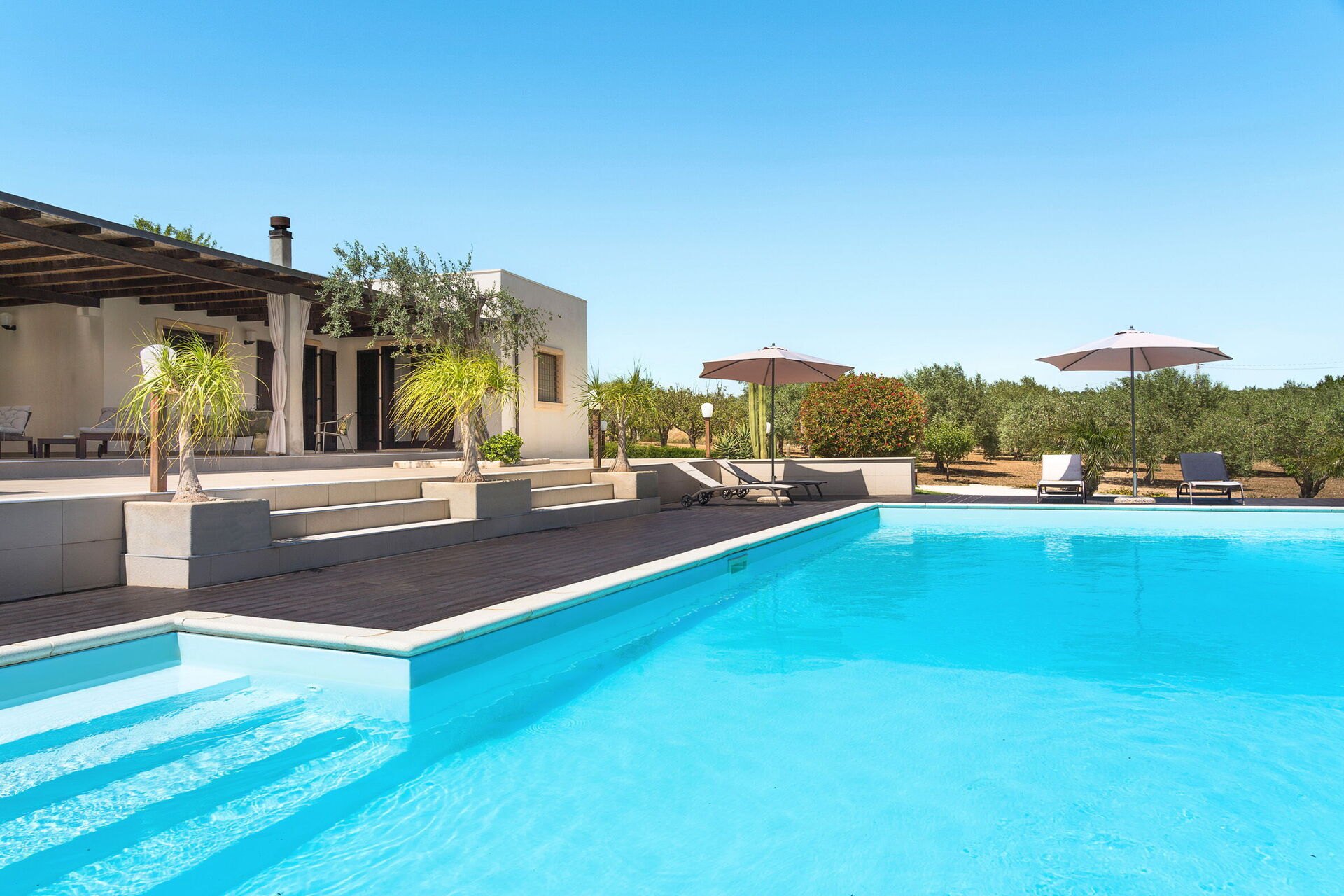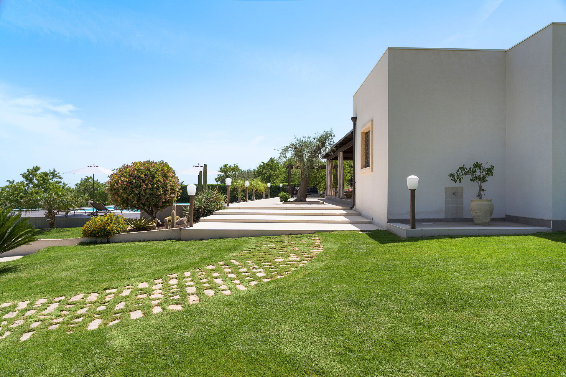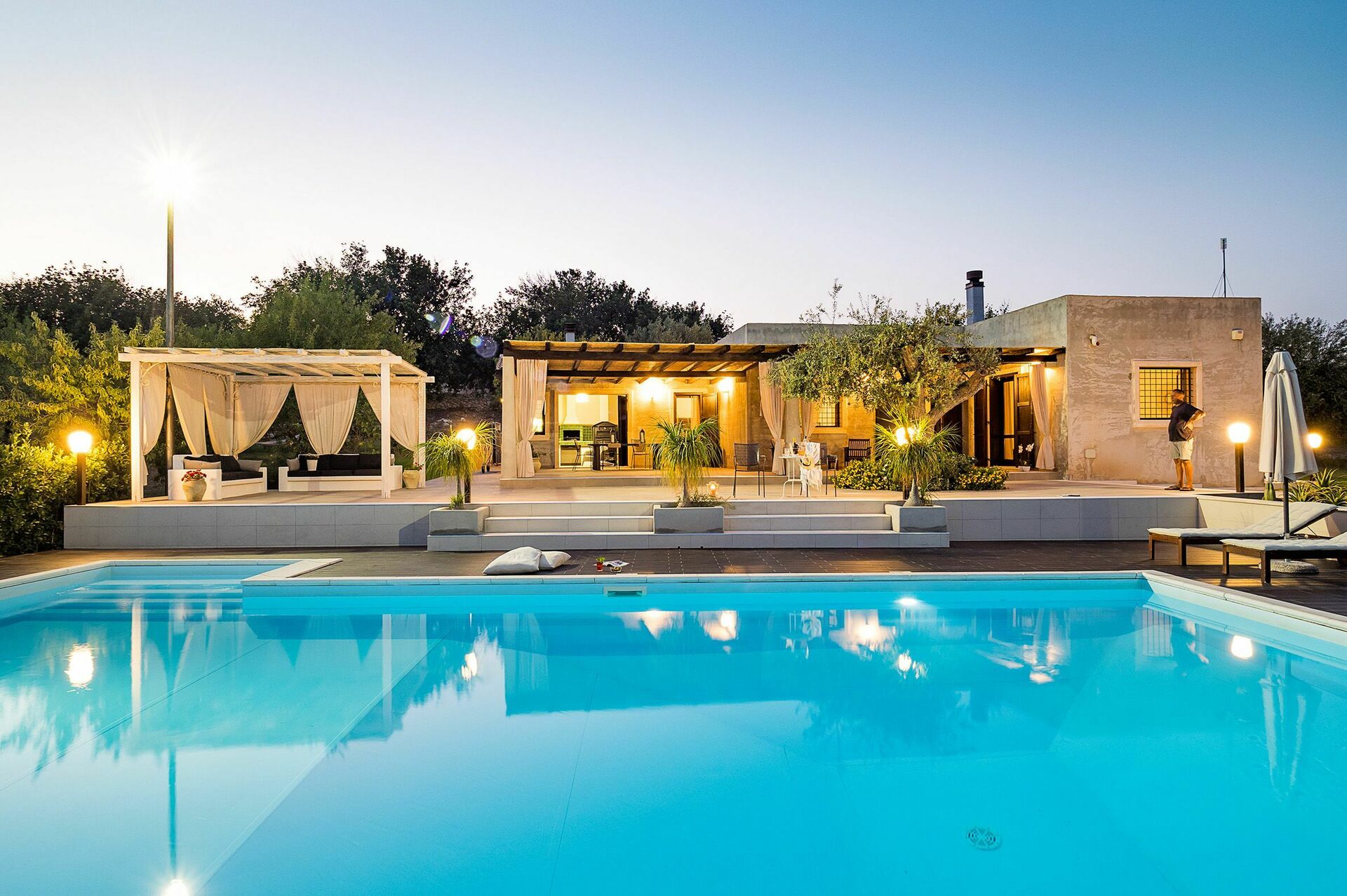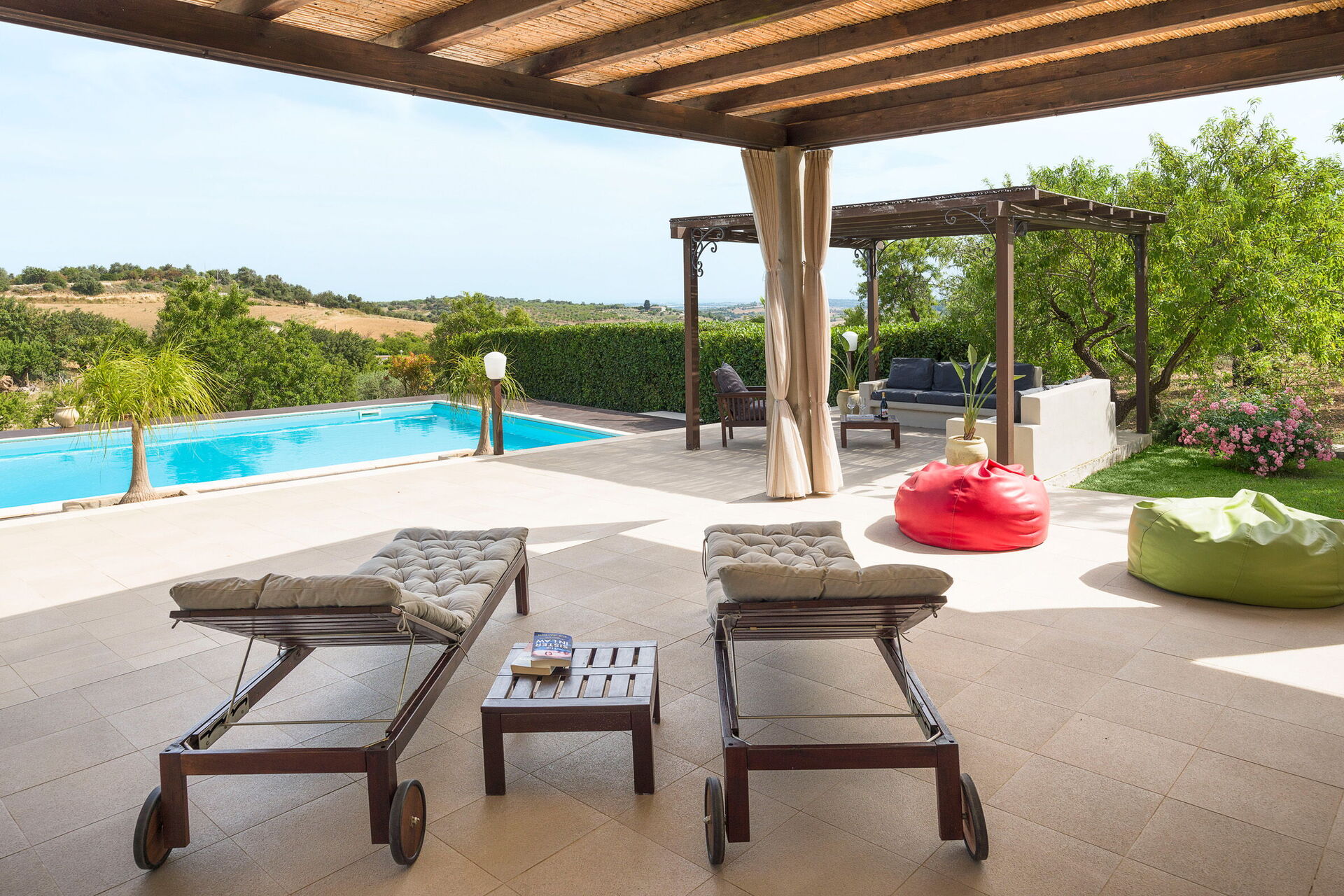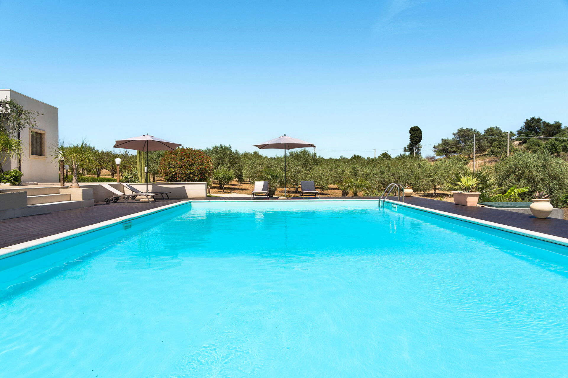 Umgeben von einem großen Naturpark mit Oliven- und Mandelbäumen, bietet diese Ferienvilla einen bezaubernden Blick über die malerische Landschaft. Die Gäste können sich auf der großen Terrasse, die teilweise überdacht und für Mahlzeiten im Freien ausgestattet ist, absolut entspannen. Eine schöne Sonnentarrasse befindet sich am Schwimmbad mit Salzreinigung (ohne Chlor): ein einzigartiger Ort, um an heißen Sommertagen die sizilianische Sonne zu genießen, sich zu entspannen und mit Freunden und der Familie aufzuwärmen.