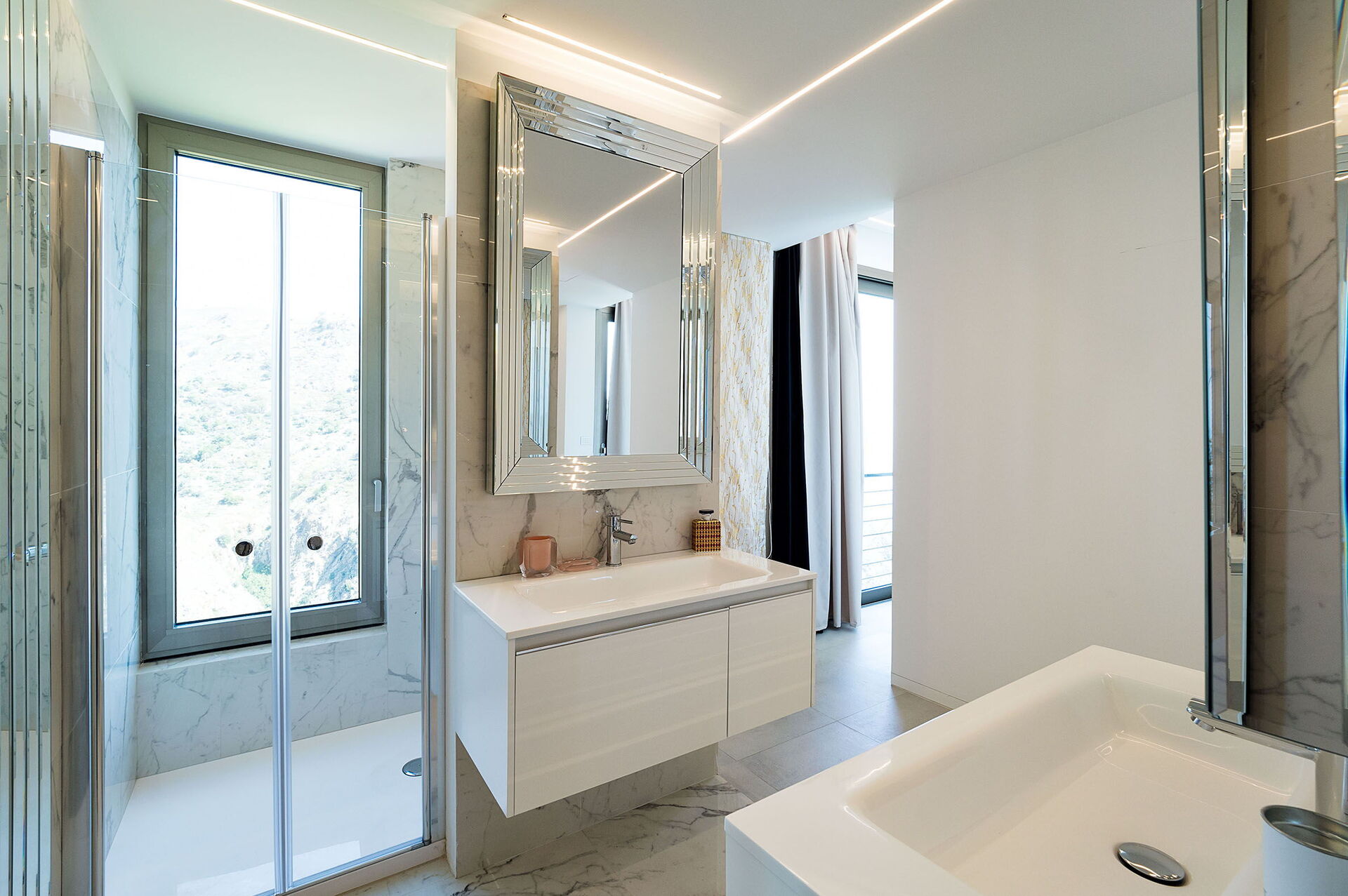 Villa Alexandra erstreckt sich über drei Etagen und verfügt über einladende Innenräume, die mit Eleganz und Geschmack eingerichtet und so gestaltet sind, dass sie den Bedürfnissen des modernen Lebens gerecht werden. Dank ihrer 7 Schlafzimmer mit jeweils privatem Bad und ihrem großen Wohnbereich, der durch große Fenster zum Schwimmbadbereich und der umliegenden Landschaft hin offen ist, bietet diese schöne Mietvilla bequem Platz für bis zu 14 Personen.