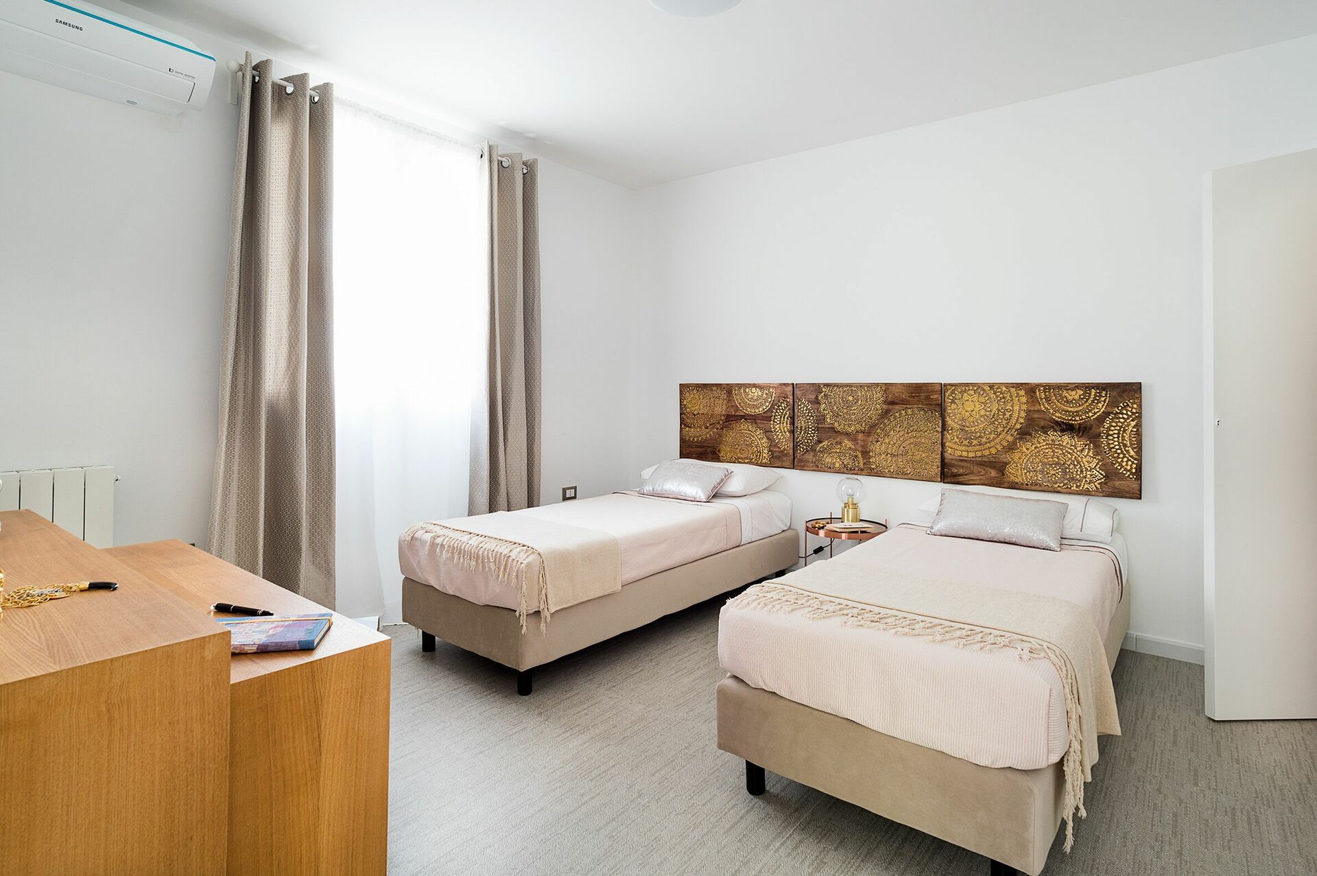 Erdgeschoss: 2 Doppelzimmer (Klimaanlage), Zweibettzimmer (Klimaanlage), 2 Bäder und ein Wohnbereich.
