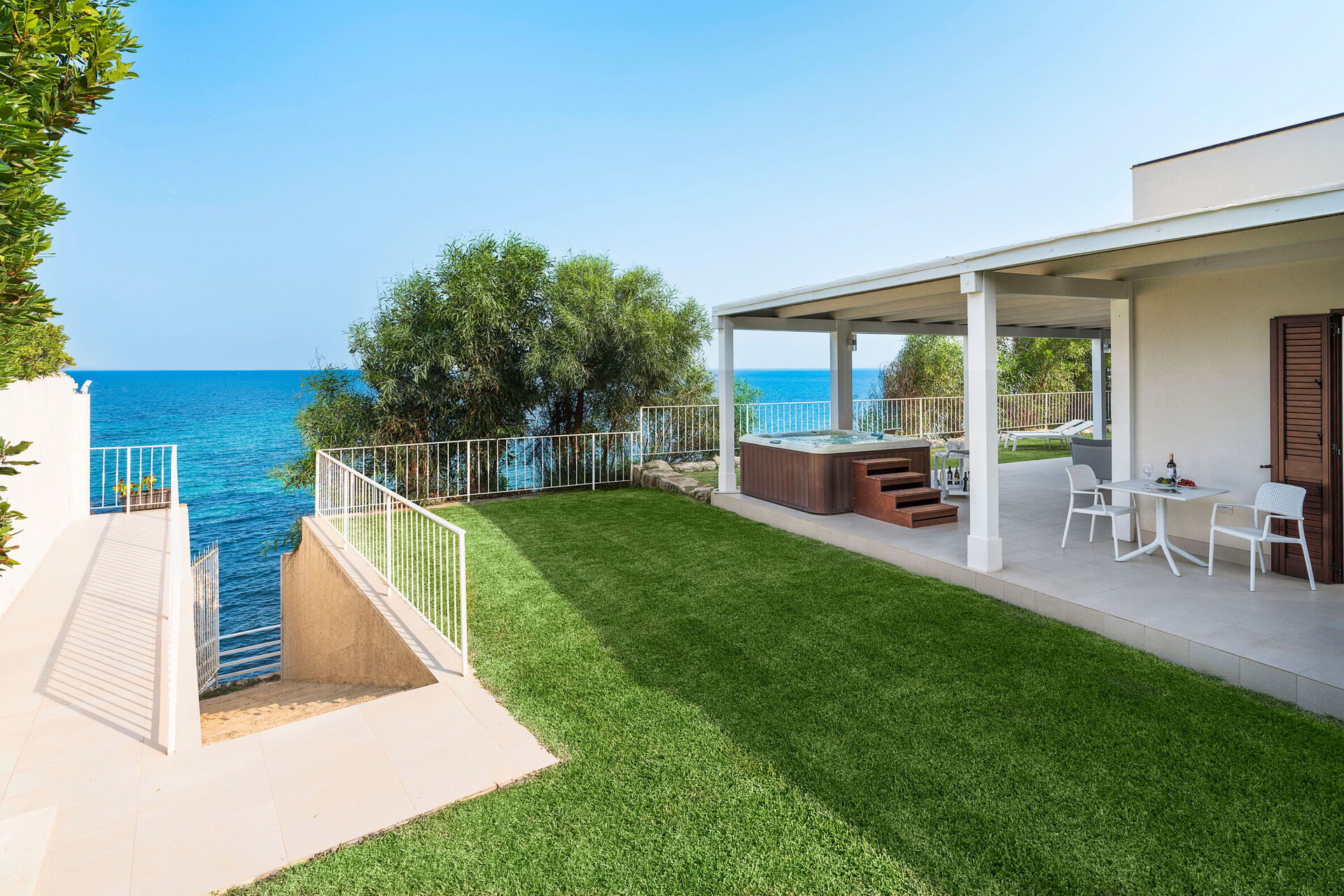 Die Panorama-Außenbereiche bieten zahlreiche Gemeinschaftsbereiche und ermöglichen es den Gästen, einen angenehmen Aufenthalt mit der Familie oder Freunden zu verbringen, sich im beheizten Whirlpool im Freien oder auf der grossen Sonnenterrasse am Meer zu entspannen, ideal für angenehme Momente unter der sizilianischen Sonne. Die Gäste haben direkten Zugang zur Klippe und zum Meer.