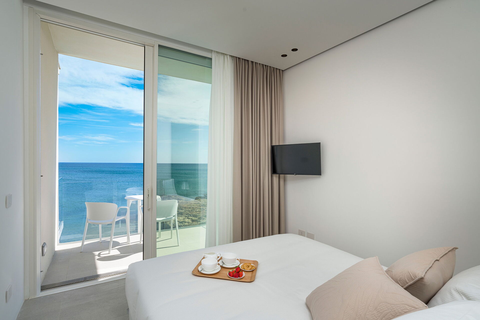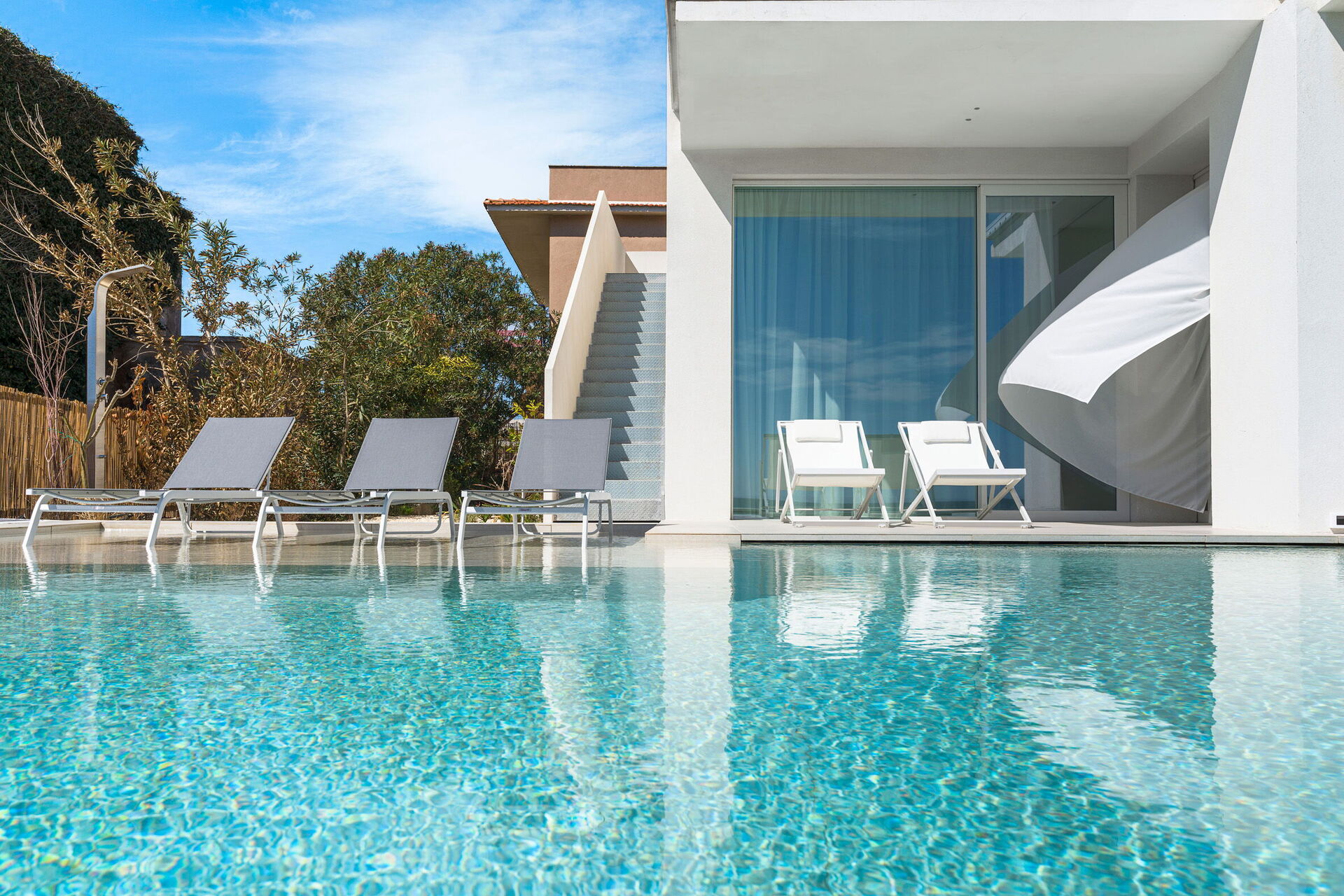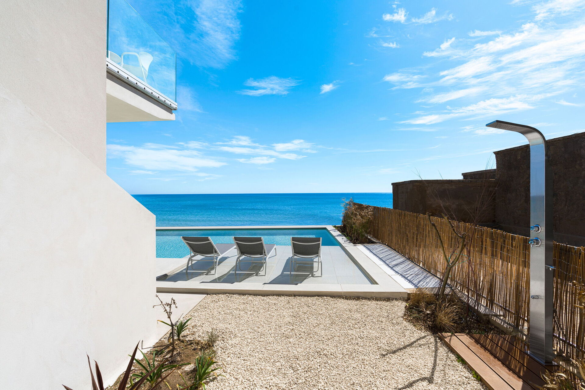 Die Panorama-Außenbereiche bieten zahlreiche Plätze, wo die Gäste einen angenehmen Aufenthalt mit der Familie oder Freunden verbringen und sich im beheizten Außenschwimmbad mit Hydromassagebereich oder auf der großen Sonnenterrasse mit Blick auf das Meer entspannen können, ideal, um angenehme Momente unter der sizilianischen Sonne zu verbringen.