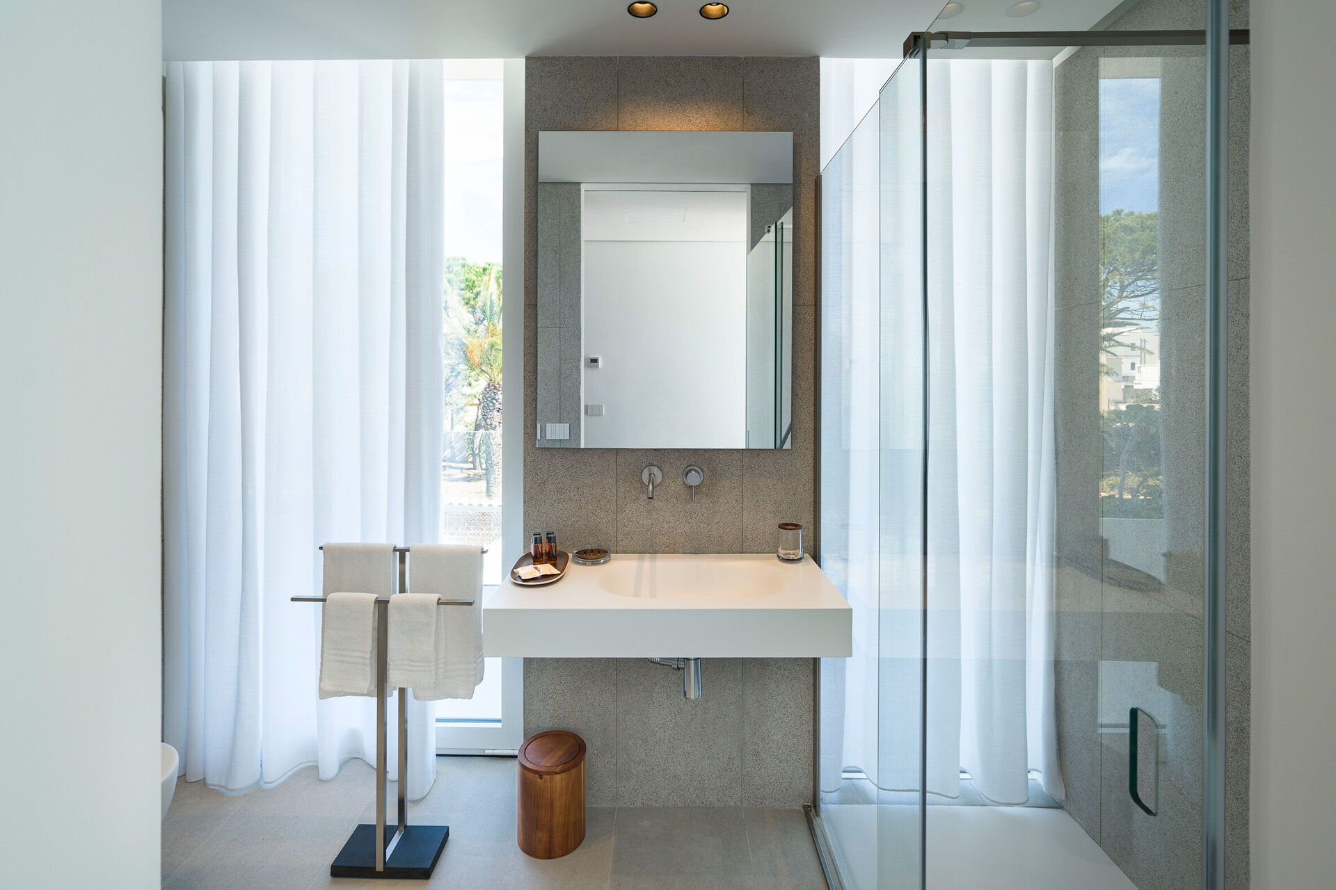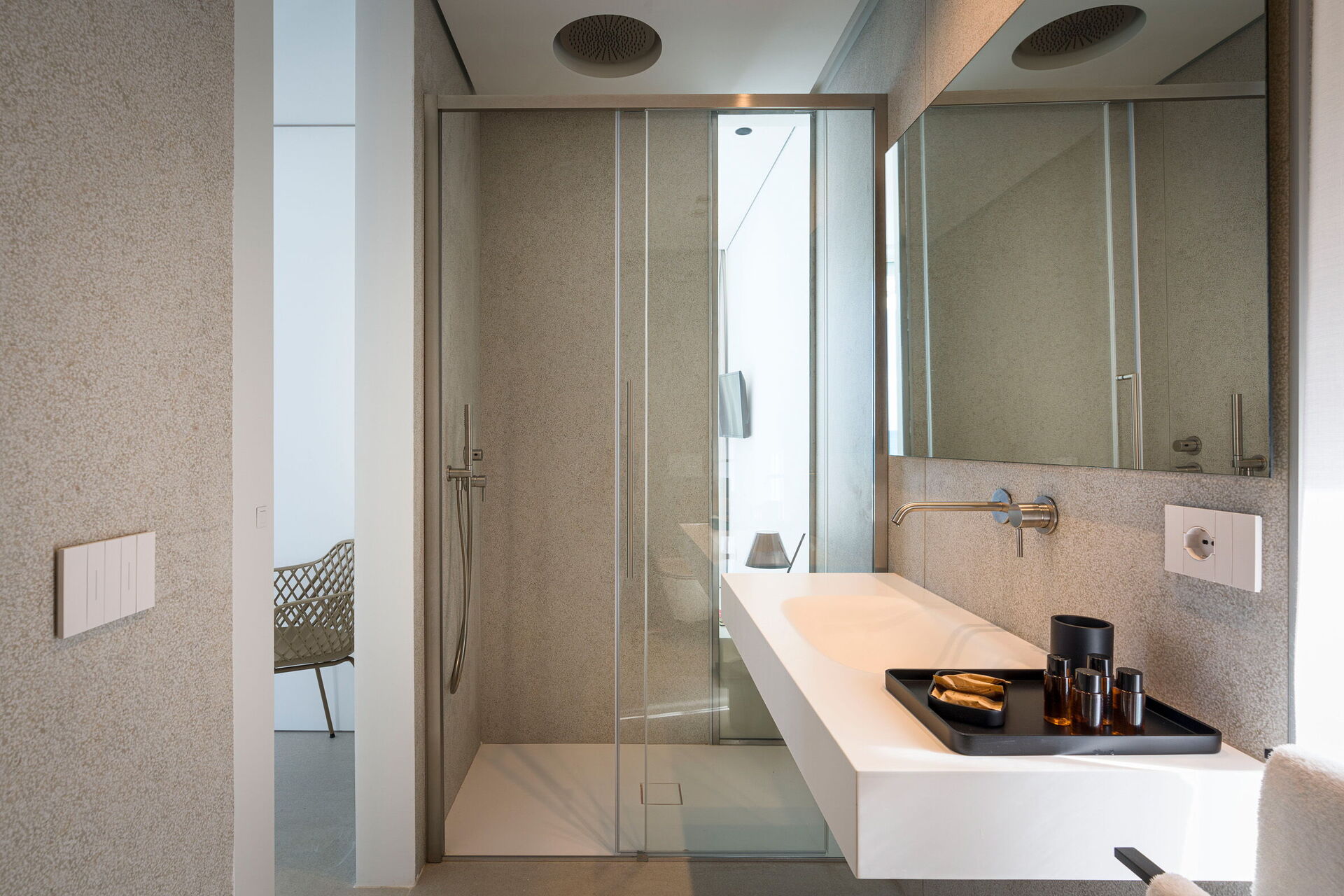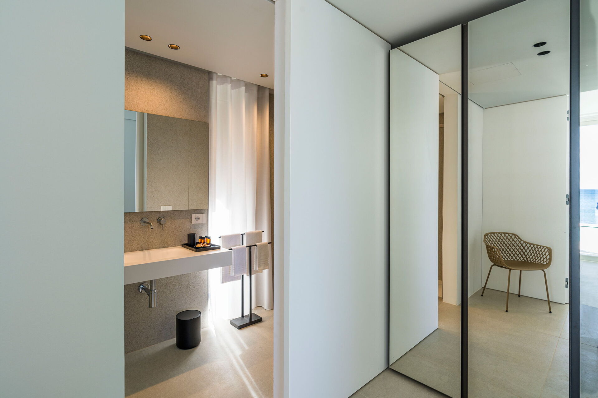 Die Panorama-Außenbereiche bieten zahlreiche Plätze, wo die Gäste einen angenehmen Aufenthalt mit der Familie oder Freunden verbringen und sich im beheizten Außenschwimmbad mit Hydromassagebereich oder auf der großen Sonnenterrasse mit Blick auf das Meer entspannen können, ideal, um angenehme Momente unter der sizilianischen Sonne zu verbringen.
