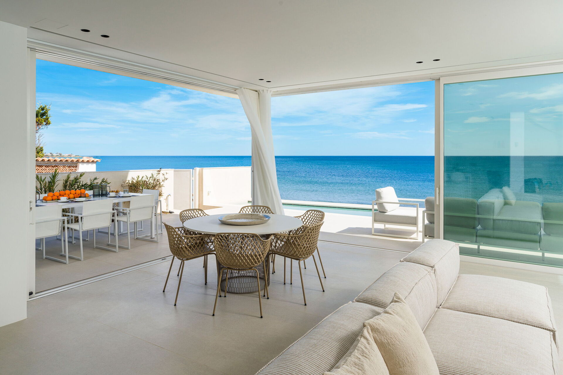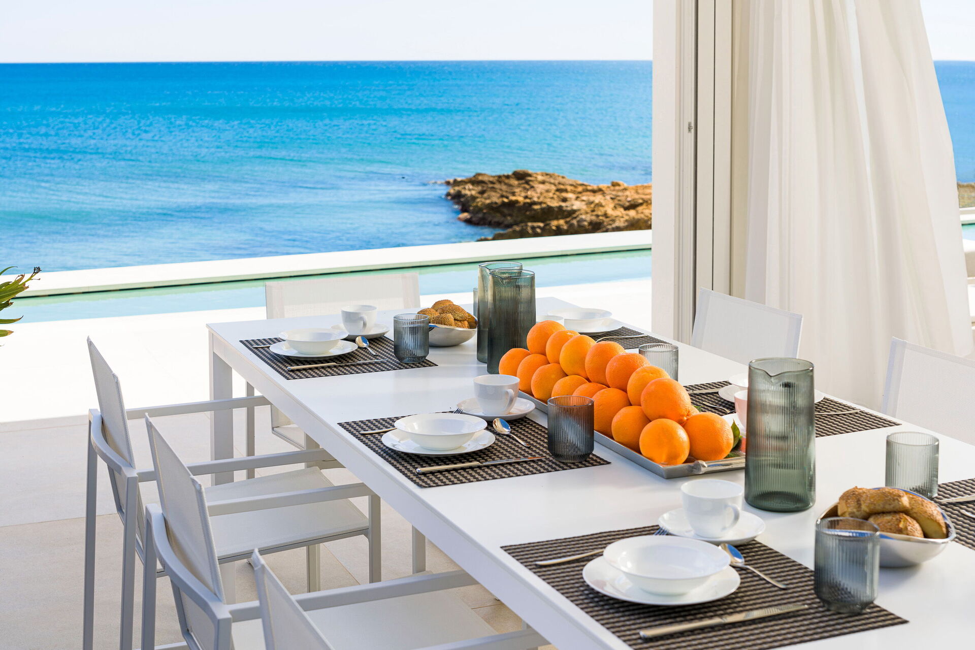 - Außenbereich mit Meerblick, ausgestattet zum Essen im Freien