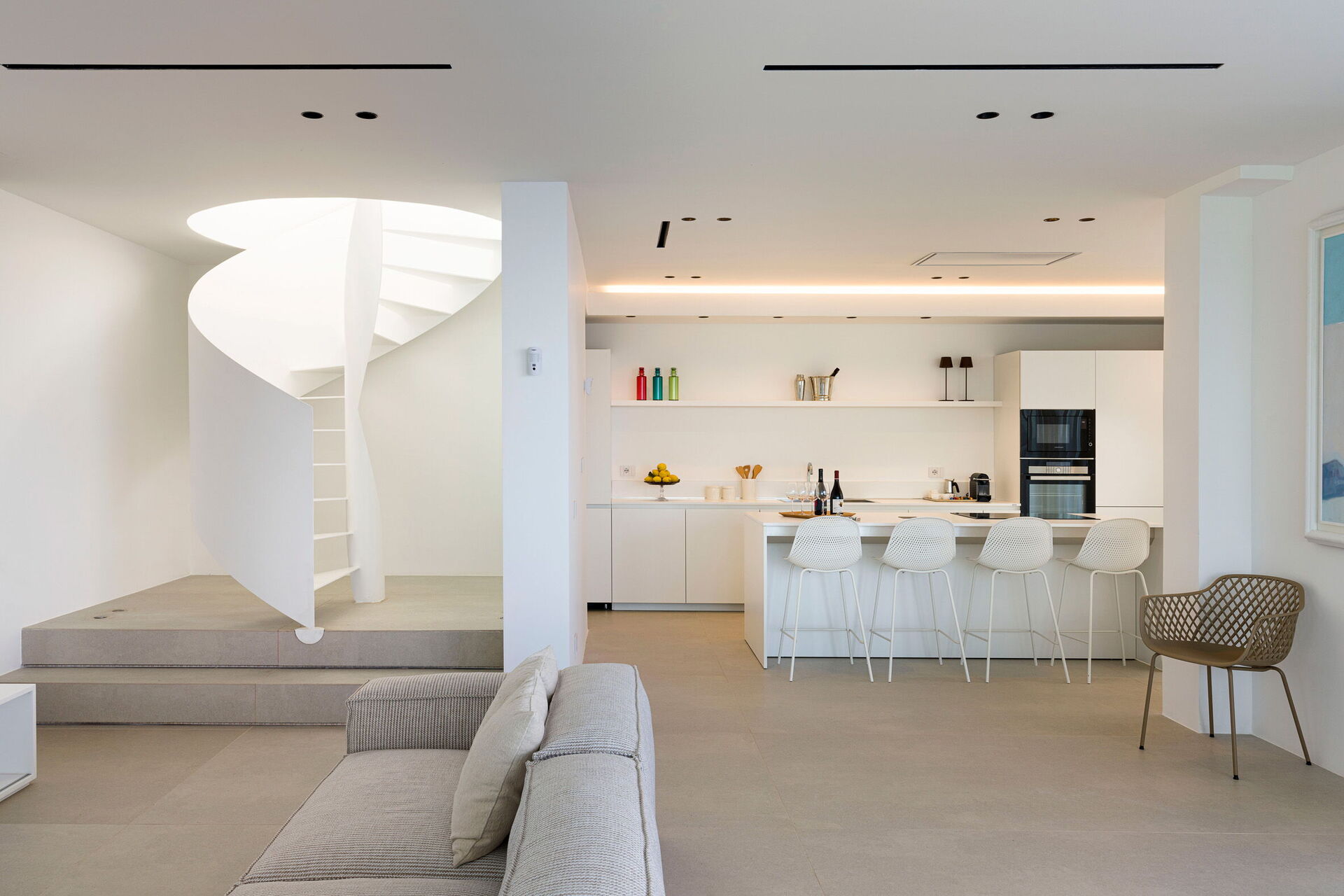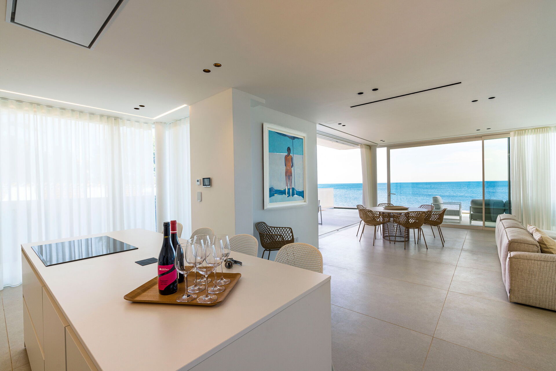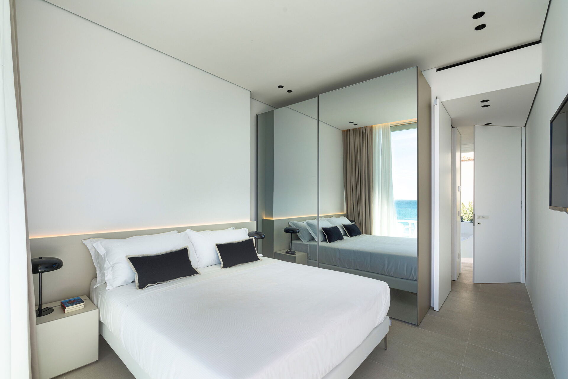 Die Villa erstreckt sich über zwei Etagen und bietet dank ihrer 4 Schlafzimmer (jedes mit eigenem Bad und Terrasse mit Blick auf das Meer) bequem Platz für bis zu 8 Personen. Die Innenräume sind dank der großen Panoramafenster mit Blick auf das Meer einladend und hell; die schöne Villa ist modern eingerichtet und mit allem Komfort ausgestattet.