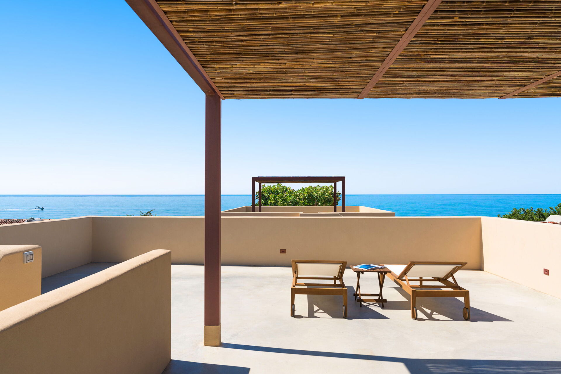 Die Residenz befindet sich in herrlicher Lage direkt am Meer und verfügt über gut ausgestattete Außenbereiche, zwei große Terrassen mit Blick auf das Meer, einen Garten mit Sonnenterrasse und einem exklusiven privaten oberirdischen Schwimmbad.