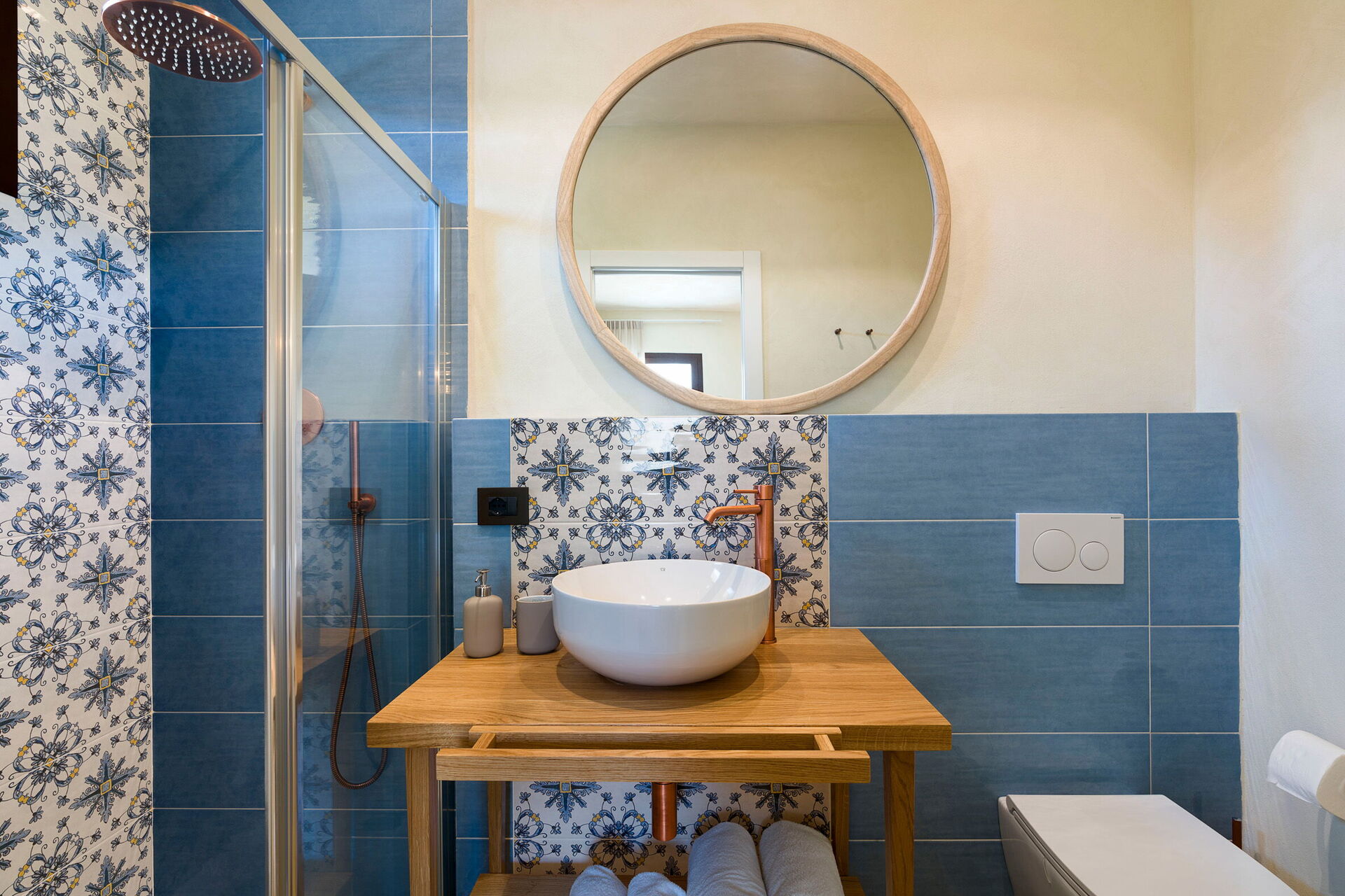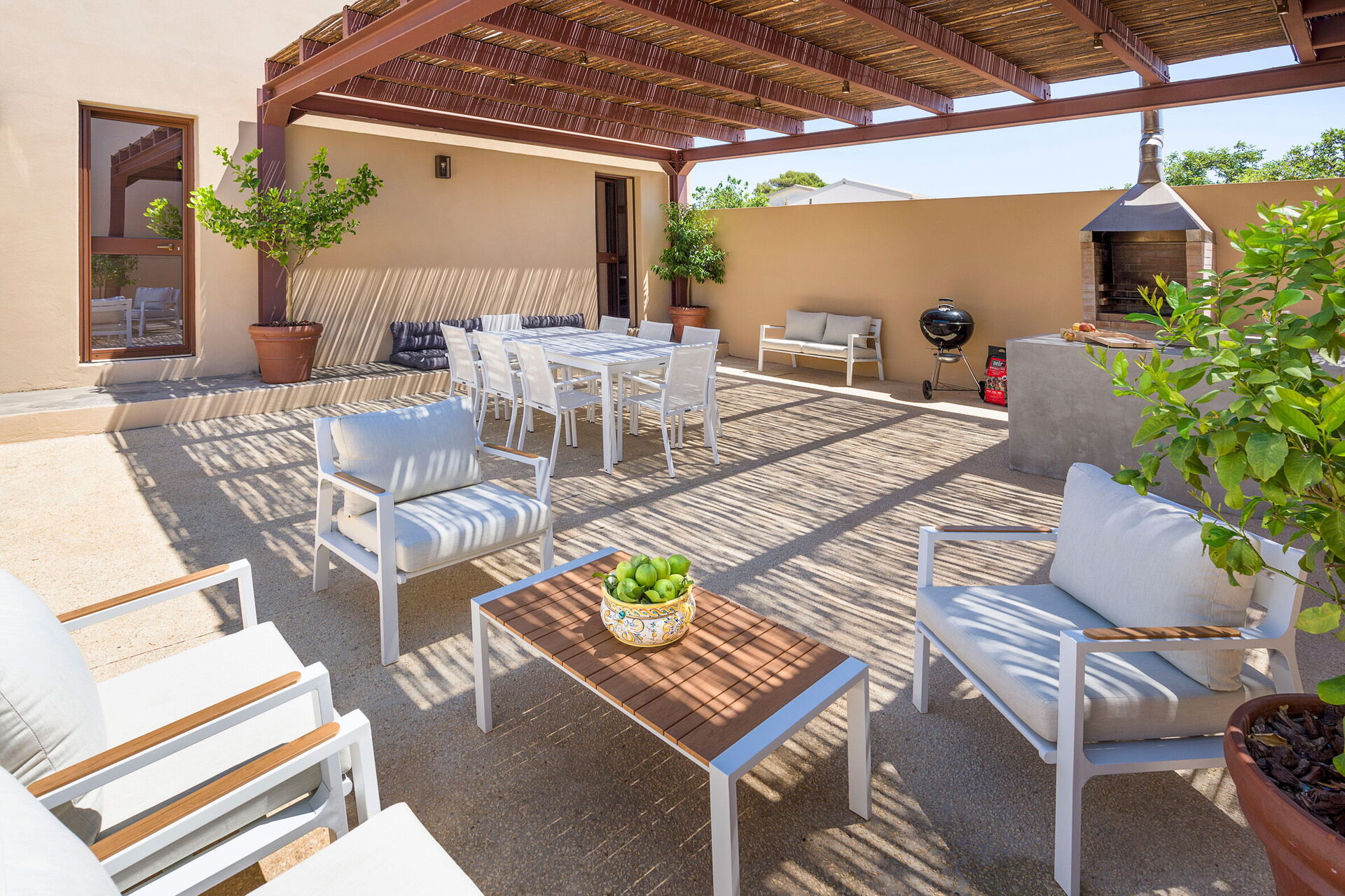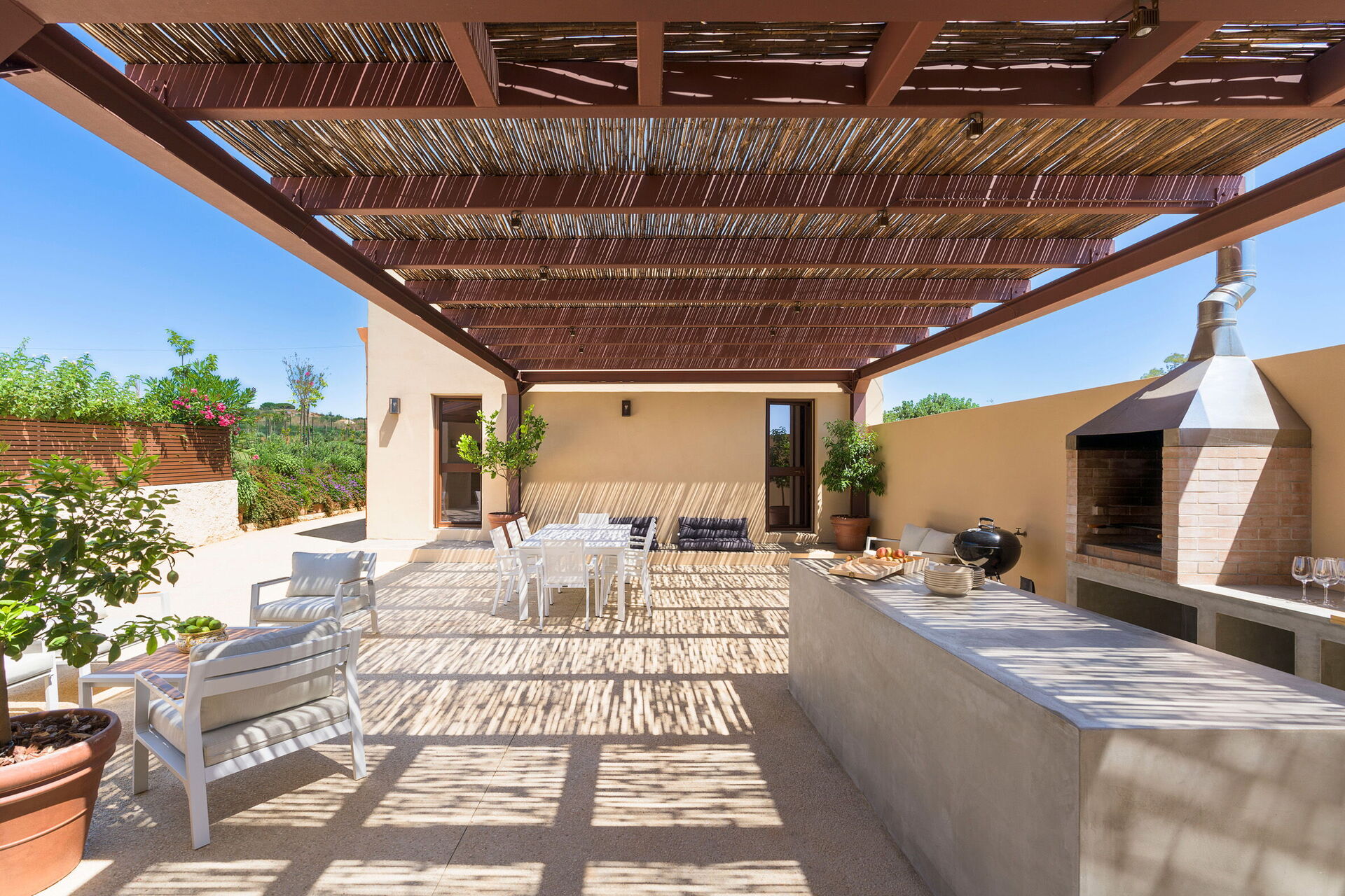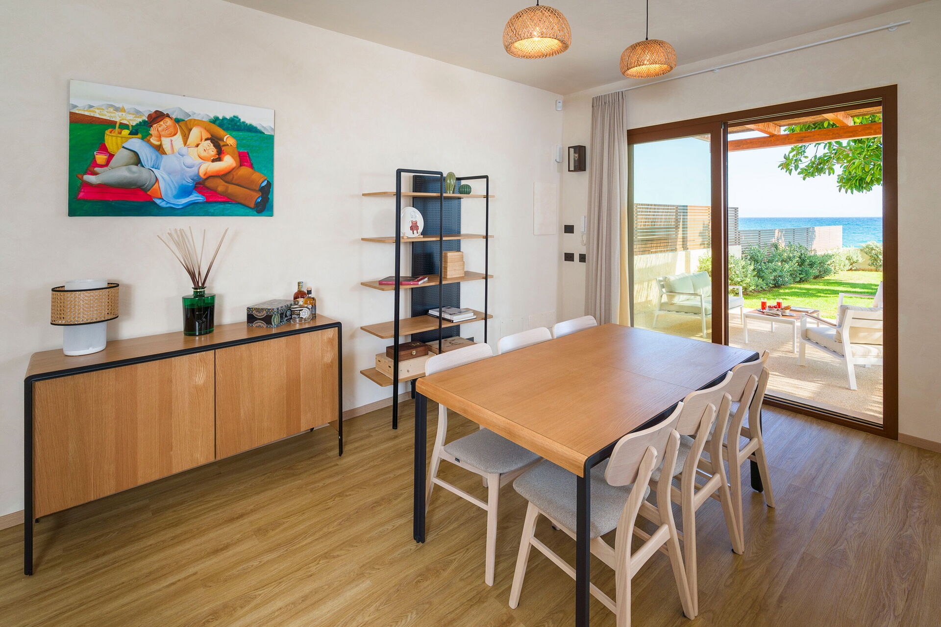 Das Anwesen besteht aus der Hauptvilla (2 Personen) und einem Nebengebäude (6 Personen), das nur wenige Meter von der Villa entfernt liegt. Insgesamt bietet die Unterkunft, dank seiner 4 Schlafzimmer und Gemeinschaftsräume bequem Platz für bis zu 8 Personen. Die Innenräume sind einladend, hell und zeichnen sich durch moderne und schlichte Möbel aus.