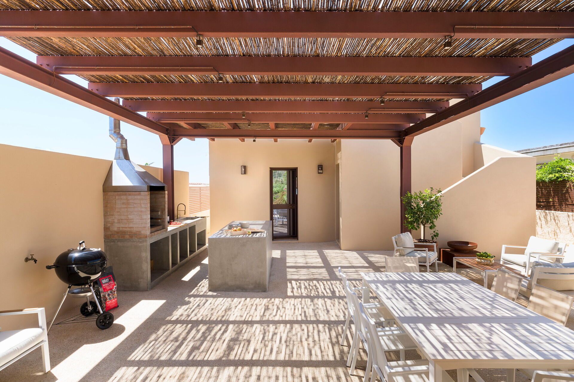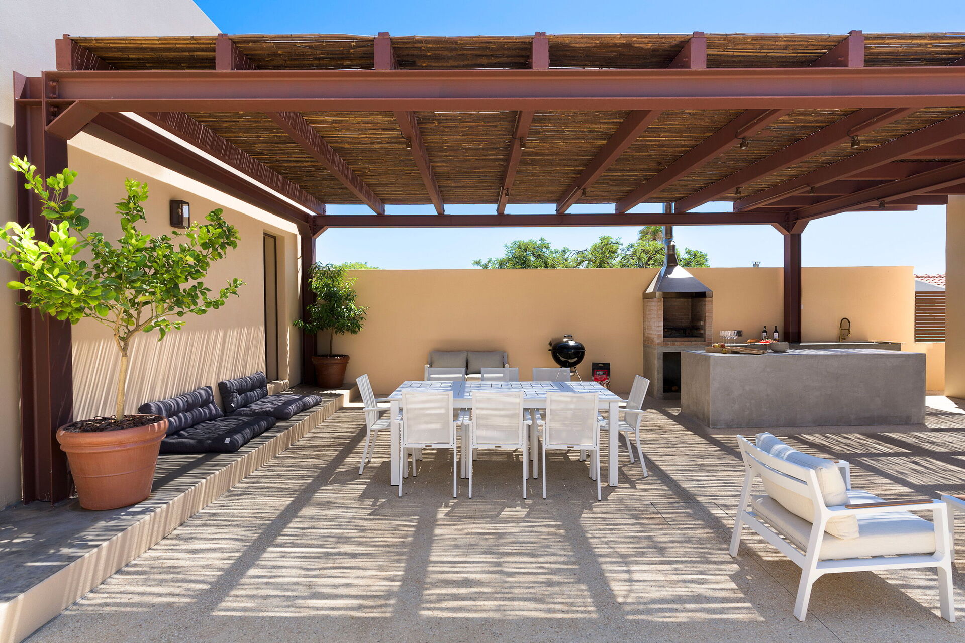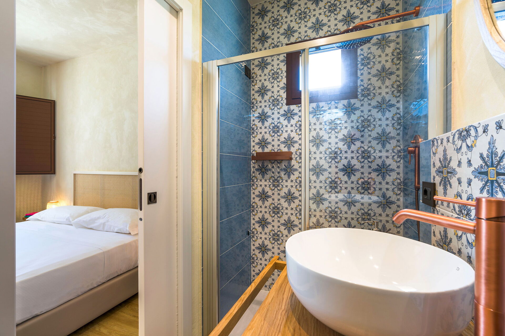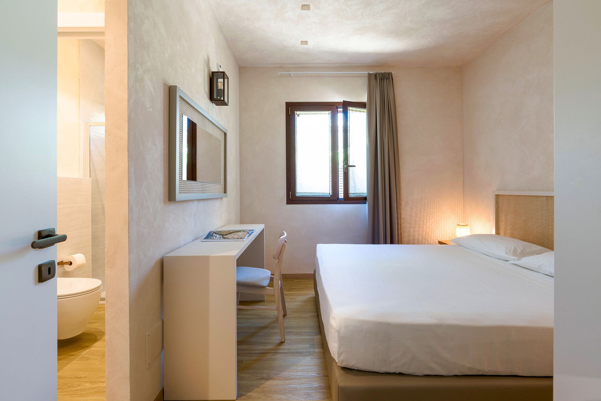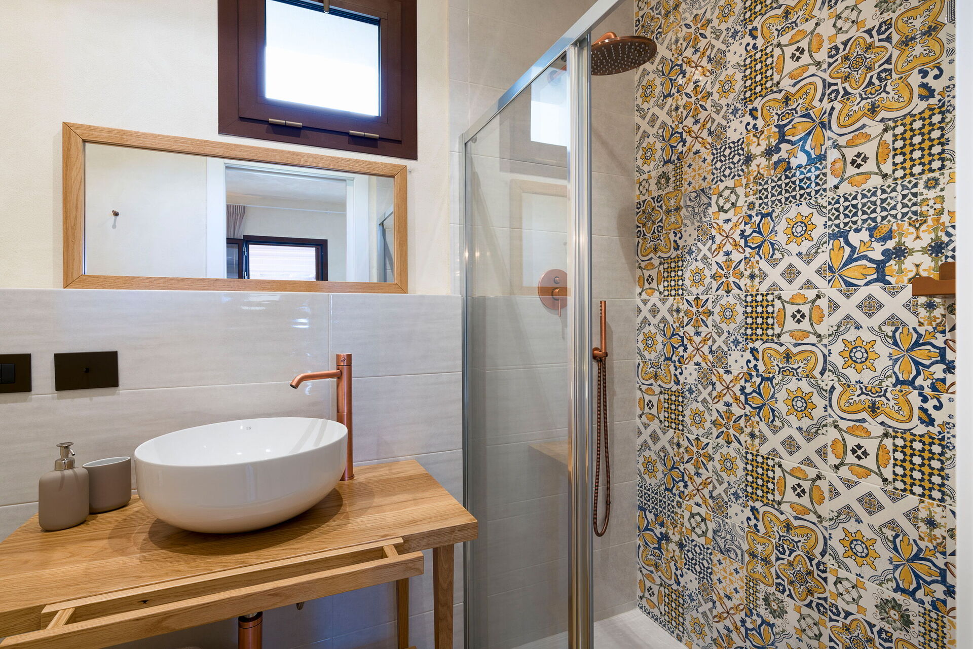 Das Anwesen besteht aus der Hauptvilla (2 Personen) und einem Nebengebäude (6 Personen), das nur wenige Meter von der Villa entfernt liegt. Insgesamt bietet die Unterkunft, dank seiner 4 Schlafzimmer und Gemeinschaftsräume bequem Platz für bis zu 8 Personen. Die Innenräume sind einladend, hell und zeichnen sich durch moderne und schlichte Möbel aus.