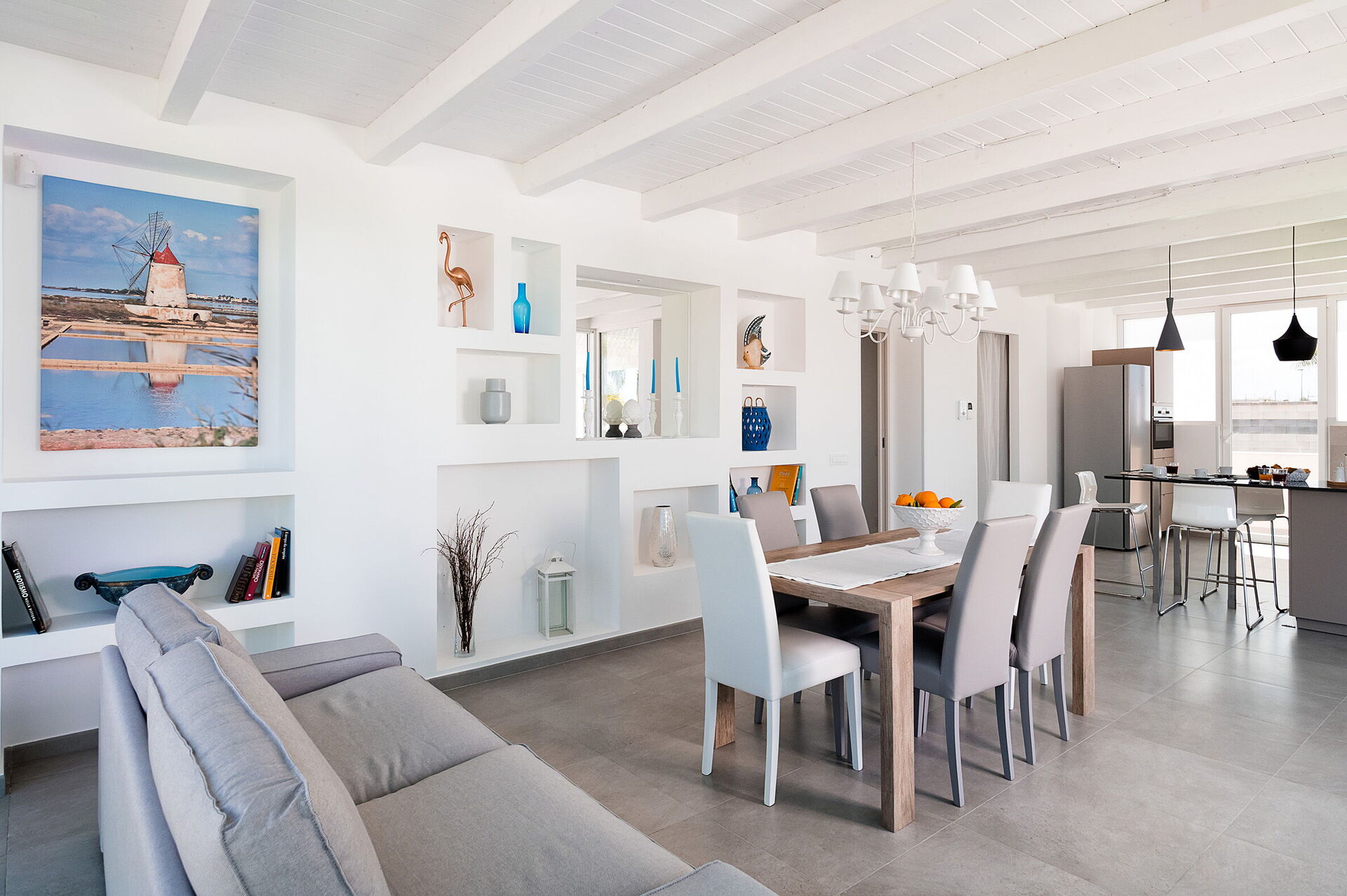 Die Villa liegt nahe der historischen Küstenstadt Marsala im Westen Siziliens. Der weiße Sandstrand von Lido Signorino ist nur 300 Meter entfernt.